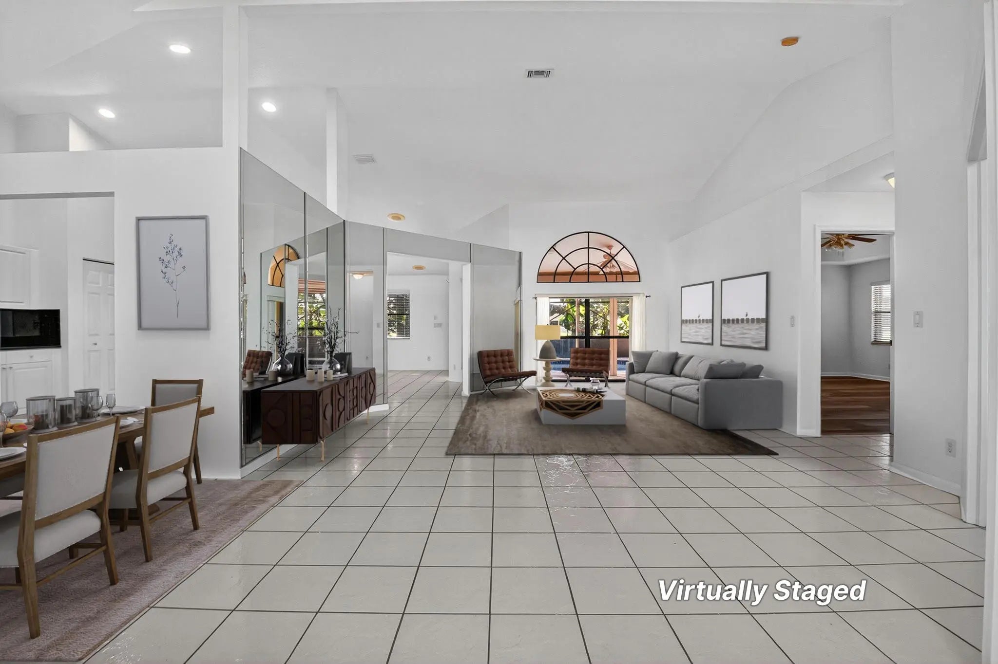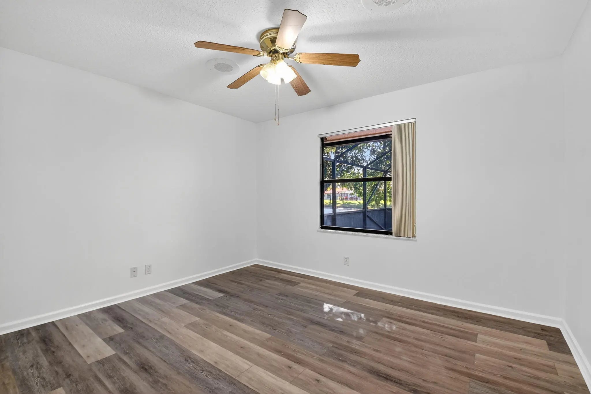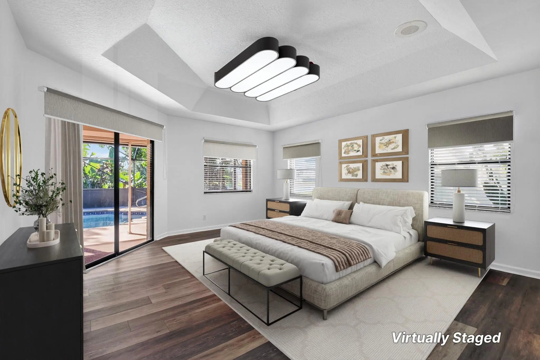 Great opportunity to live in Saratoga Pines community! This lovely CBS home offers 3 bedrooms, 2 bathrooms, plus a den perfect for an office or guest space. Situated on a large lot with lake views, the home features an open floor plan, a kitchen with granite countertops, stainless steel appliances, white cabinets, and vaulted ceilings. Enjoy new luxury vinyl flooring in the bedrooms, fresh paint, a laundry room, and 2-car garage. The spacious main suite boasts two closets. Step outside to your private oasis with a resurfaced screened pool, large covered patio, and fruit trees, all overlooking the tranquil lake. Located near a nature preserve with trails and close to schools, shopping, and dining, this home perfectly blends comfort and outdoor living. You'll love calling this place ''home''