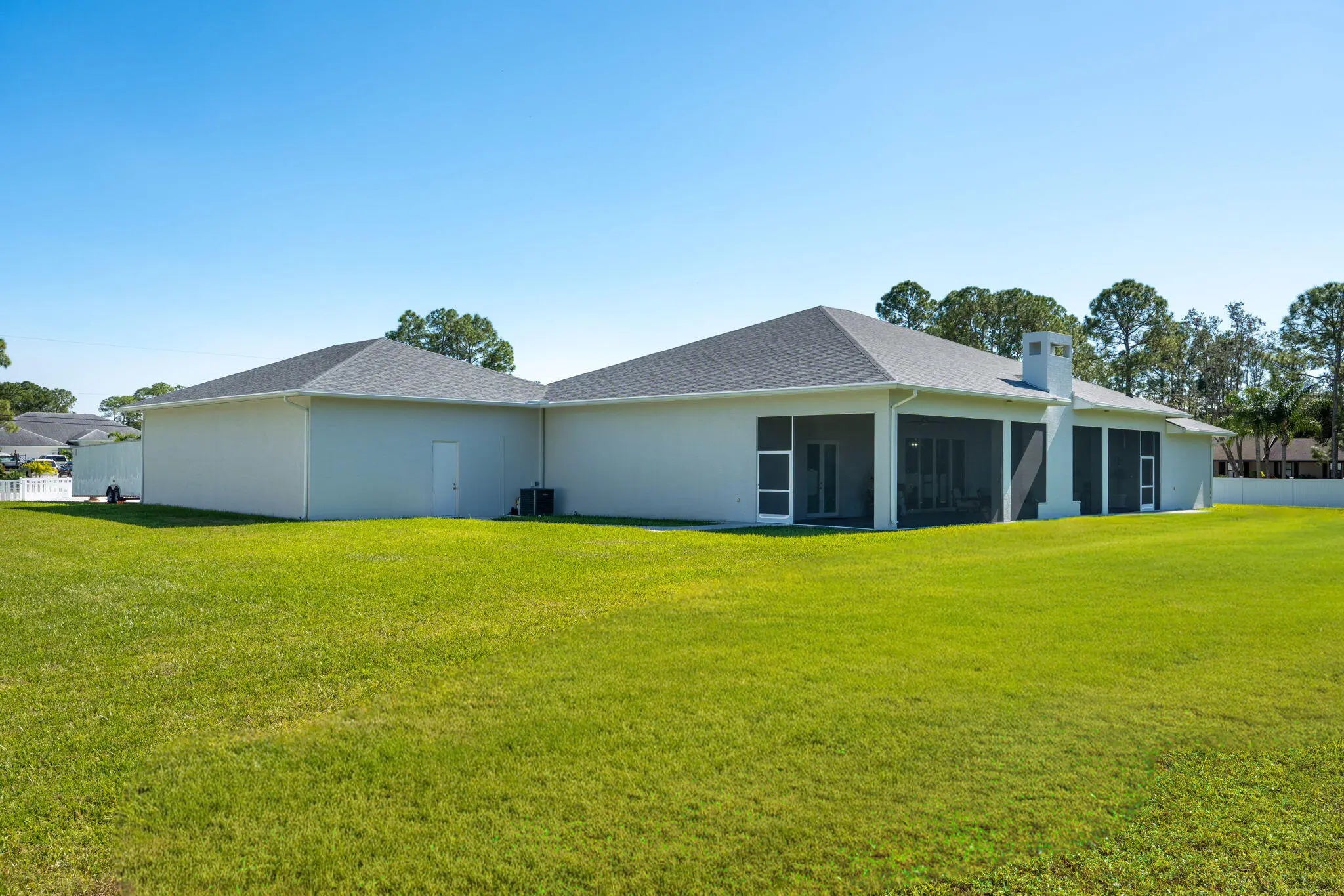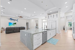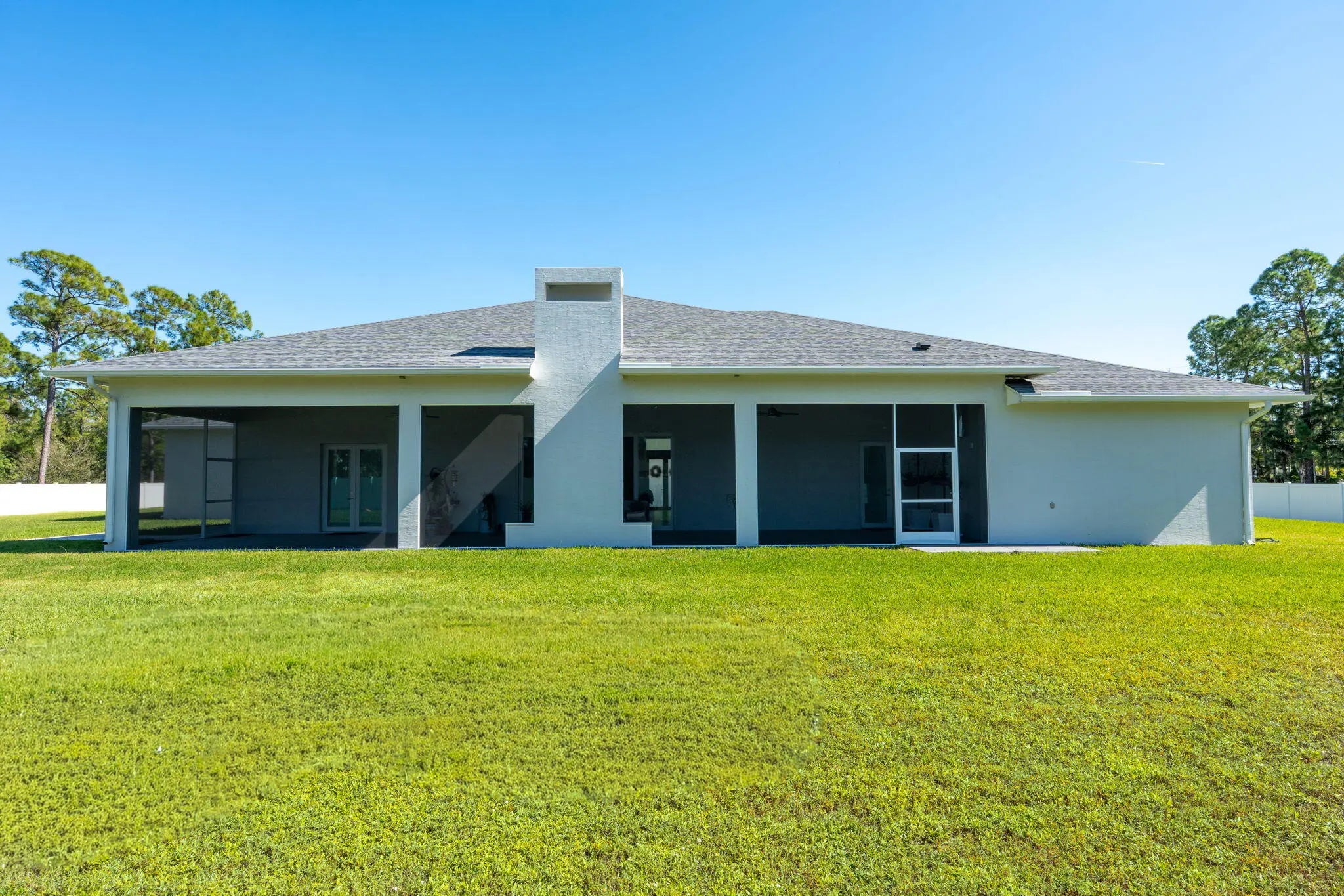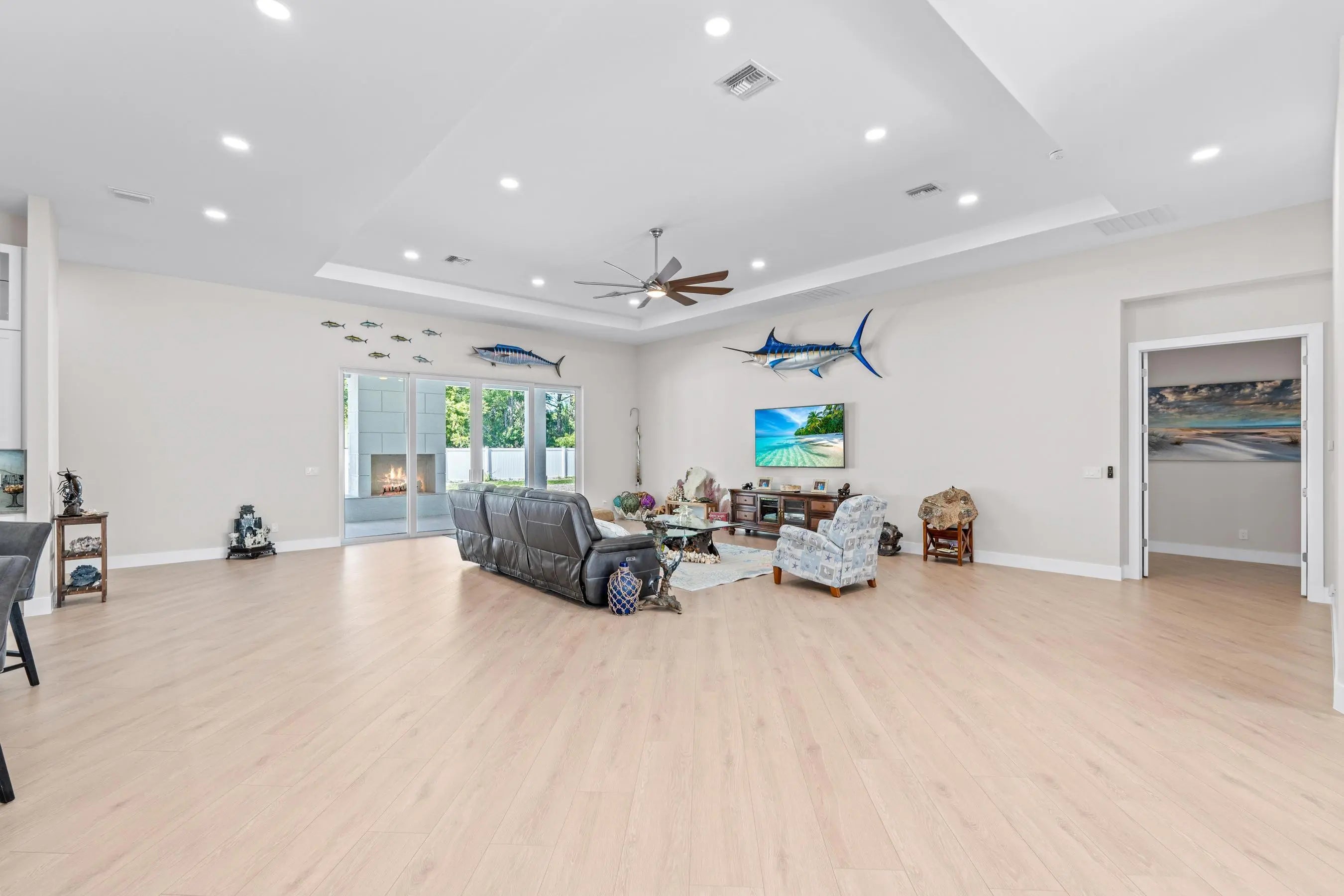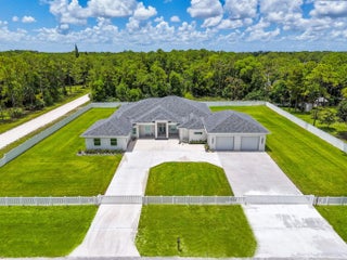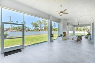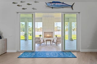 Experience unparalleled luxury and craftsmanship in this meticulously designed custom home, showcasing unique upgrades and premium finishes throughout. Nestled on a beautifully landscaped lot with a 4' privacy fence, the property is enhanced by a lush St. Augustine lawn maintained by a sprinkler system. The owners have invested well over $60,000 to properly fill and elevate the lot, ensuring superior drainage and eliminating any potential water-related concerns for years to come. A whole-house reverse osmosis system and a 4'' deep well with pump ensure exceptional water quality and efficiency. The exterior boasts energy-efficient double impact argon-filled windows and 8' doors with custom handles, while the interior features expansive 16' sliding glass doors that lead to a (continued) stunning porch with a custom-built wood-burning fireplace. Step inside to discover luxury laminate flooring and soaring 12' and 13' ceilings that create a spacious and elegant ambiance. The chef's kitchen is a masterpiece, featuring Quartzite countertops with a full backsplash, an oversized kitchen sink, and a custom cooktop backsplash by Haven Metals. A massive 6' x 12'6" island with a waterfall edge complements the suite of KitchenAid appliances, including a wine fridge. All-wood cabinetry with custom hardware and glass display tops adds a refined touch, while the fully equipped butler's pantry offers additional storage, Quartzite countertops, a built-in fridge, microwave, and floating shelves. The master suite is a sanctuary of luxury, with custom wood vanities featuring pullouts, polished nickel hardware, and a Quartz countertop that cascades into the walk-in shower. The master bathroom also includes a freestanding soaker tub with a polished nickel floor filler, a frameless glass shower with large-format tiles and recessed shelves, and polished nickel Kohler fixtures. Each ensuite bathroom throughout the home mirrors this level of elegance, with solid wood vanities, Quartz countertops, frameless glass showers, and large-format tiles, while the powder room stands out with a Quartzite countertop, custom sink, and faucet. The home's functionality matches its beauty, with a laundry room featuring all-wood cabinets, Quartz countertops with a waterfall edge, and an undermount sink. Energy efficiency is ensured with full spray foam insulation, two tankless water heaters, two A/C systems, and soundproofed interior walls. Ceiling fans are installed throughout the home, while full-skirted Kohler toilets add a final touch of refinement. The warehouse is equally impressive, featuring spray foam insulation, sheetrocked ceilings, and a bathroom with Quartz countertops, an undermount sink, and Kohler fixtures. The outdoor patio is ultimate backyard retreat fully screened with picture frame style screens to not obstruct your amazing views into the backyard. Outdoor patio is fully tiled with rectified porcelain making it a breeze to maintain. There is not anything not thought of with this home. This home exemplifies the perfect blend of luxury, design, and practicality, offering an unmatched living experience for the discerning buyer. Don't miss your opportunity to call this exceptional property your own.