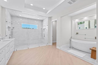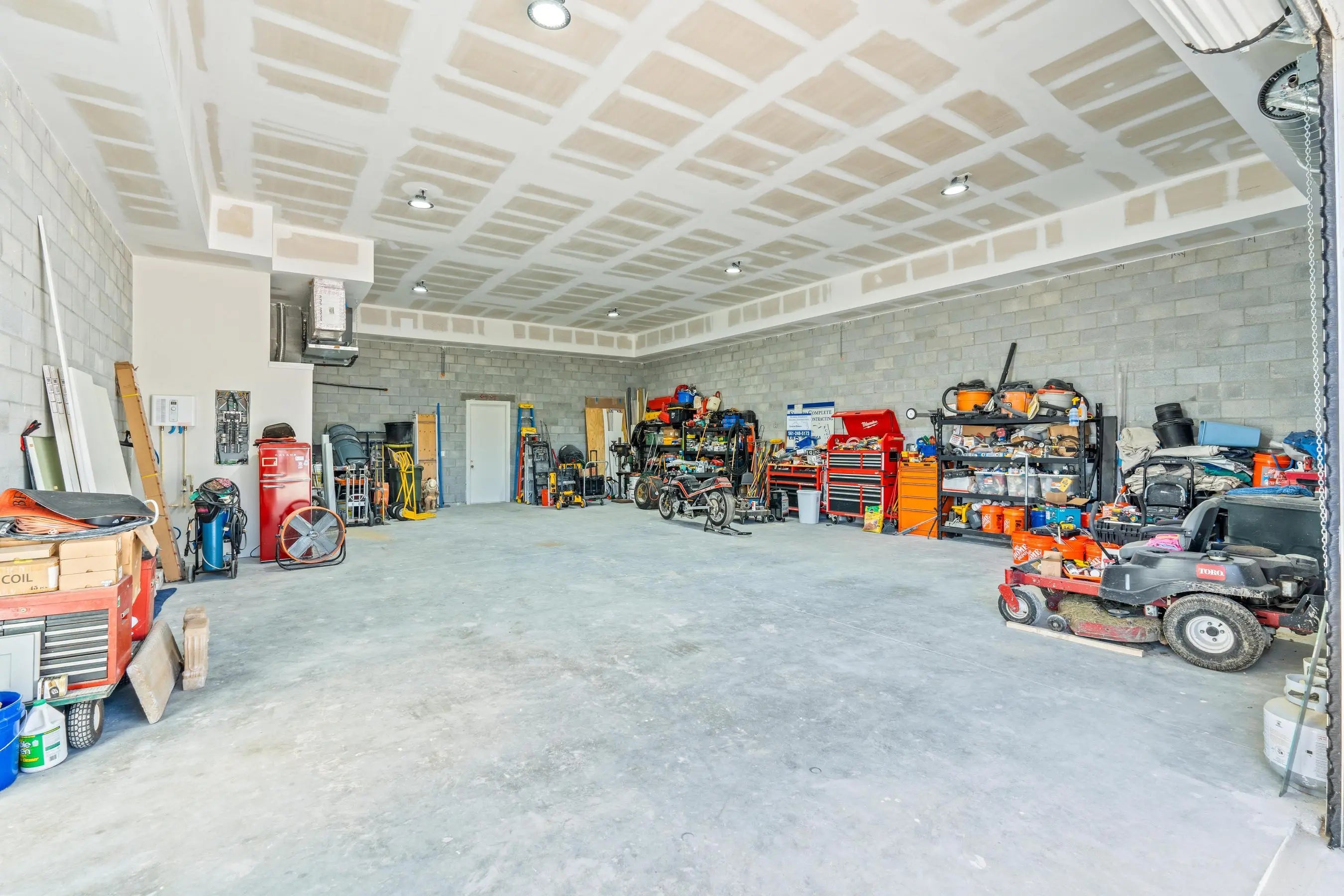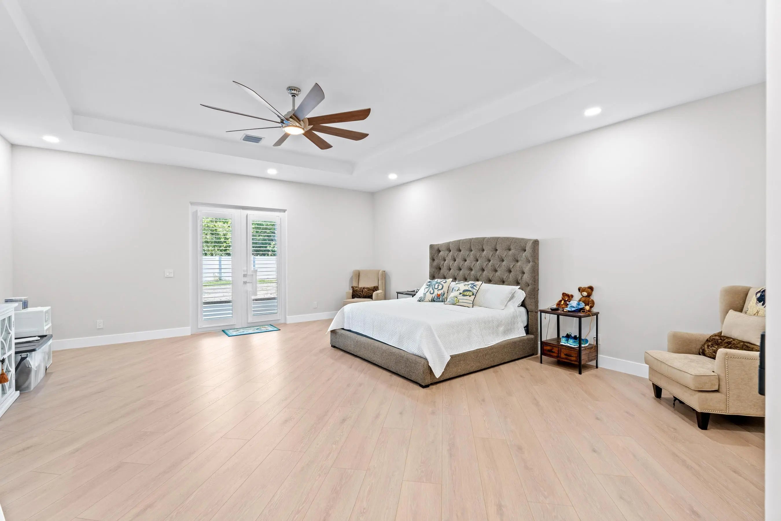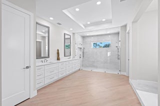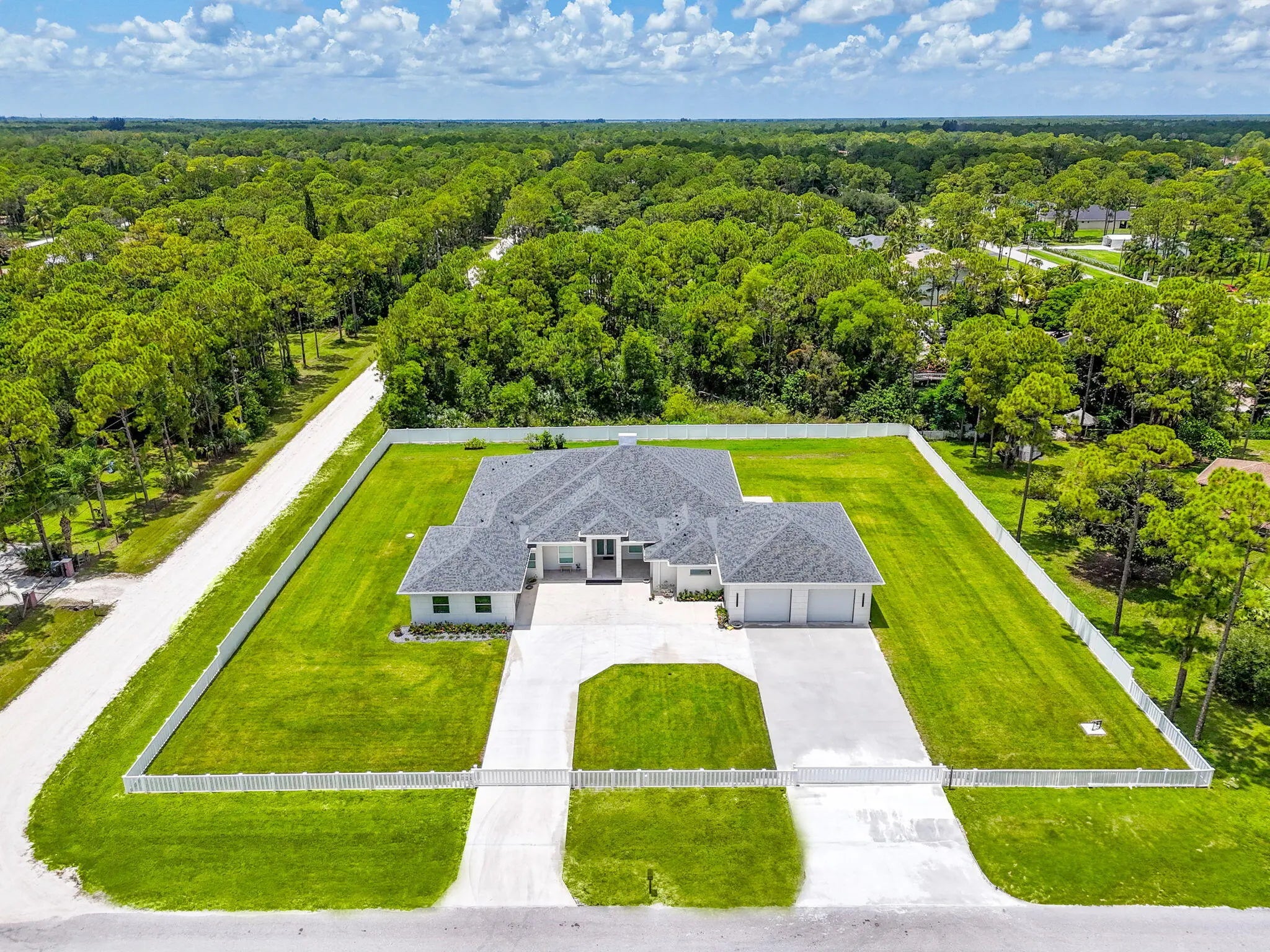 Experience unparalleled luxury and craftsmanship in this meticulously designed custom home, showcasing unique upgrades and premium finishes throughout. Nestled on a beautifully landscaped lot with a 4' privacy fence, the property is enhanced by a lush St. Augustine lawn maintained by a sprinkler system. The owners have invested well over $60,000 to properly fill and elevate the lot, ensuring superior drainage and eliminating any potential water-related concerns for years to come. A whole-house reverse osmosis system and a 4'' deep well with pump ensure exceptional water quality and efficiency. The exterior boasts energy-efficient double impact argon-filled windows and 8' doors with custom handles, while the interior features expansive 16' sliding glass doors that lead to a (continued) stunning porch with a custom-built wood-burning fireplace. Step inside to discover luxury laminate flooring and soaring 12' and 13' ceilings that create a spacious and elegant ambiance. The chef's kitchen is a masterpiece, featuring Quartzite countertops with a full backsplash, an oversized kitchen sink, and a custom cooktop backsplash by Haven Metals. A massive 6' x 12'6" island with a waterfall edge complements the suite of KitchenAid appliances, including a wine fridge. All-wood cabinetry with custom hardware and glass display tops adds a refined touch, while the fully equipped butler's pantry offers additional storage, Quartzite countertops, a built-in fridge, microwave, and floating shelves. The master suite is a sanctuary of luxury, with custom wood vanities featuring pullouts, polished nickel hardware, and a Quartz countertop that cascades into the walk-in shower. The master bathroom also includes a freestanding soaker tub with a polished nickel floor filler, a frameless glass shower with large-format tiles and recessed shelves, and polished nickel Kohler fixtures. Each ensuite bathroom throughout the home mirrors this level of elegance, with solid wood vanities, Quartz countertops, frameless glass showers, and large-format tiles, while the powder room stands out with a Quartzite countertop, custom sink, and faucet. The home's functionality matches its beauty, with a laundry room featuring all-wood cabinets, Quartz countertops with a waterfall edge, and an undermount sink. Energy efficiency is ensured with full spray foam insulation, two tankless water heaters, two A/C systems, and soundproofed interior walls. Ceiling fans are installed throughout the home, while full-skirted Kohler toilets add a final touch of refinement. The warehouse is equally impressive, featuring spray foam insulation, sheetrocked ceilings, and a bathroom with Quartz countertops, an undermount sink, and Kohler fixtures. The outdoor patio is ultimate backyard retreat fully screened with picture frame style screens to not obstruct your amazing views into the backyard. Outdoor patio is fully tiled with rectified porcelain making it a breeze to maintain. There is not anything not thought of with this home. This home exemplifies the perfect blend of luxury, design, and practicality, offering an unmatched living experience for the discerning buyer. Don't miss your opportunity to call this exceptional property your own.