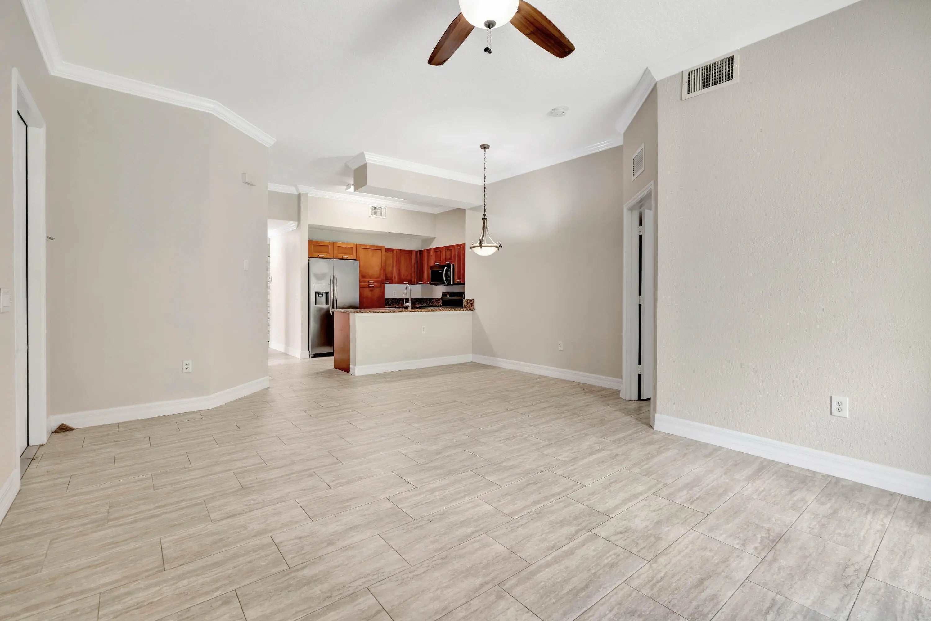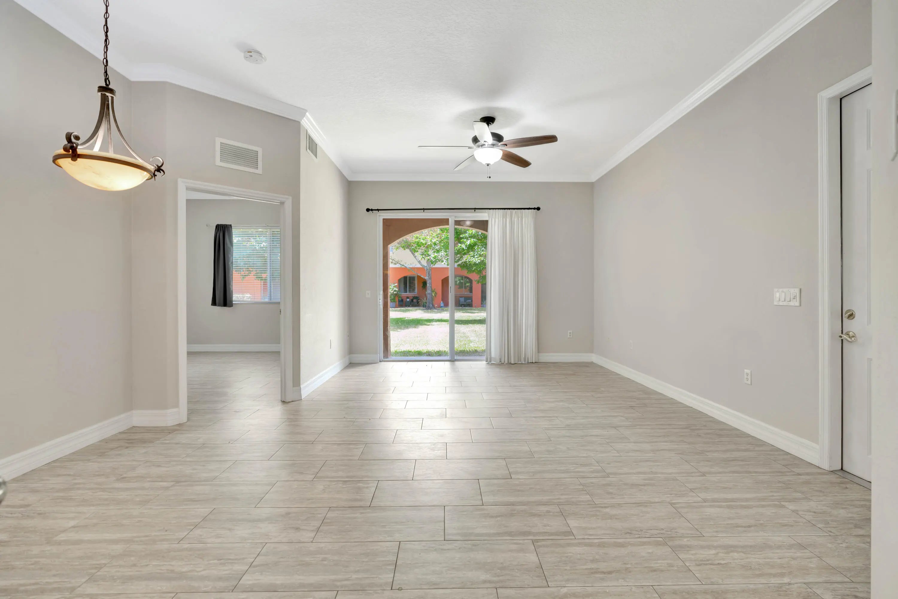 Stunning corner unit featuring 1st floor living, 3 spacious bedrooms, 2 bathrooms, washer/dryer, and a convenient one-car garage, making this a true gem in the gated community of Vilabella. Immediately upon entering you will notice the inviting vaulted ceilings, porcelain tile floors, and large windows that enhance the living space with natural light, showcasing peaceful views of the backyard area with plenty of distance between the other residences. This home is convenietly located right across from the community swimming pool and cabana, offering easy access to leisure and relaxation. Solid wood cabinets, granite countertops, porcelain tile, and newer toilets throughout. All of this is just minutes away from downtown Stuart with plenty of entertainment, shopping, dining, & beaches. Additionally, it offers quick access to I-95, making travel to West Palm Beach a breeze. Vilabella is a wonderful community and with so much added infrastructure and the desire for people to reside in Stuart, this is a must-see, and a great opportunity to own in the heart of Stuart. The property is in immaculate condition, ensuring a clean and serene living environment for all residents.