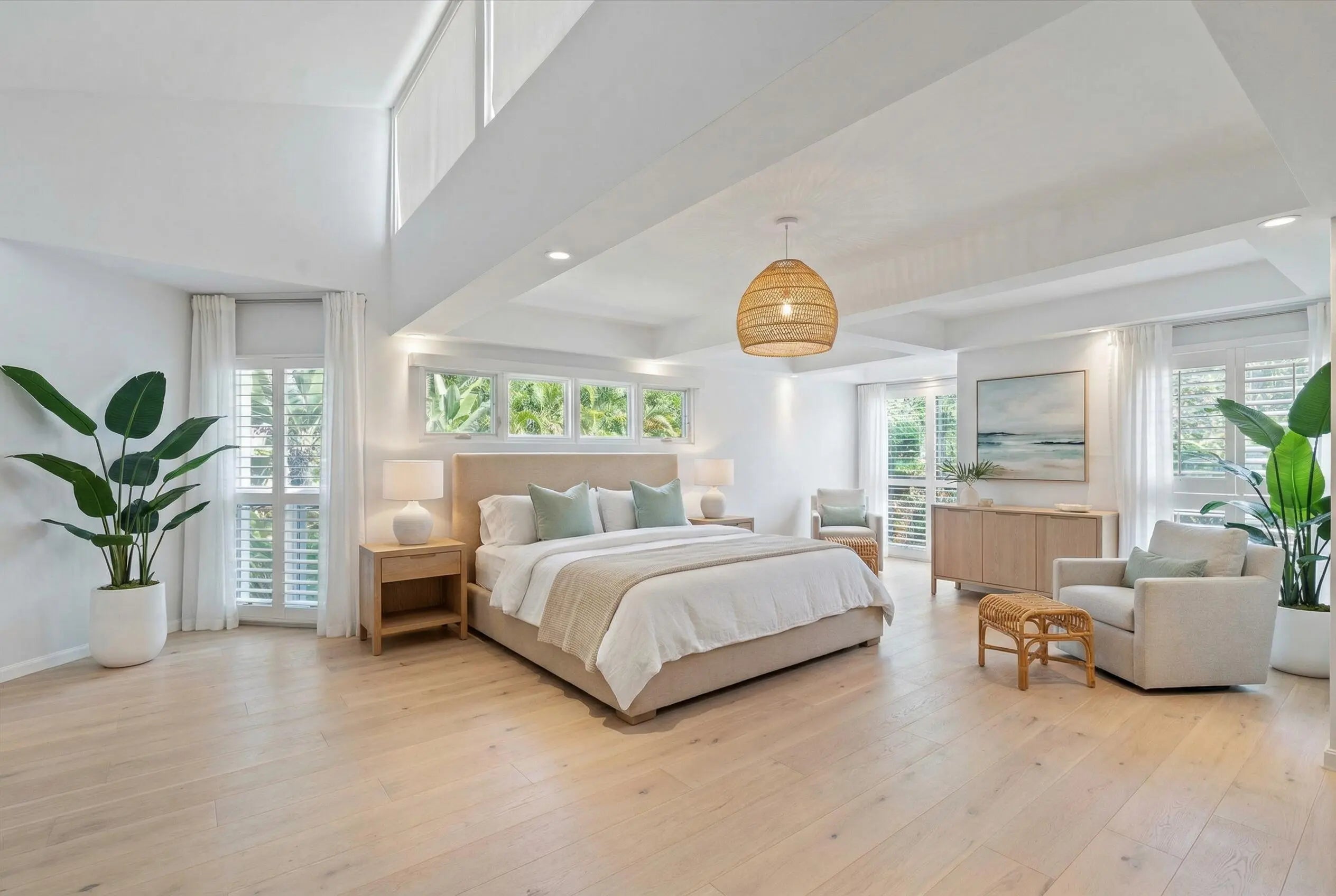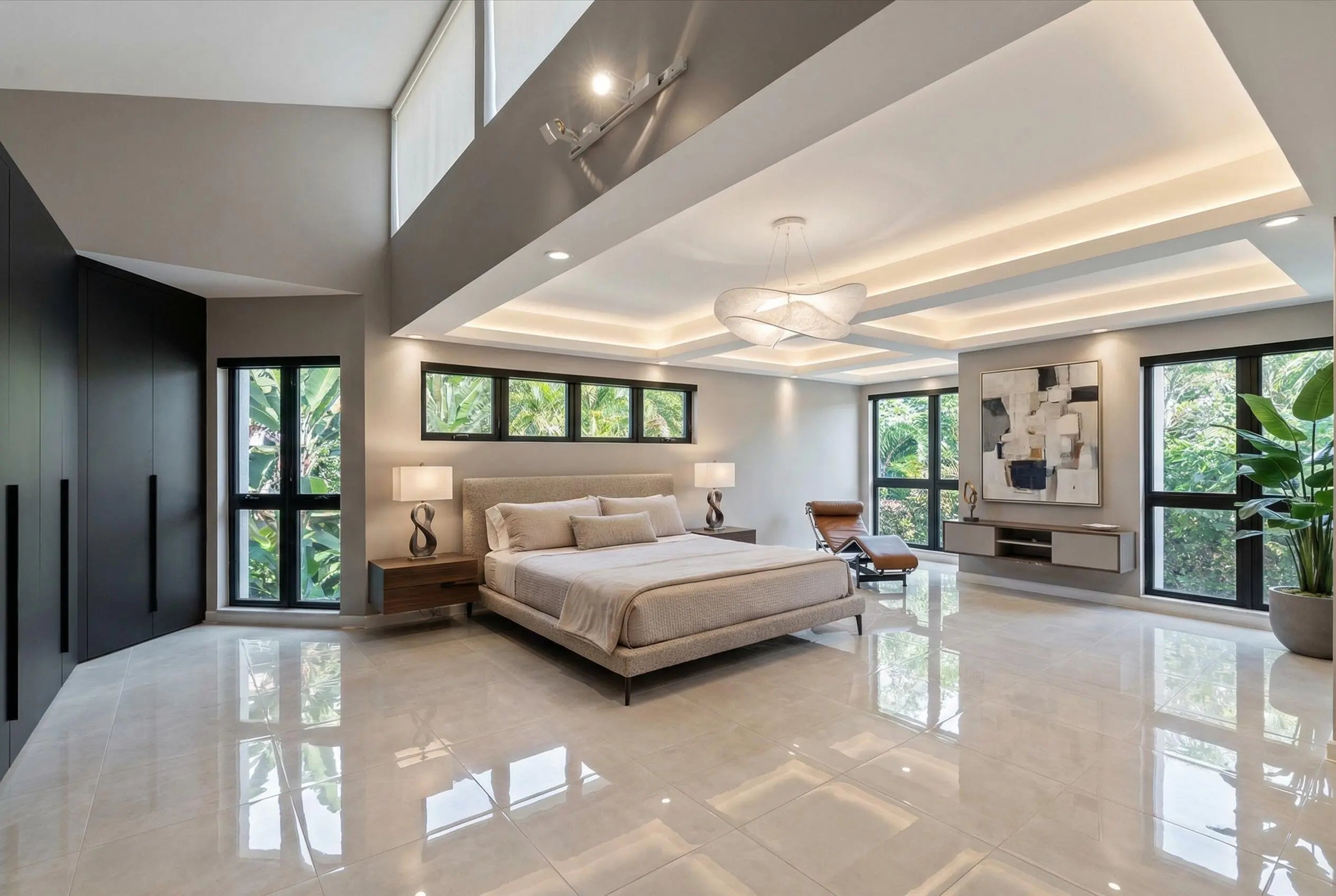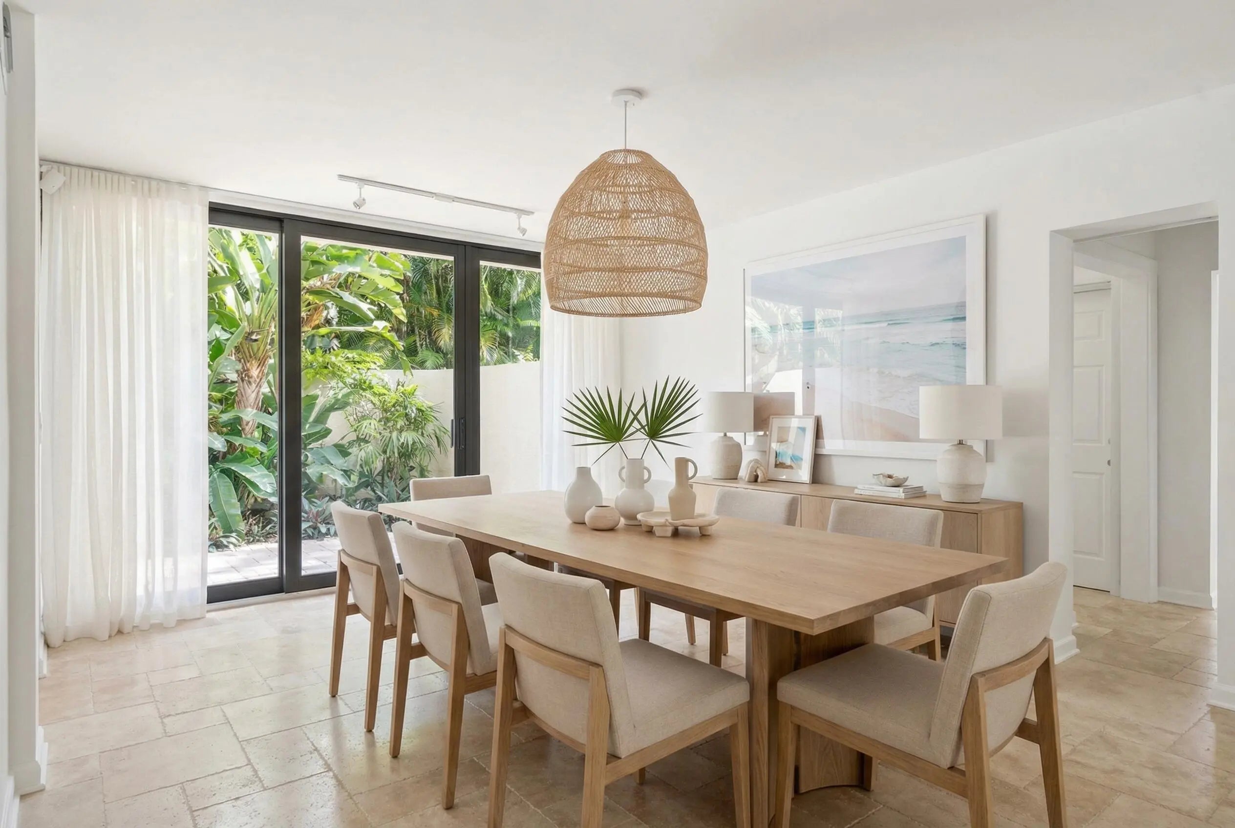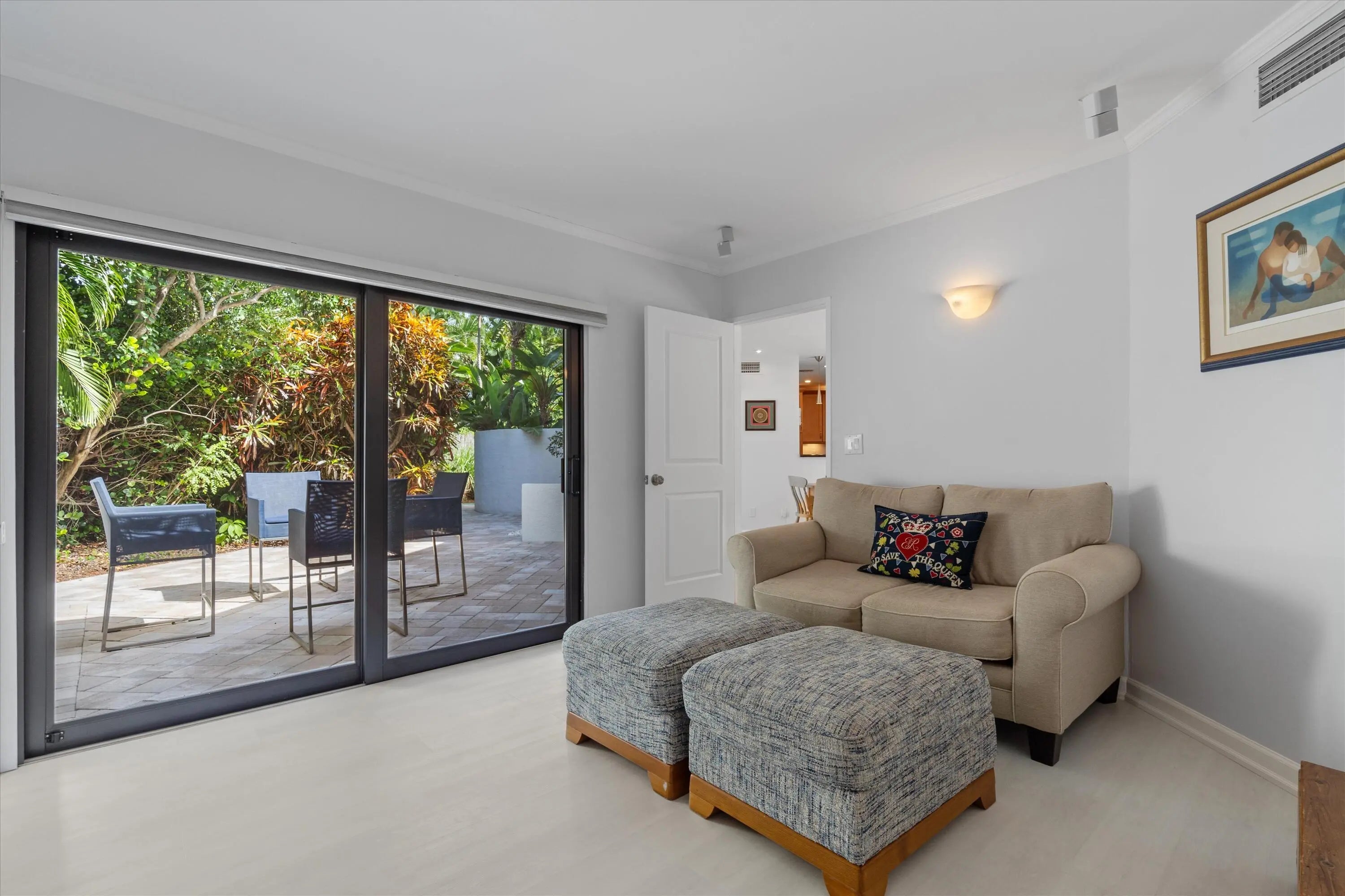 Custom designed by award-winning architect Bob Currie—and originally built as his personal residence—this remarkable home is an architectural treasure in one of Gulf Stream's most desirable, private communities, Place Au Soleil. Offering four bedrooms, three and a half baths, and more than 3500+ square feet of thoughtfully curated living space, the home blends refined artistry with modern comfort, all surrounded by lush, native landscaping that attracts butterflies, birds, and gentle breezes from the nearby Intracoastal. The grounds have been reimagined by Florida native-plant designers to create a water-conserving habitat brimming with essential pollinators and coastal wildlife, and include a dwarf Julie mango tree. A walk through the front garden brings guests along a path of tropical plantings toward a handcrafted wooden door, or directly to the tranquil Zen pool terrace framed by pavers and a pool accented with fresh mosaic tile. Inside, the great room immediately captivates with a dramatic soaring ceiling and staircaseboth crafted from rich Costa Rican Mahoganysetting the tone for an interior defined by organic beauty, natural light, and seamless indoor-outdoor flow. Walls of glass and reinforced sliders open to private courtyards and gardens on all sides, allowing every room to connect with the serene landscape. Designed for both intimate living and effortless entertaining, the home provides dedicated private spaces on each level. The family room offers relaxed dining and direct access to the kitchen, the pool terrace, and the barbeque courtyard. A well-appointed kitchen sits at the heart of the home, featuring granite countertops, a stone backsplash, GE Profile appliances, and soft-close cabinetry. Multiple flex rooms accommodate a variety of lifestyles. A theatre room wired for surround sound opens to the barbeque courtyard and a full bath. An office or additional bedroom overlooks the pool, while a separate personal room off the garage offers an ideal retreat for fitness, hobbies, or work. A guest bedroom features views across the Zen terrace, and another full bath expands to a potential private sun patio accessible only from the bathrooman unexpected and delightful oasis. The spacious laundry room showcases extensive storage and offers fresh style and modern convenience with access to a side garden area. The dramatic spiral staircase leads to the secluded primary suite, where motorized blinds, refined finishes, and quiet treetop views create a luxurious escape. Architect-created plans illustrate the option to expand the second floor with additional rooms and a deck, making the potential of this home even more extraordinary. Outside, uplighting casts a warm glow over the gardens at night, emphasizing the home's curves and distinctive architectural lines. Shutters with hidden tilt add elegance and practicality, while a full alarm system, timed irrigation, and impact-rated windows provide peace of mind. The property sits on a cul-de-sac within a one-entry, one-exit community protected by the town's dedicated police force. Two driveways, one circular for guests and one electronically gated for residents lead to an attached garage with storage. Positioned moments from pristine beaches, the Intracoastal, and vibrant downtown Delray Beachwith its fine dining, boutique shopping, weekly Green Market, and lively festivalsthis home offers an unrivaled lifestyle in an established, eclectic, and meticulously cared-for waterfront community that encourages tasteful individuality. More than a residence, this is a statement of artistry and uncommon character. For those who refuse to settle for the ordinary, your Place Au Soleil masterpiece in Gulf Stream awaits.