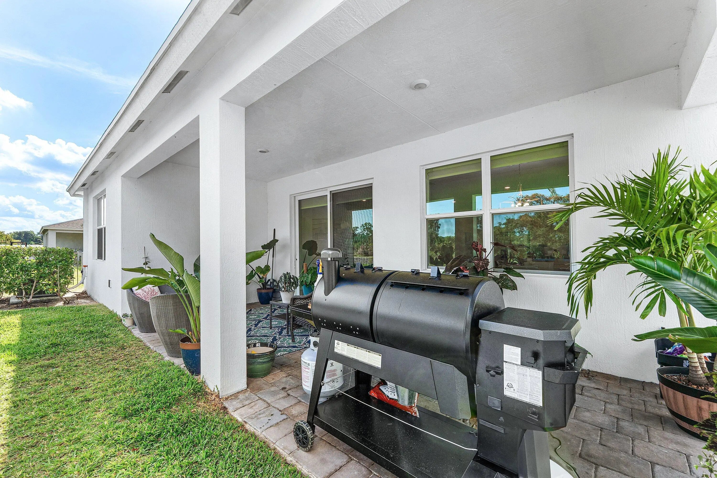 This DR Horton Delray model exemplifies the perfect blend of style, comfort, and coastal sophistication. Completed just one year ago, this single-level residence features four generously sized bedrooms and two beautifully appointed bathrooms. High-end finishes include granite countertops, an oversized pantry, a spacious kitchen island, elegant tile flooring, European-style light switches, and upgraded fans and light fixtures throughout. Constructed with durable CBS and outfitted with impact-resistant windows and doors, the home offers both aesthetic appeal and exceptional peace of mind. Inside, a thoughtfully designed split floorplan provides privacy and functionality, while the primary suite boasts dual walk-in closets and blackout roller shades enhance comfort in every room. The striking coastal elevation creates a welcoming first impression that reflects the home's refined character. Ideally located near top-rated restaurants, shopping, major highways, and airports, this property offers convenience, quality, and an excellent investment opportunity.