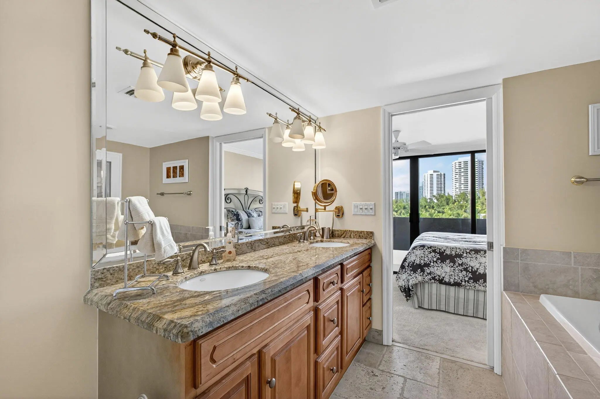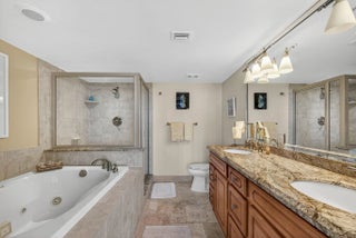 Wake up steps from the sand with friendly neighbors in this turnkey, elegantly renovated, fully furnished 2BR/2BA home with high-quality pieces. This stunning residence offers a sought-after open-concept layout and the desirable north view in Building Two at the Cote d'Azur. . Enjoy dazzling ocean and Intracoastal views from every room and the oversized balcony. Features include tile in the kitchen, hallways, and baths, plus soft carpet in living areas and bedrooms. The kitchen has wood cabinetry and granite counters. The primary suite offers double sinks, granite, a glass shower, and great storage, with walk-in closets in both bedrooms. Coastal living at its finest.
