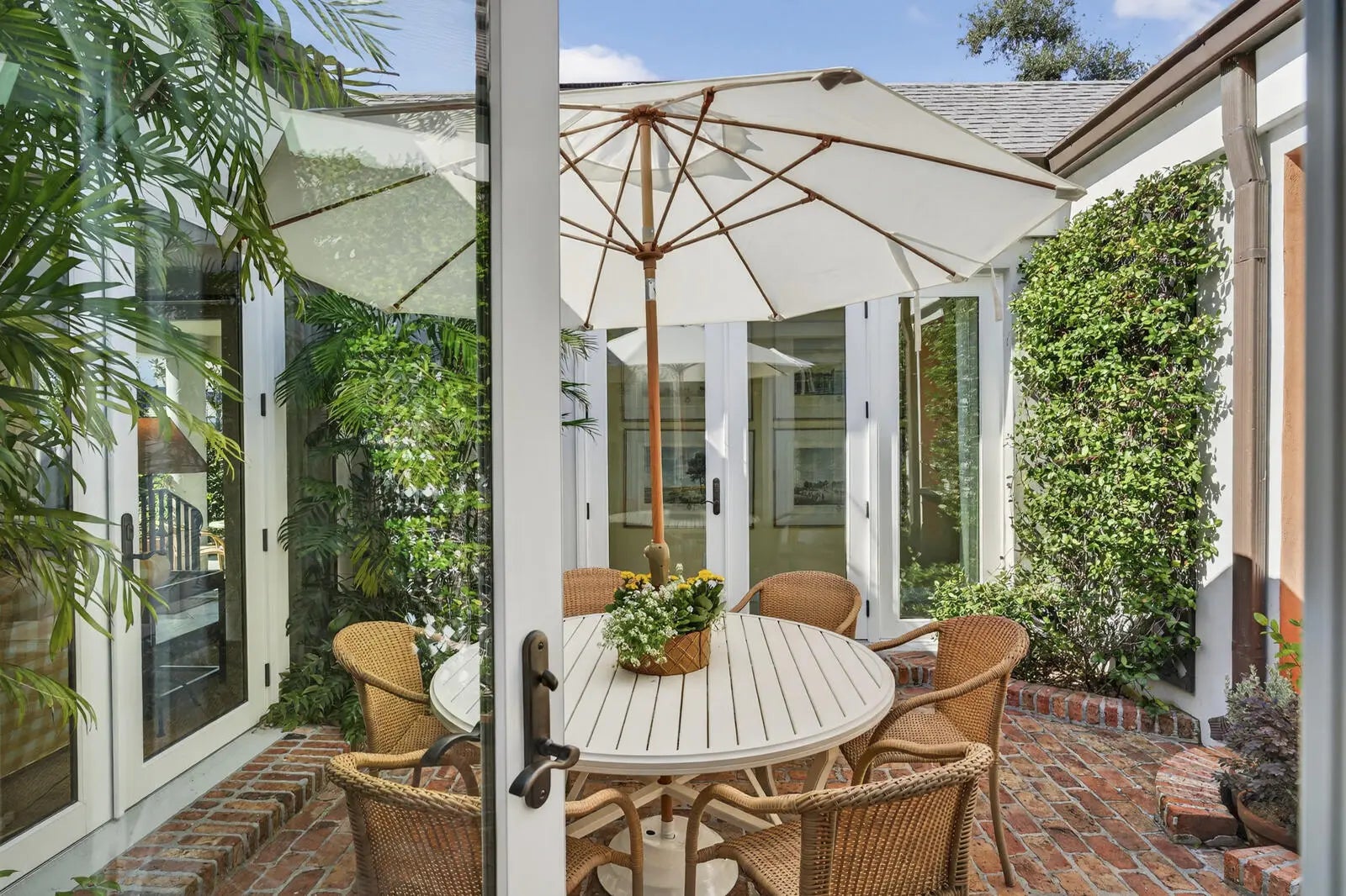 In Charleston Square—an intimate collection of six custom homes—this French-inspired residence sits among historic oaks between Quail River Club and Holy Cross . Offering 3,271 sq ft, the split-ensuite plan includes three bedrooms, three full baths, a vintage marble fireplace, walk-in closets, and flexible living and dining areas. Three courtyards extend living outdoors, including one with a dip pool, plus an oversized A/C two-car garage and established landscaping. The layout is oriented around private outdoor areas consistent with Charleston Square's design character throughout.
