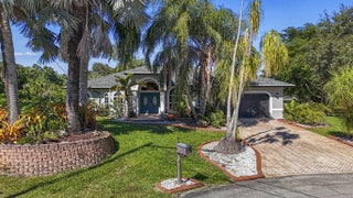 MOTIVATED SELLER ***Discover refined Florida living in this exceptional residence, perfectly positioned on an exclusive cul-de-sac. Set on an expansive, maturely landscaped oversized lot, this property offers a rare blend of privacy, elegance, and natural beauty. A grand double-door entry and stately bay window introduce a bright, sophisticated interior with a flowing split floor plan. Three sliding glass doors create effortless indoor-outdoor living, opening to a lush, fully fenced backyard with fruit trees, an oasis-style pool, and tranquil canal views—with the possibility of installing your own private dock.