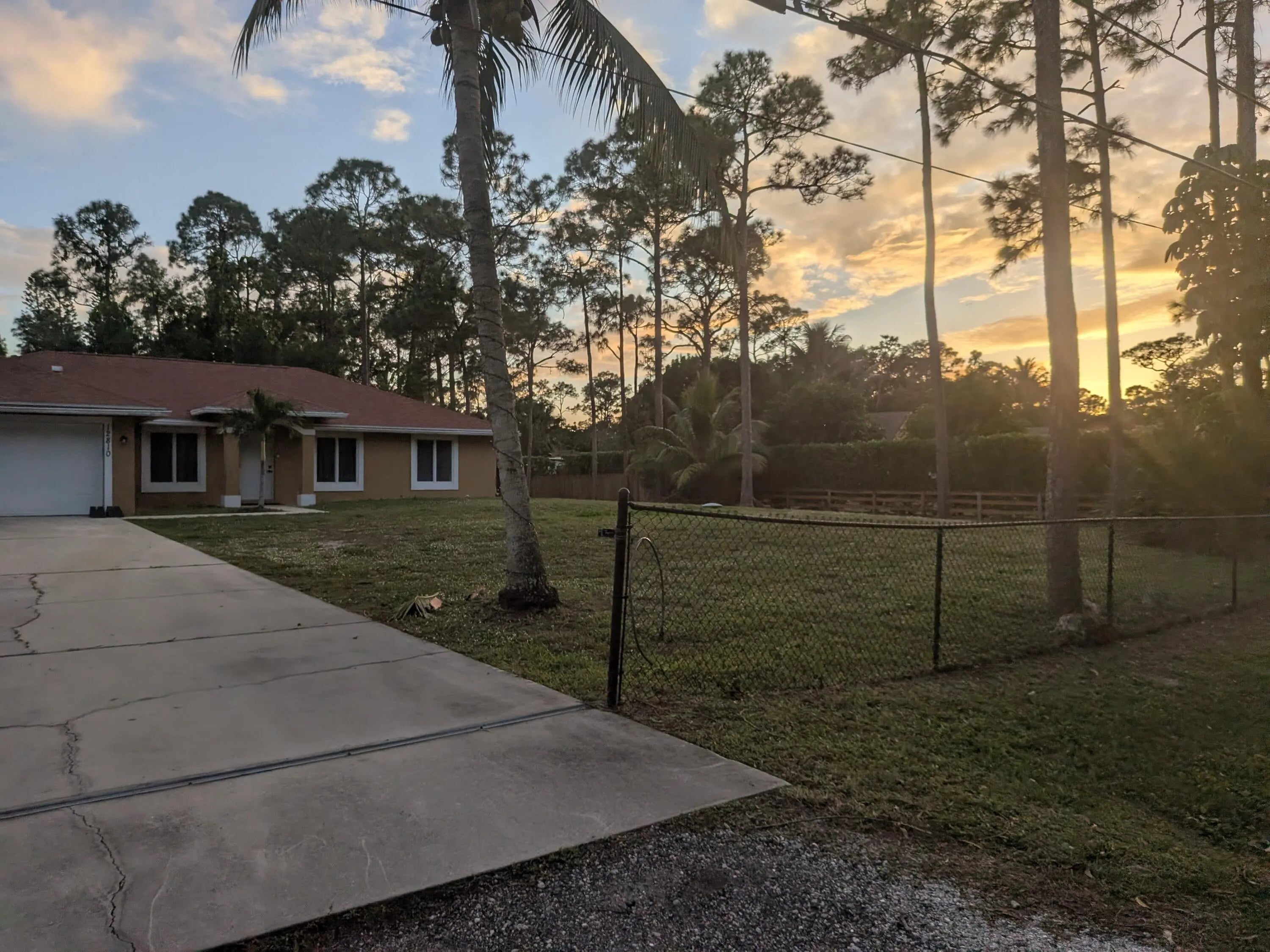 Just over 1 acre, fully fenced located off paved road. Roof replaced in 2019. Impact windows throughout. New water system 2025. Fresh interior paint throughout. Washer/Dryer and fridge replaced October 2025. Fully permitted shed - 19.5' x 9.5' constructed of light gauge steel.