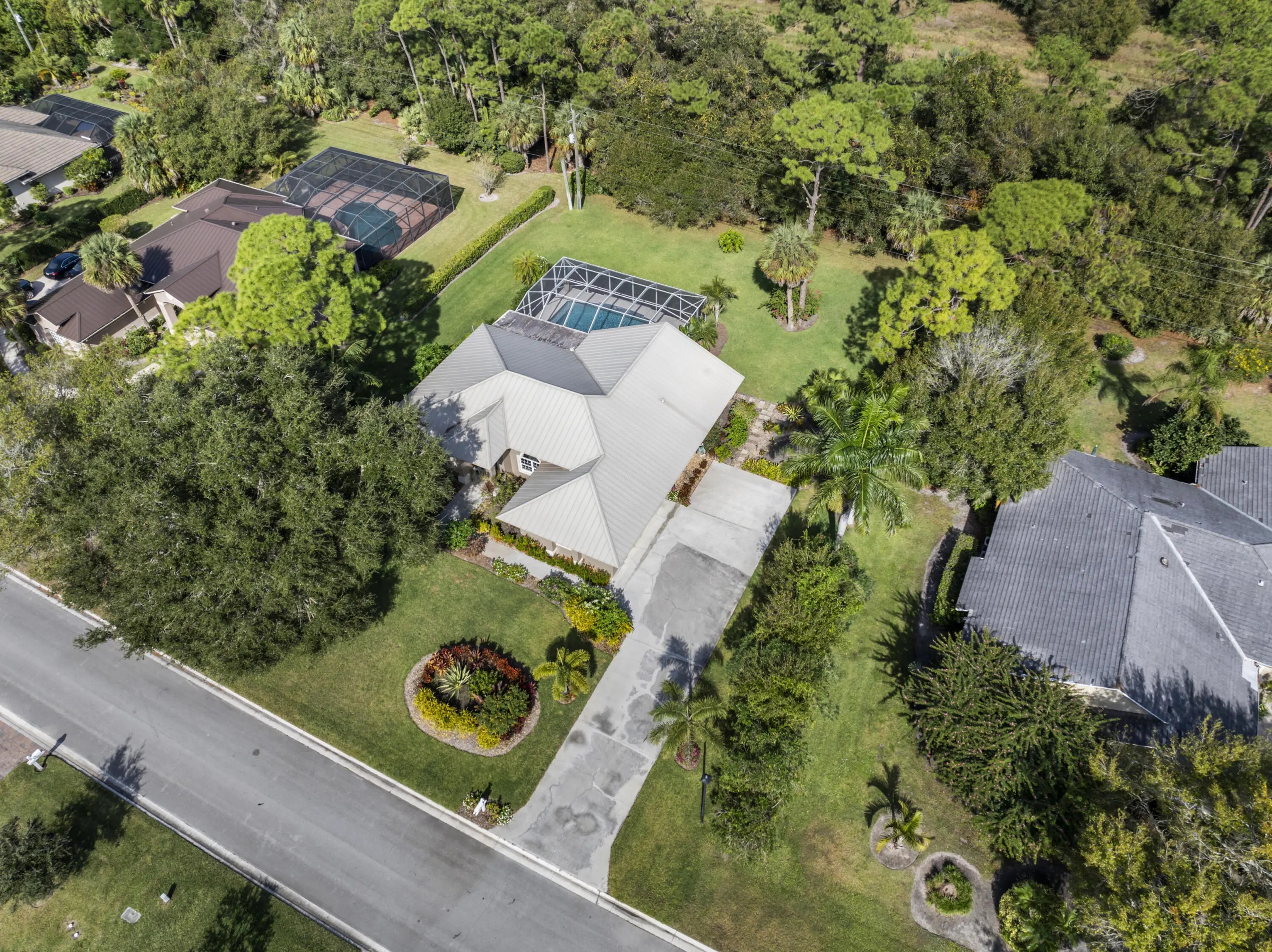 Discover one of Meadowood Golf & Tennis Community's best-kept secrets. This impeccably maintained 3-bedroom, 2.5-bath pool home sits on nearly half an acre with no rear neighbors, offering rare privacy. The interior feels move-in ready with 2025 appliances, 2024 tile flooring, a 2023 water heater, and a 2021 metal roof. A split floor plan with high ceilings and four sets of disappearing glass sliders opens to a spacious screened lanai and heated pool, perfect for indoor-outdoor living. Enjoy a guarded, gated community with no mandatory membership fees and an HOA that includes cable and water. Pet-friendly and minutes from the coast, this home offers comfort, privacy, and lifestyle in Meadowood Golf & Tennis Community. Due to the seller's schedule, all showings are weekends with 24hr notice