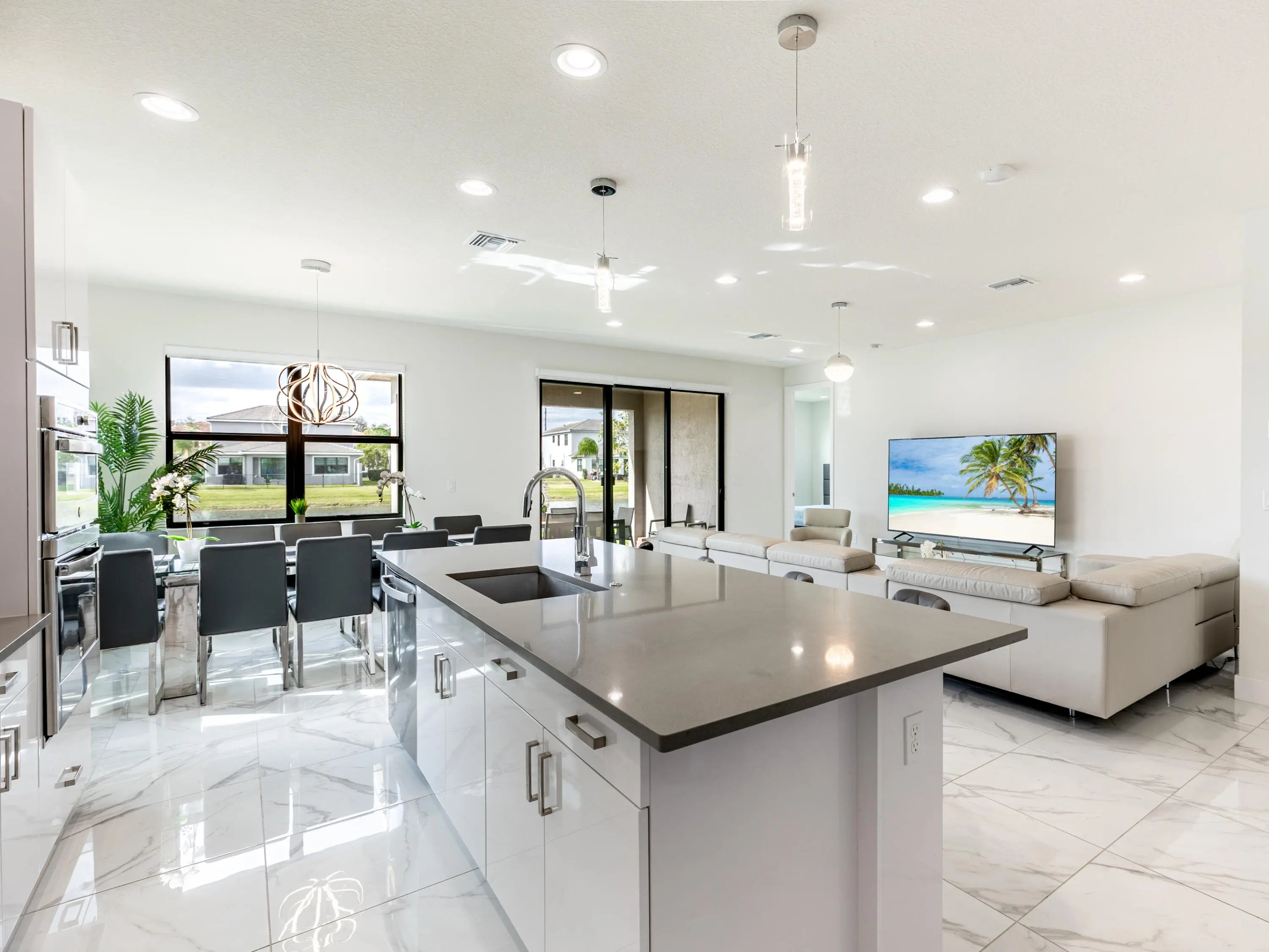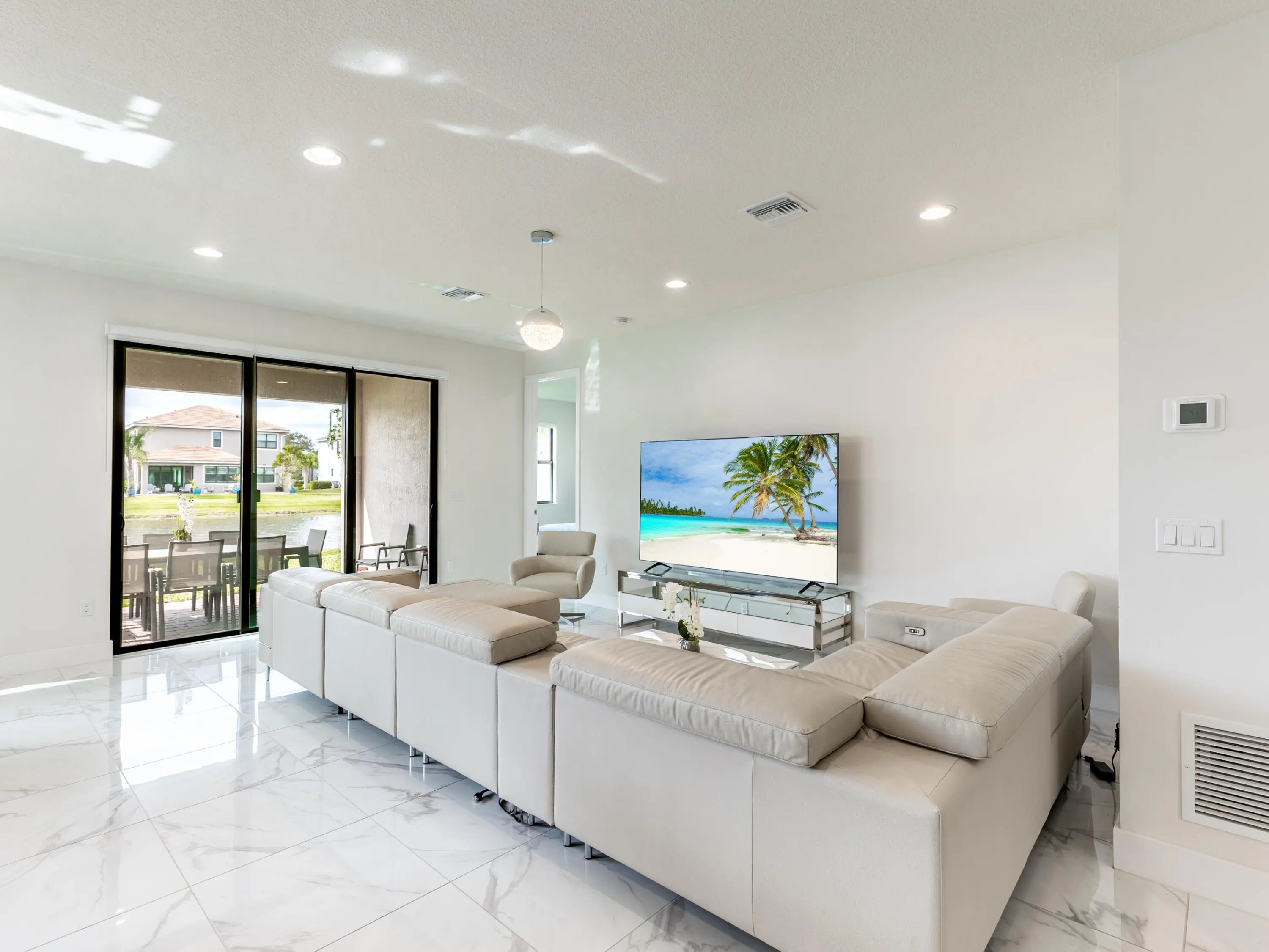 Gorgeous 6BR/4BA Single-Family Home with 2-Car Garage for Rent — Lakefront & Fully Furnished! Experience luxury living in this stunning, fully furnished home featuring the sought-after Moderna Elevation in a prestigious gated community. Enjoy an open-concept kitchen, spacious split floor plan, and hurricane-impact windows throughout for peace of mind. Located on a beautiful lake and just steps from the clubhouse, this home is situated in a natural-gas community and offers the perfect blend of style, comfort, and convenience. Prime location for commuting — minutes from the beaches, top restaurants, shopping, and major highways. A rare opportunity for high-end living in an unbeatable setting.