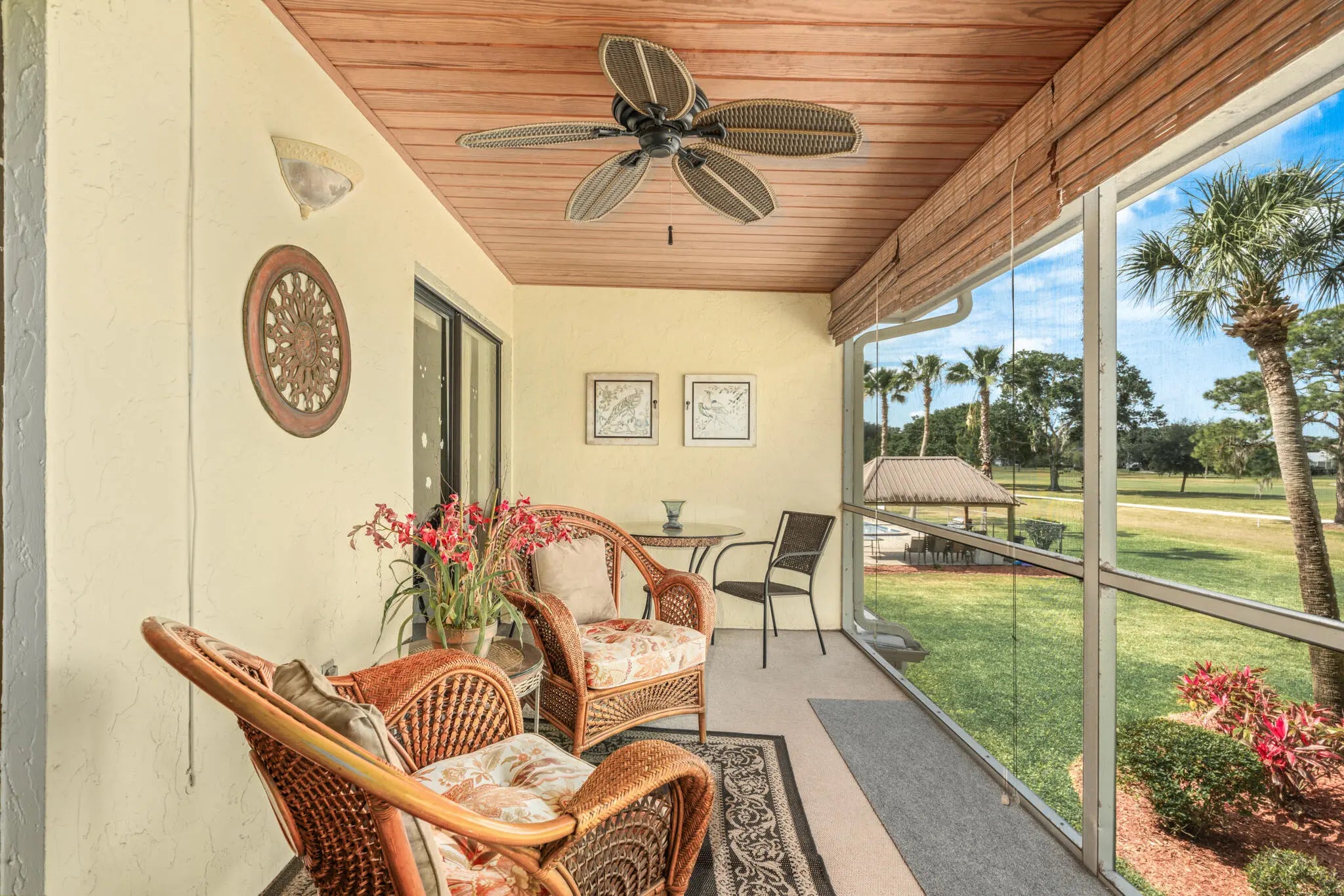 AVAILABLE FOR SALE OR RENT! Annual or short term lease. Nestled in Sun N Lake of Sebring Deer Golf course, this designer-furnished condo boasts a captivating view of Sun N Lake Country Club. Steps from a vibrant community center with playground, basketball court, pool, and workout facility, it's perfect for relaxation. Access to a country club with dining, pickleball, tennis, and shuffleboard adds allure. The split floorplan ensures privacy, with guests having their area with a bathroom, while the master suite features a walk-in closet, bathroom and a secluded porch facing the golf course and pool. Minutes to shopping and restaurants.