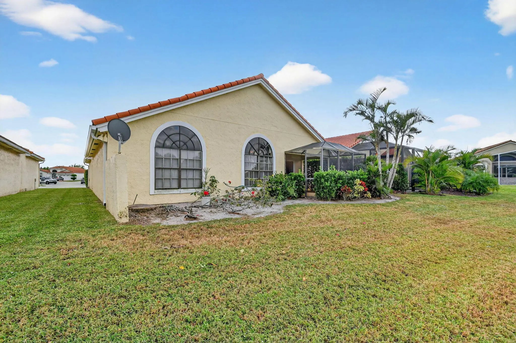 Beautiful, well-kept 3-bedroom, 2-bath, 2-car garage home with peaceful lake views. This home features a NEWER ROOF INSTALLED 2019 and NEWER GARAGE DOOR INSTALLED 2018. Enjoy the screened patio overlooking the lake, along with skylights and an atrium that fill the home with natural light.As you enter the front door, you'll immediately notice the spacious living room, the beautiful dining room with open atrium views. The kitchen offers a skylight, lake views, and opens to the family room. The split-bedroom floor plan provides added privacy.The primary bath features a large Roman tub, a generous skylight, separate his-and-her sinks on opposite sides of the room, and a separate shower. Low HOA of only $229 per month, which includes internet, cable, and clubhouse access with community pool. The community is located adjacent to the public Westchester Country Club golf course, perfect for getting on your golf cart and enjoying a round of golf! Starlight Cove is centrally located close to shopping and restaurants, and more. Zoned for A rated Hagen Road Elementary. Other important information: HVAC 2019, Hot Water Heater 2020, newer dryer
