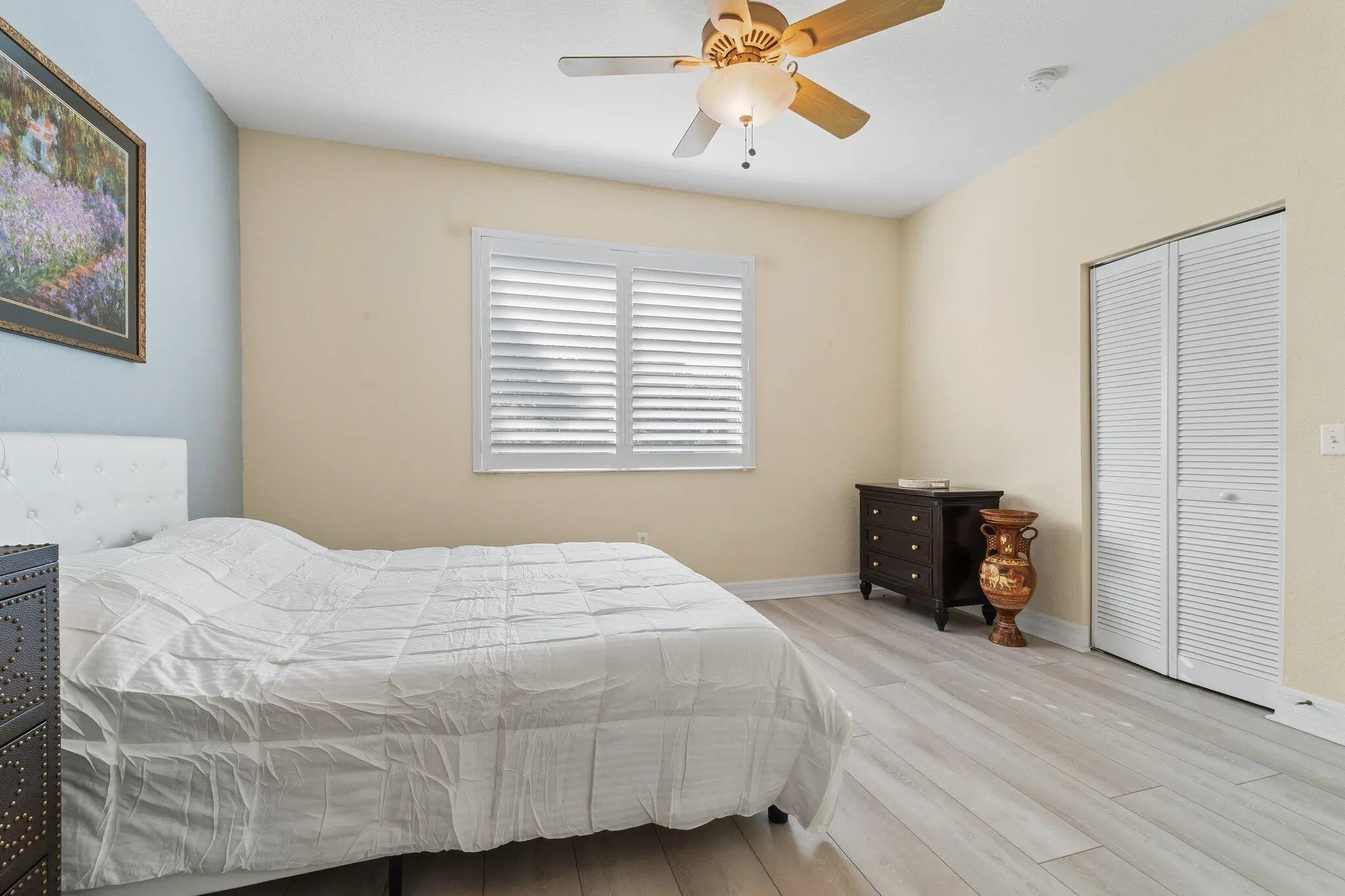 Experience stylish, low-maintenance living in this beautifully upgraded condo in the highly sought-after community of Vilabella. The Cellini model offers the largest floor plan, featuring three bedrooms and two full bathrooms upstairs, a convenient powder room on the main level, and a one-car garage. Vilabella is one of the very few condos in Stuart that allows two dogs of any size, making it a true standout for pet lovers. This gated community spans 17 acres and offers an ideal location, just 8 minutes from downtown Stuart and 15 minutes from some of the Treasure Coast's most beautiful beaches. This unit is conveniently located across from the community pool with plenty of guest parking. The home feels fresh, modern, and move-in ready thanks to an impressive list of recent renovations. The first floor features brand-new tile installed in 2024, creating a clean and cohesive look throughout the main living areas. New luxury vinyl flooring (2022) flows across the stairs, bedrooms, and upstairs hallway, adding warmth and durability. The kitchen has been updated with a new backsplash and fresh paint (2022), plus a new faucet and garbage disposal added in 2024. A stylish dining room light fixture (2023) adds a touch of modern elegance. Downstairs, you'll also find a powder room, convenient for guests. Sliders off the family room open to a 100 sq. ft. patio, the perfect place to enjoy your morning coffee while taking in the sunrise or sunset framed by a stunning Royal Poinciana tree. For those who value high-end window treatments, this home is equipped with custom plantation shutters throughout. All interior doors also feature new hardware in 2024, enhancing the home's fresh, updated look. Upstairs, the primary suite features an oversized walk-in closet and a motorized blackout shade (behind the plantation shutter). The ensuite offers a newly renovated shower with floor-to-ceiling basketweave marble tile and a built-in bench(2023) plus upgraded lighting. The washer and dryer are conveniently located on the second level. Two additional well-appointed bedrooms share a full bathroom, offering ample comfort and functionality. With thoughtful upgrades throughout and a pet-friendly policy that's incredibly rare in the area, this Vilabella condo offers the perfect blend of convenience, style, and lifestyle flexibility, all just minutes from downtown Stuart, shopping, dining, dog parks, beaches, and waterfront activities. This gated community features a refreshing pool with cabana, a tot lot, scenic lakes, and plenty of inviting seating areas throughout the neighborhood. Schedule your showing today!