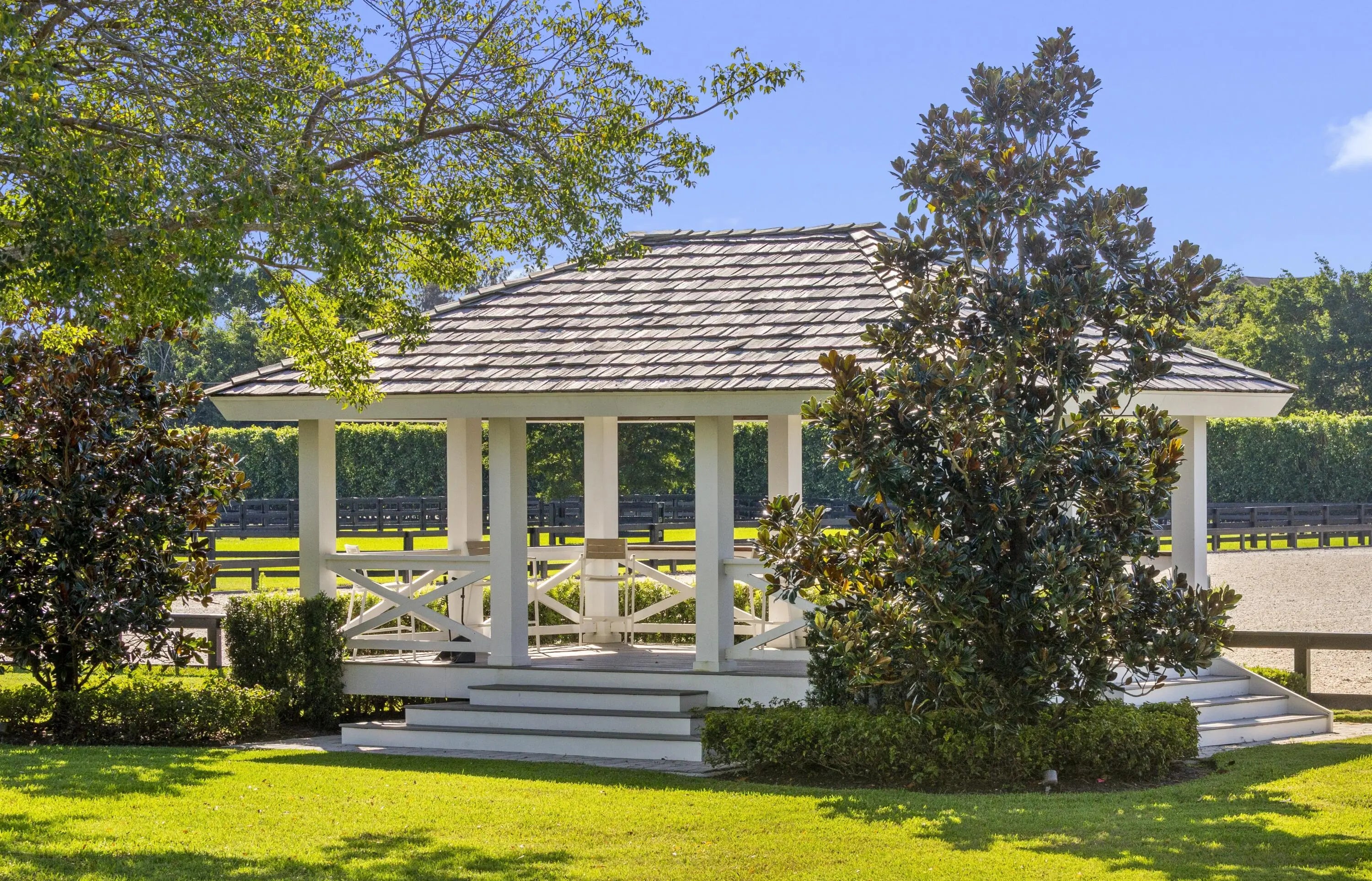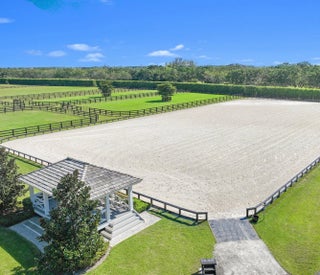 Truly one of Wellington's most exceptional equestrian estates, this 20+ acre property spans two parcels and offers a seamless blend of thoughtfully designed equestrian amenities and a fully reimagined luxury residence - each finished with uncompromising attention to detail. The open-air 20-stall barn was designed for professional-level functionality and effortless daily use. It includes multiple tack rooms, three grooming stalls, two covered wash racks, a commercial-grade laundry room, generous storage, an RO system, and covered jump storage. A beautifully finished rider's lounge provides a full kitchen and bath, while two renovated one-bedroom staff apartments occupy the upper level. Additional equestrian amenities include a 150' x 300' riding arena with viewing area, a 90-foot round pen, eight expansive paddocks, a five-acre stick-and-ball field, and a fully fenced perimeter. The main residence, originally constructed in 2000, underwent a comprehensive architectural addition and top-to-bottom renovation from 2020 to 2021, with every surface, system, and interior detail replaced or upgraded. Encompassing 11,274 sq ft of living space, the home features six bedrooms and 7.2 bathrooms, including an oversized upstairs game room or sixth bedroom with kitchenette, full bath, private balcony, and its own exterior entry. Additional interior spaces include a beautifully appointed office, an inviting card room, a dedicated dog room, and beyond generous storage throughout the home. Completed by a fully air-conditioned four-car garage. The home's finishes showcase a refined blend of custom craftsmanship and contemporary luxury. Each room tells its own design story, highlighted by hand-painted tile, bespoke cabinetry by Woodland Cabinetry, Thibaut wall coverings, James Martin vanities, shiplap detailing, and lime-washed vaulted oak ceilings in the dining room. Mechanical and system upgrades include eight individually zoned AC units, one for each bedroom - a full-property RO system, Kohler whole-house generator, and extensive storage throughout. The kitchen flows seamlessly into the main living spaces and balances culinary performance with everyday elegance. Appointments include a Thermador six-burner gas range with an induction zone, double ovens, a Sub-Zero refrigerator and freezer, and a spacious scullery with an additional 32" Sub-Zero refrigerator and freezer and abundant custom storage. A dedicated coffee station offers refrigerated drawers and an icemaker, while the bar features four Sub-Zero refrigerator drawers. The primary suite is both luxurious and private, offering dual bathrooms, dual closets, a dedicated exercise room, and direct access to the pool terrace. Outdoor living is elevated with a resort-style sunken pool featuring in-water loungers, a rounded-edge spa, multiple spillovers, deck jets, and dramatic fire bowls. The expansive covered patio includes a complete outdoor kitchen with two grills, refrigerators, icemaker, sink, and mounted TV. A lighted walkway leads to the floodlit pickleball court with its own viewing gazebo. Mature landscaping envelopes the home, creating privacy and a lush, tranquil backdrop. A rare opportunity to acquire an estate of this scale, craftsmanship, and qualityoffering luxury living paired with top-tier equestrian facilities. More than an equestrian's dream, this property is a sanctuary the entire family can enjoy. DISCLAIMER: All information provided to you regarding this Property by Realtor and her associates has been obtained from third parties such as the Multiple Listing Service, public records and other sources. All Buyers should independently verify all information provided regarding this Property. The Sellers, Realtor and Broker make no representation as to the accuracy of this information. All Buyers should perform their own independent due diligence regarding this Property before executing a Contract for Sale and Purchase for this Property.