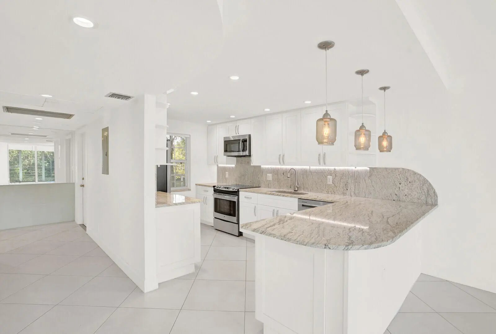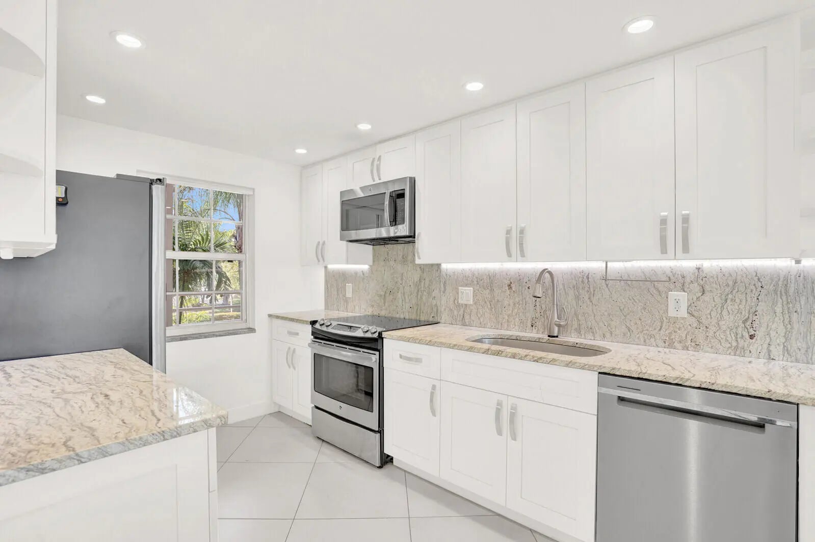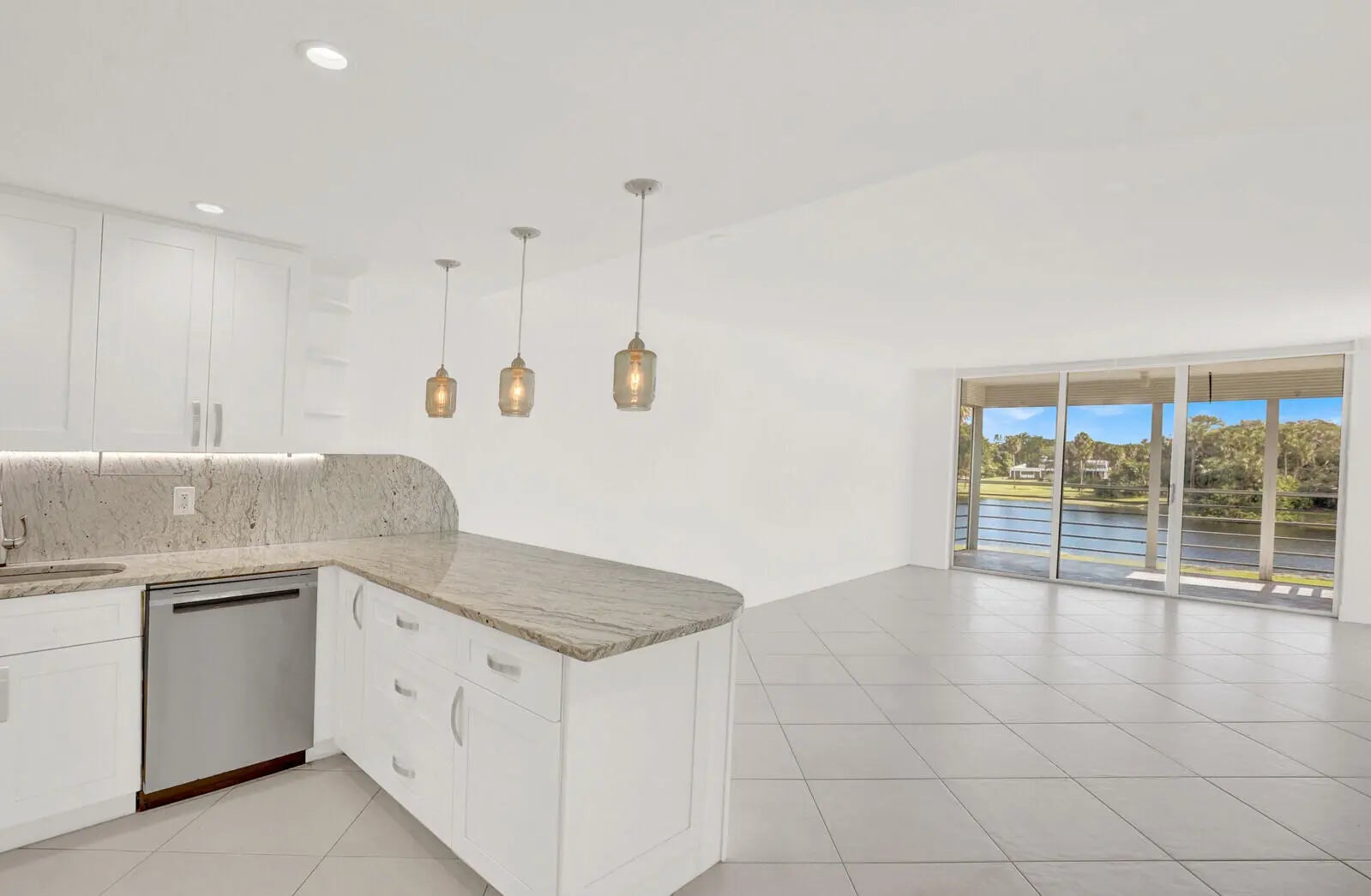 This bright and inviting corner residence offers a remarkably spacious layout with an easy, flowing design. Large windows on three sides fill the home with natural light, while the refreshed kitchen—opening directly to the main living space—creates a warm, connected atmosphere that extends out to a private screened balcony. From here, enjoy peaceful views of the wide lake and the beautifully maintained lawn below. The bathrooms and kitchen have been tastefully updated, and the convenience of an in-unit washer and dryer adds to the appeal. The generous room sizes and overall openness make this home feel exceptionally comfortable. Just steps away, across a quiet street, is the community's impressive resort-style amenity area featuring an oversized swimming pool, gathering room, kitchen, and well-kept facilities. Nearby tennis courts and a children's playground provide additional recreation options. Residents also have access to six golf courses and a clubhouse within the complex, offering a wide array of activities.