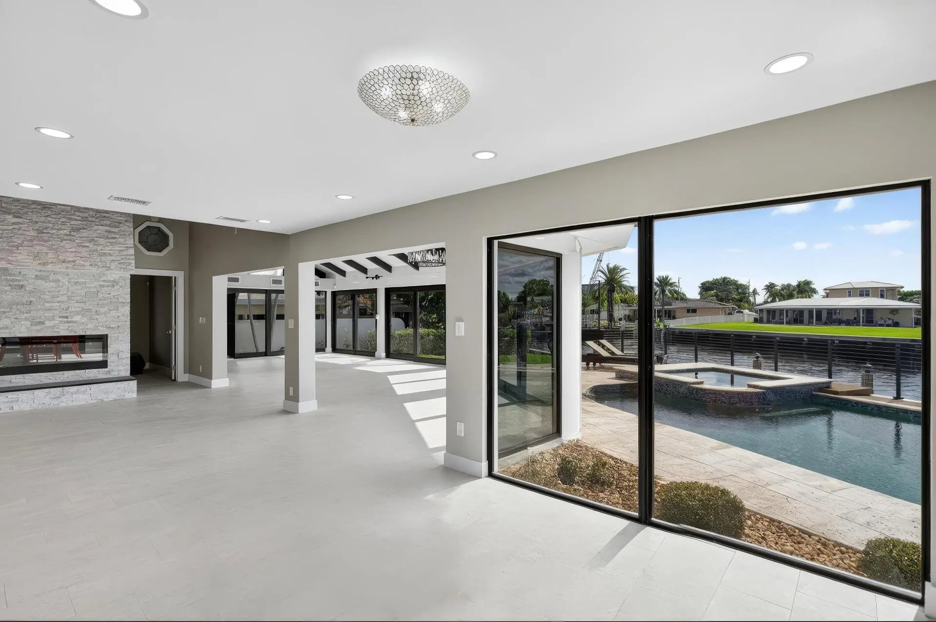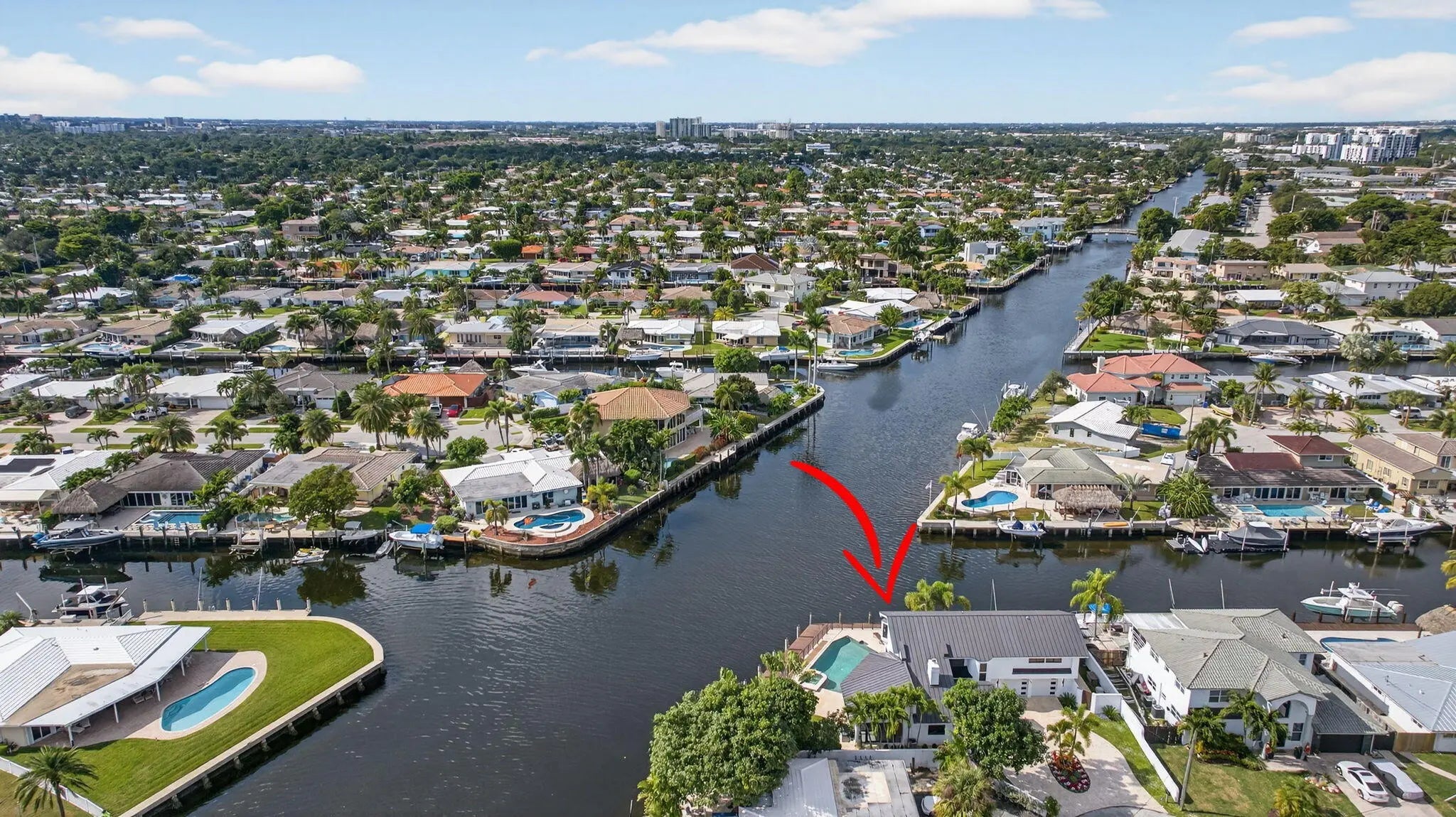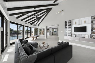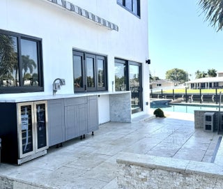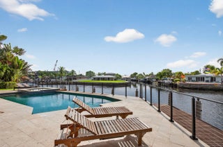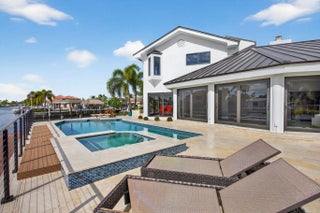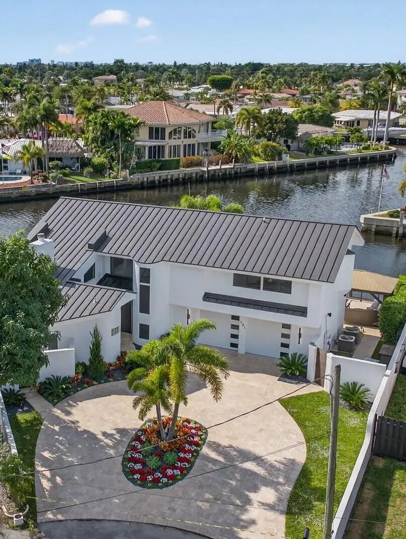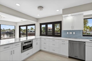 Rare point lot with almost 200 feet of waterfront and dock less than two miles from the beach! Discover stunning vistas and captivating sunsets from this meticulously renovated home. The residence includes 4 BRs and 3.5 baths, with one BR designed as an entry-level mother-in-law suite featuring private entrance and full bath. Upstairs features a huge master bedroom suite, all BRs with water views and a loft area. The kitchen features all new Viking appliances and a convenient pass-through window to the outdoor bar. Additional highlights include three new AC units, new impact windows, luxury front door, heated pool, security system, standing seam metal roof, and a two-car garage with a workstation and epoxy flooring. Only one fixed bridge between you and the ocean! More details to come.
