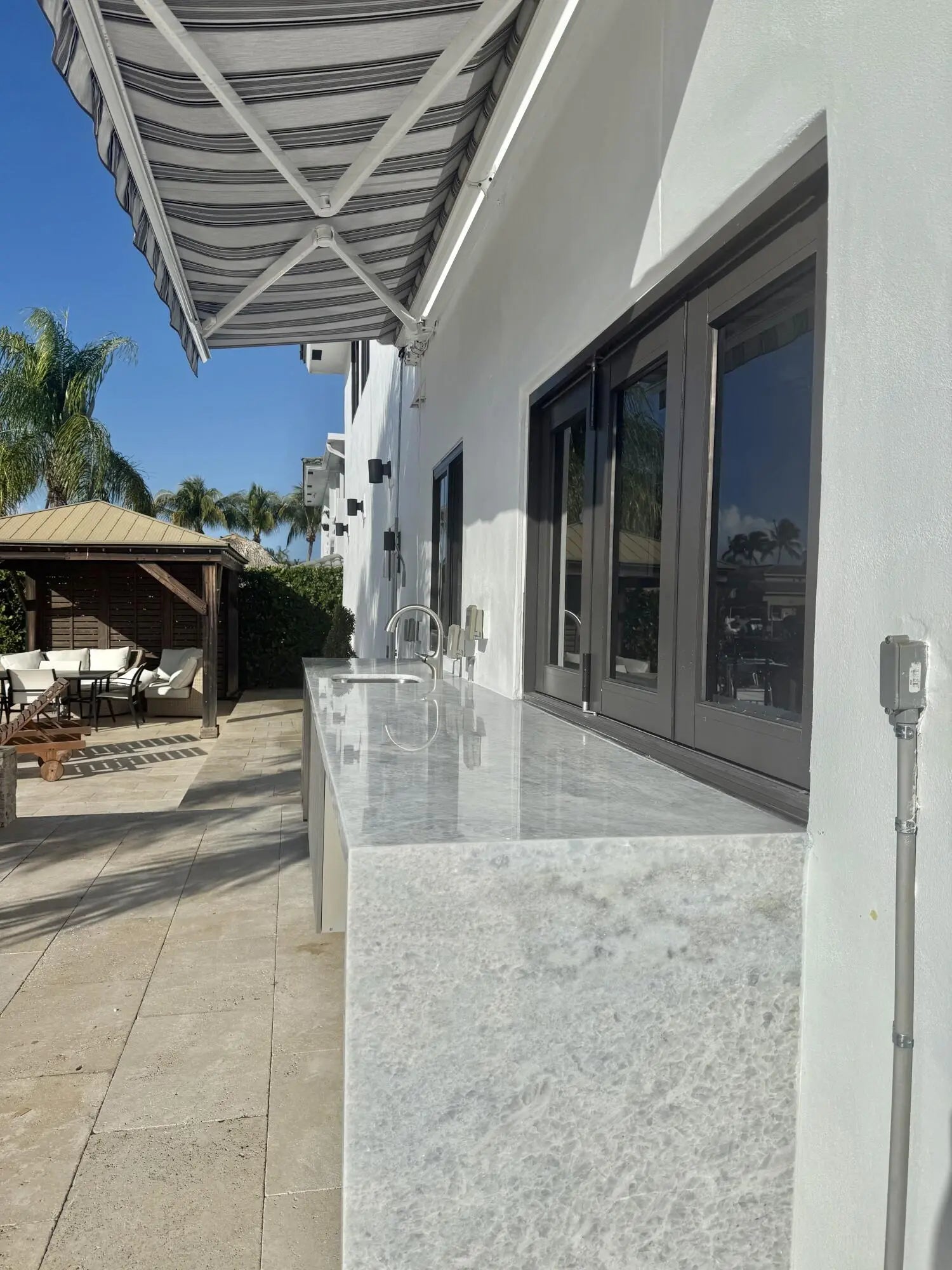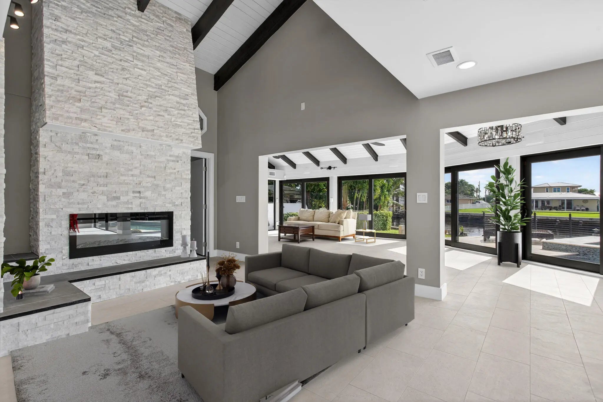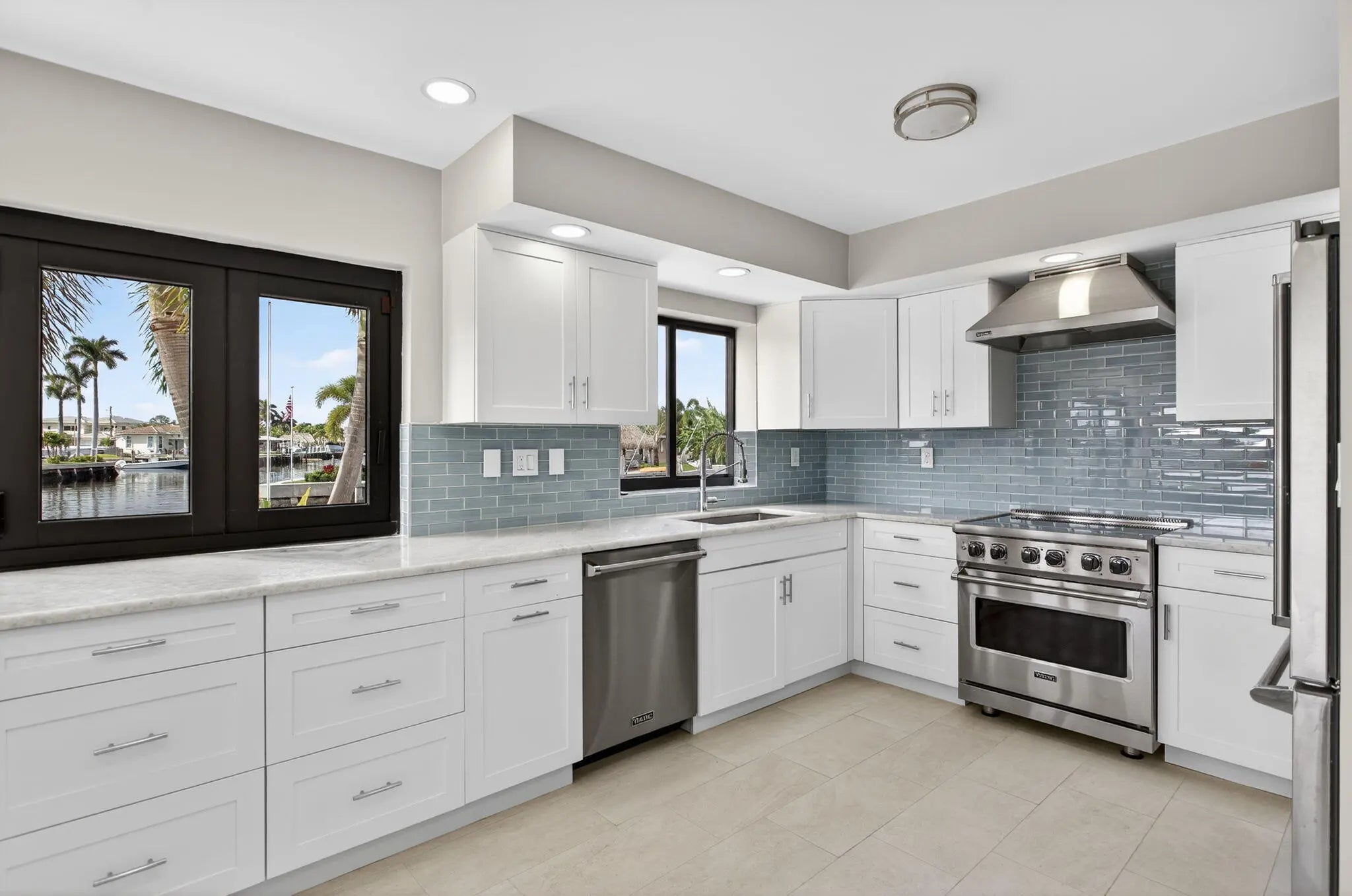 Rare point lot with almost 200 feet of waterfront and dock less than two miles from the beach! Discover stunning vistas and captivating sunsets from this meticulously renovated home. The residence includes 4 BRs and 3.5 baths, with one BR designed as an entry-level mother-in-law suite featuring private entrance and full bath. Upstairs features a huge master bedroom suite, all BRs with water views and a loft area. The kitchen features all new Viking appliances and a convenient pass-through window to the outdoor bar. Additional highlights include three new AC units, new impact windows, luxury front door, heated pool, security system, standing seam metal roof, and a two-car garage with a workstation and epoxy flooring. Only one fixed bridge between you and the ocean! More details to come.