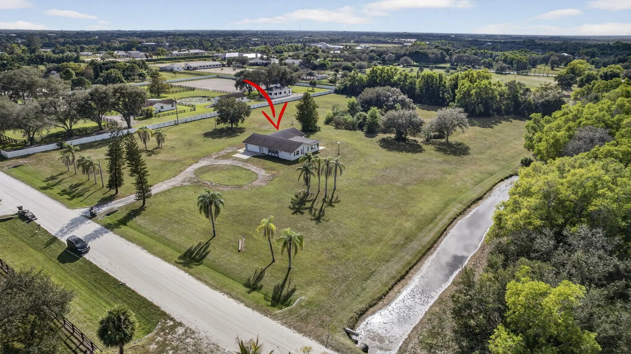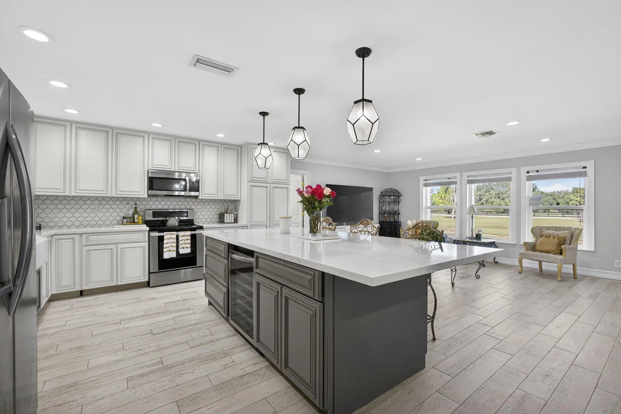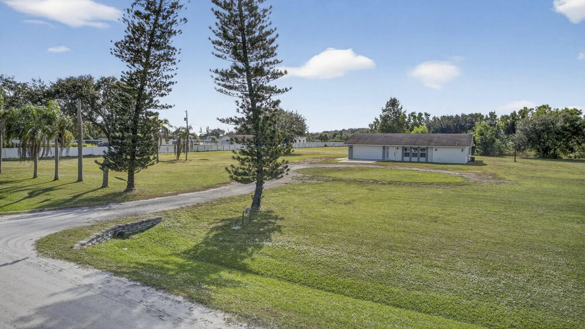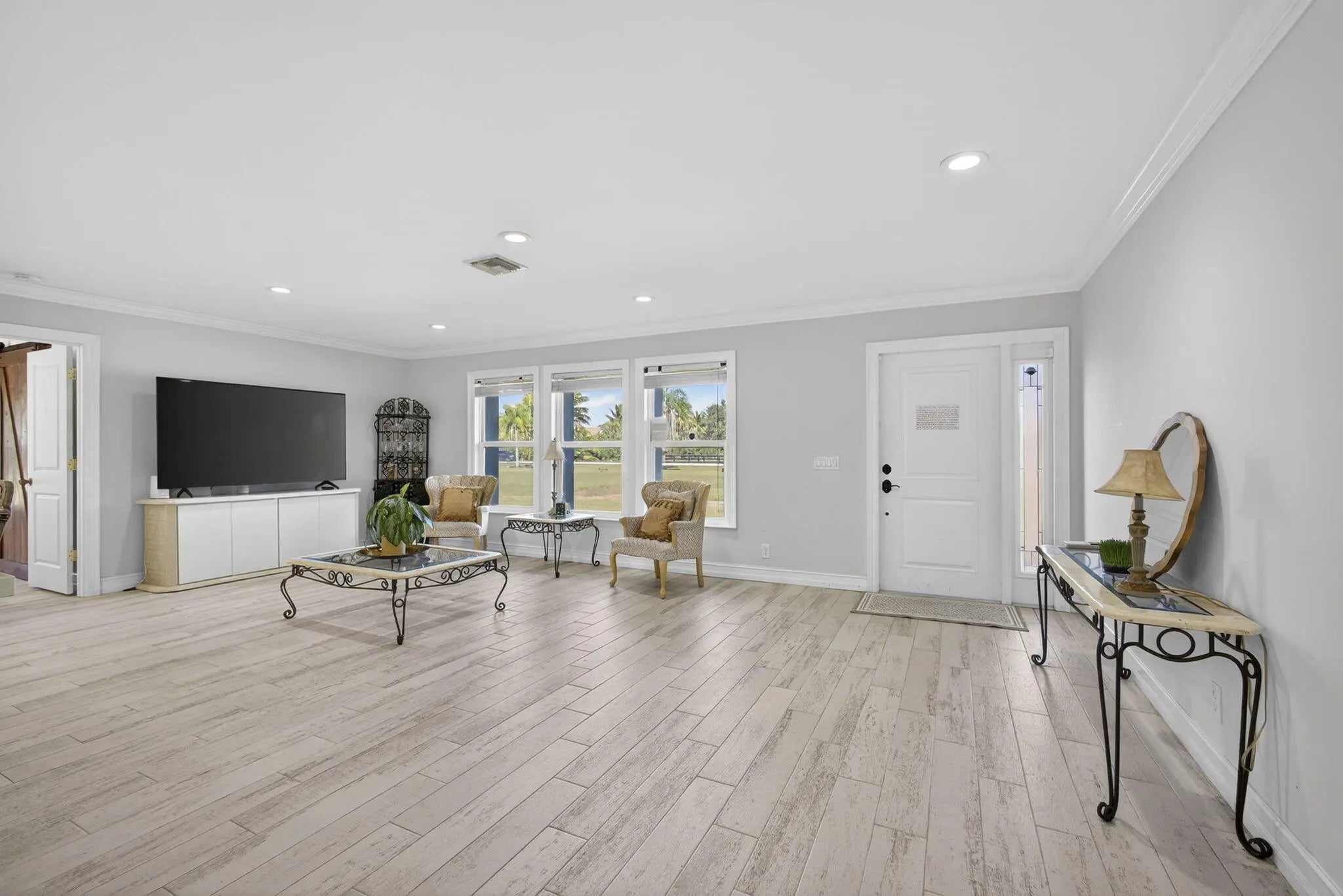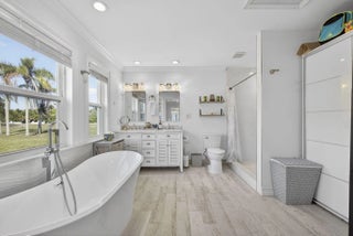 Welcome to Rustic Ranches in Wellington, the polo capital of the United States where luxury living and equestrian charm come together on 5 beautifully cleared acres with City water ready for you to create the horse farm of your dreams. Located minutes from Wellington preserve and only a five-minute golf cart ride to Wellington International. Step inside this fully remodeled, open-concept masterpiece, and you'll instantly feel at home. Offering 4 bedrooms, 4 baths, a game room, and a dedicated office, this 2,748 sq. ft. residence has been reimagined with impeccable attention to detail. Impact windows, recessed lighting, a brand-new kitchen and baths, and stunning plank tile flooring set the tone for modern comfort and style. The heart of the home is the gorgeous chef's kitchen, featuring new cabinetry, quartz countertops, Stainless Steel appliances, a spacious island, a large pantry with pull-outs, a farmhouse sink, and even a wine cooler, perfect for entertaining. The split floor plan provides ideal privacy. The expansive master suite boasts wall-to-wall picture windows that fill the room with natural light, plus a bonus space that can serve as an office or private retreat. This additional area includes its own kitchenette with a sink, countertop, dishwasher, and stove an incredibly unique feature. The luxurious master bath impresses with barn doors, a freestanding soaking tub, and a rainfall shower with a jet system for a true spa experience. One of the guest bedrooms includes its own ensuite bath, and all bedrooms offer generous space and comfort. Adding even more versatility, the garage, while keeping its original exterior door has been transformed into a fully finished game room or efficiency suite, complete with a split AC system, full bath, sink, countertop, and stove. Outside, your five cleared, partially fenced acres await your vision. Whether you imagine paddocks, barns, arenas, or peaceful open space, this property is ready to bring your equestrian dreams to life. All room sizes are approx.