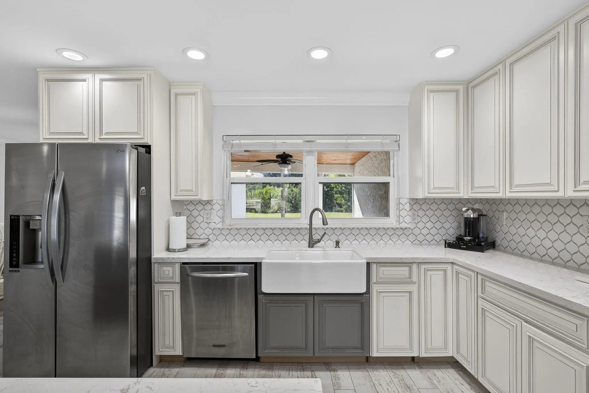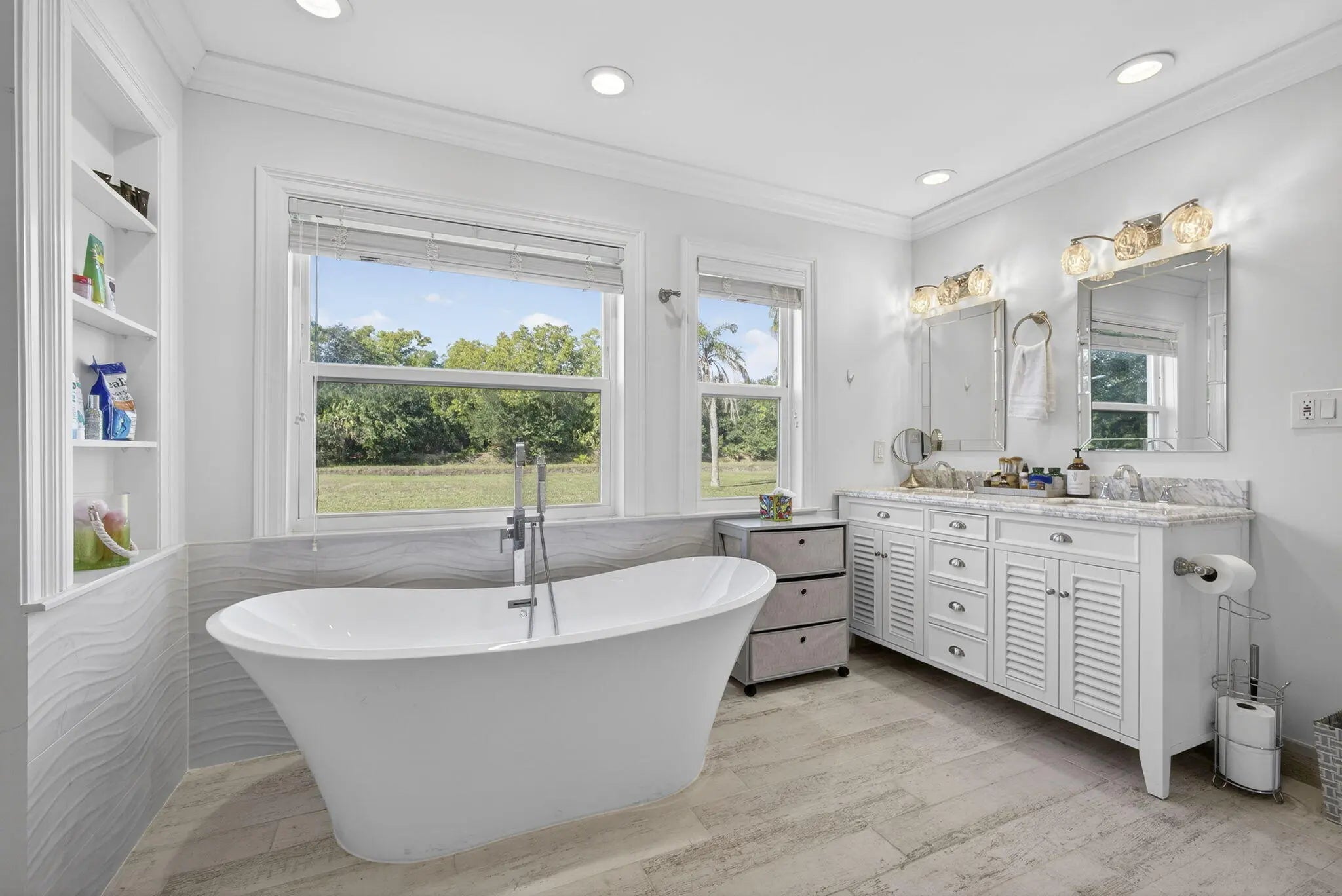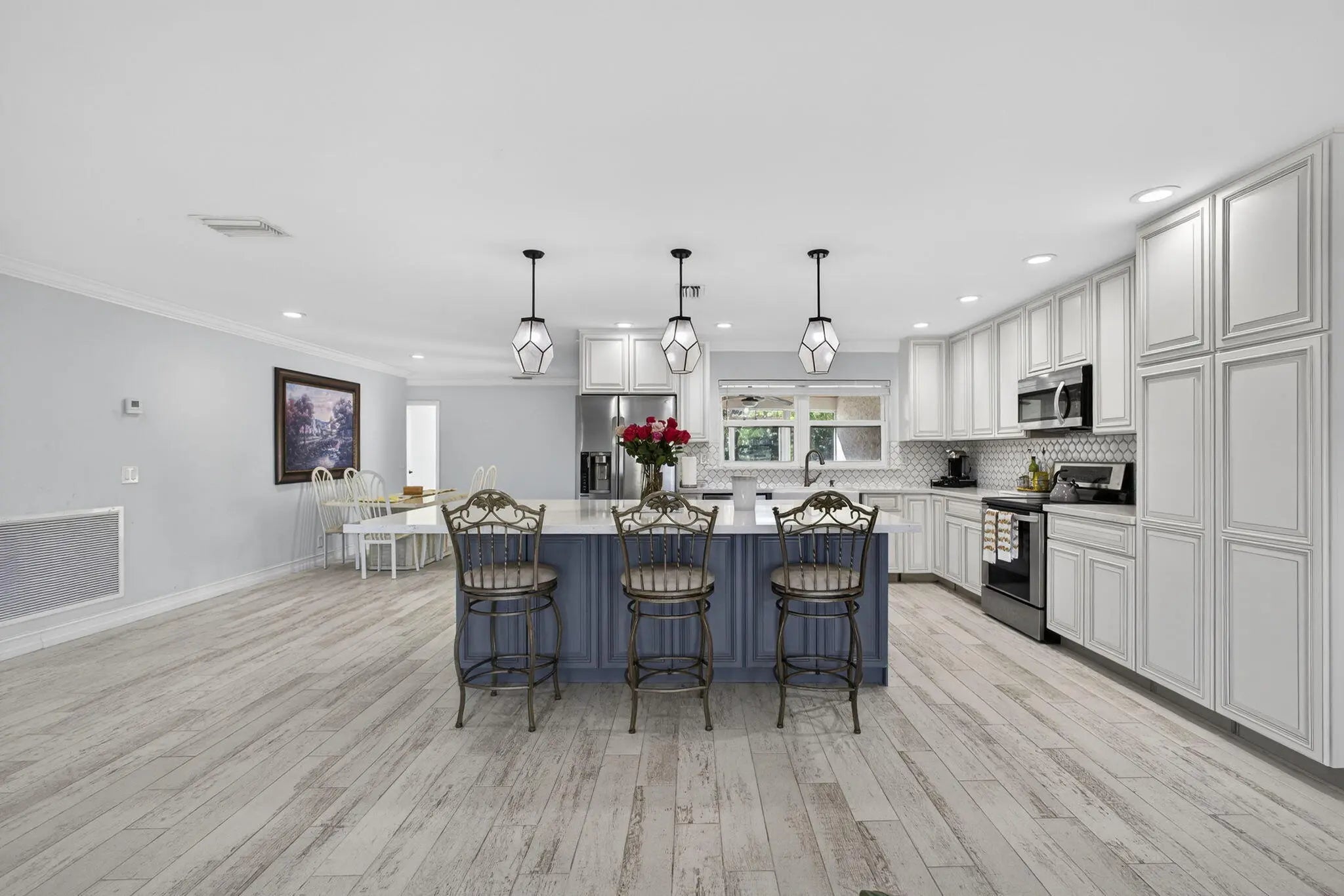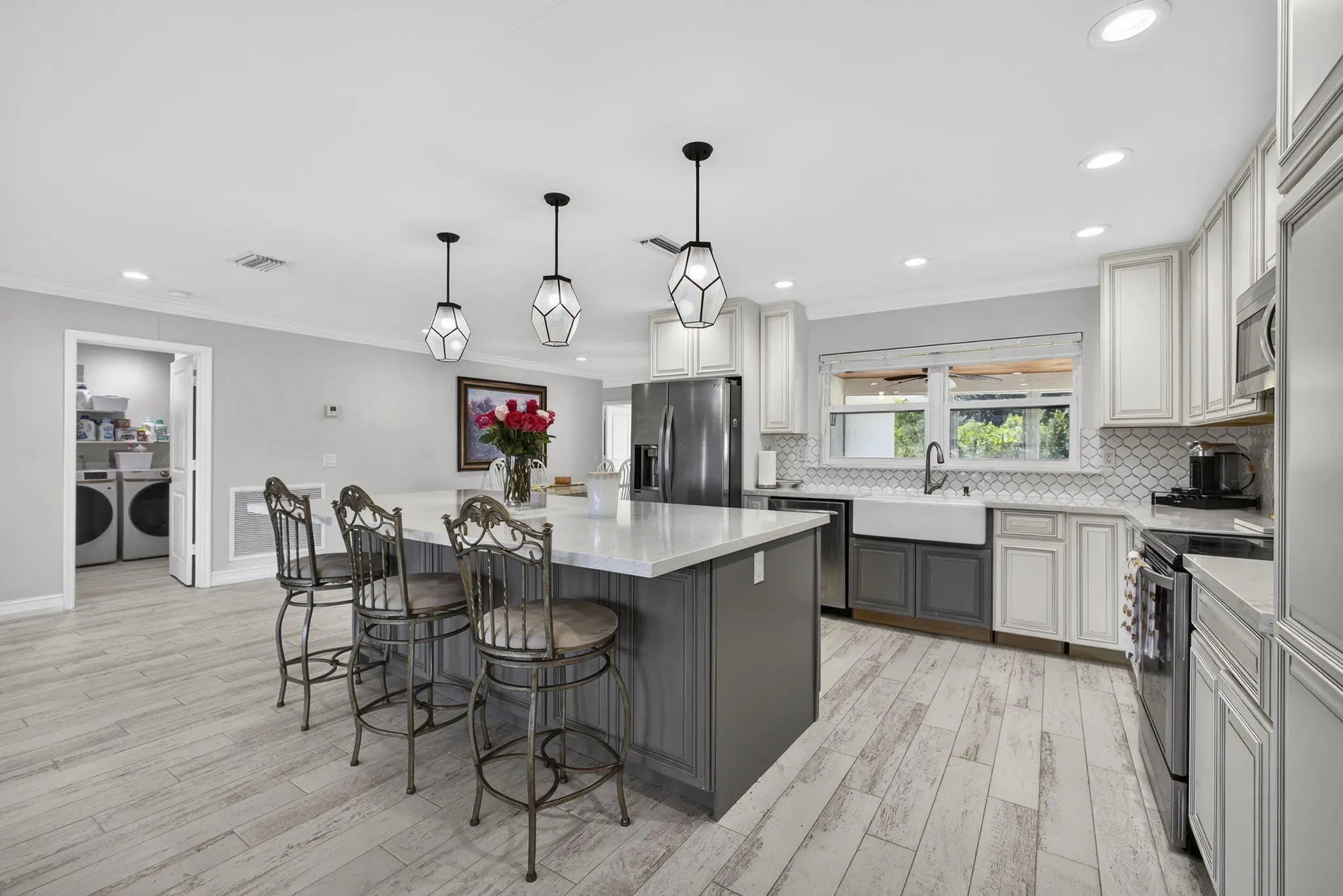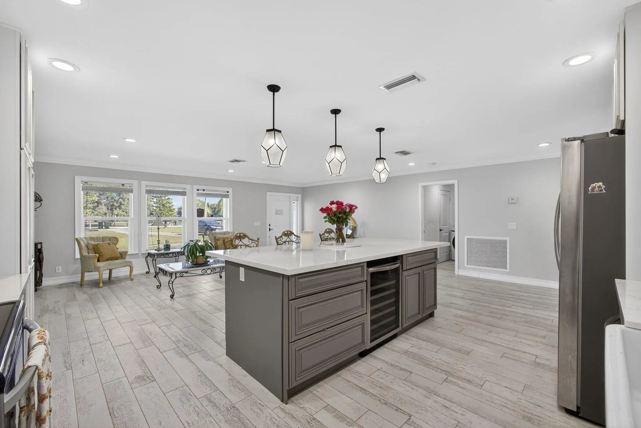 Welcome to Rustic Ranches in Wellington, the polo capital of the United States where luxury living and equestrian charm come together on 5 beautifully cleared acres with City water ready for you to create the horse farm of your dreams. Located minutes from Wellington preserve and only a five-minute golf cart ride to Wellington International. Step inside this fully remodeled, open-concept masterpiece, and you'll instantly feel at home. Offering 4 bedrooms, 4 baths, a game room, and a dedicated office, this 2,748 sq. ft. residence has been reimagined with impeccable attention to detail. Impact windows, recessed lighting, a brand-new kitchen and baths, and stunning plank tile flooring set the tone for modern comfort and style. The heart of the home is the gorgeous chef's kitchen, featuring new cabinetry, quartz countertops, Stainless Steel appliances, a spacious island, a large pantry with pull-outs, a farmhouse sink, and even a wine cooler, perfect for entertaining. The split floor plan provides ideal privacy. The expansive master suite boasts wall-to-wall picture windows that fill the room with natural light, plus a bonus space that can serve as an office or private retreat. This additional area includes its own kitchenette with a sink, countertop, dishwasher, and stove an incredibly unique feature. The luxurious master bath impresses with barn doors, a freestanding soaking tub, and a rainfall shower with a jet system for a true spa experience. One of the guest bedrooms includes its own ensuite bath, and all bedrooms offer generous space and comfort. Adding even more versatility, the garage, while keeping its original exterior door has been transformed into a fully finished game room or efficiency suite, complete with a split AC system, full bath, sink, countertop, and stove. Outside, your five cleared, partially fenced acres await your vision. Whether you imagine paddocks, barns, arenas, or peaceful open space, this property is ready to bring your equestrian dreams to life. All room sizes are approx.