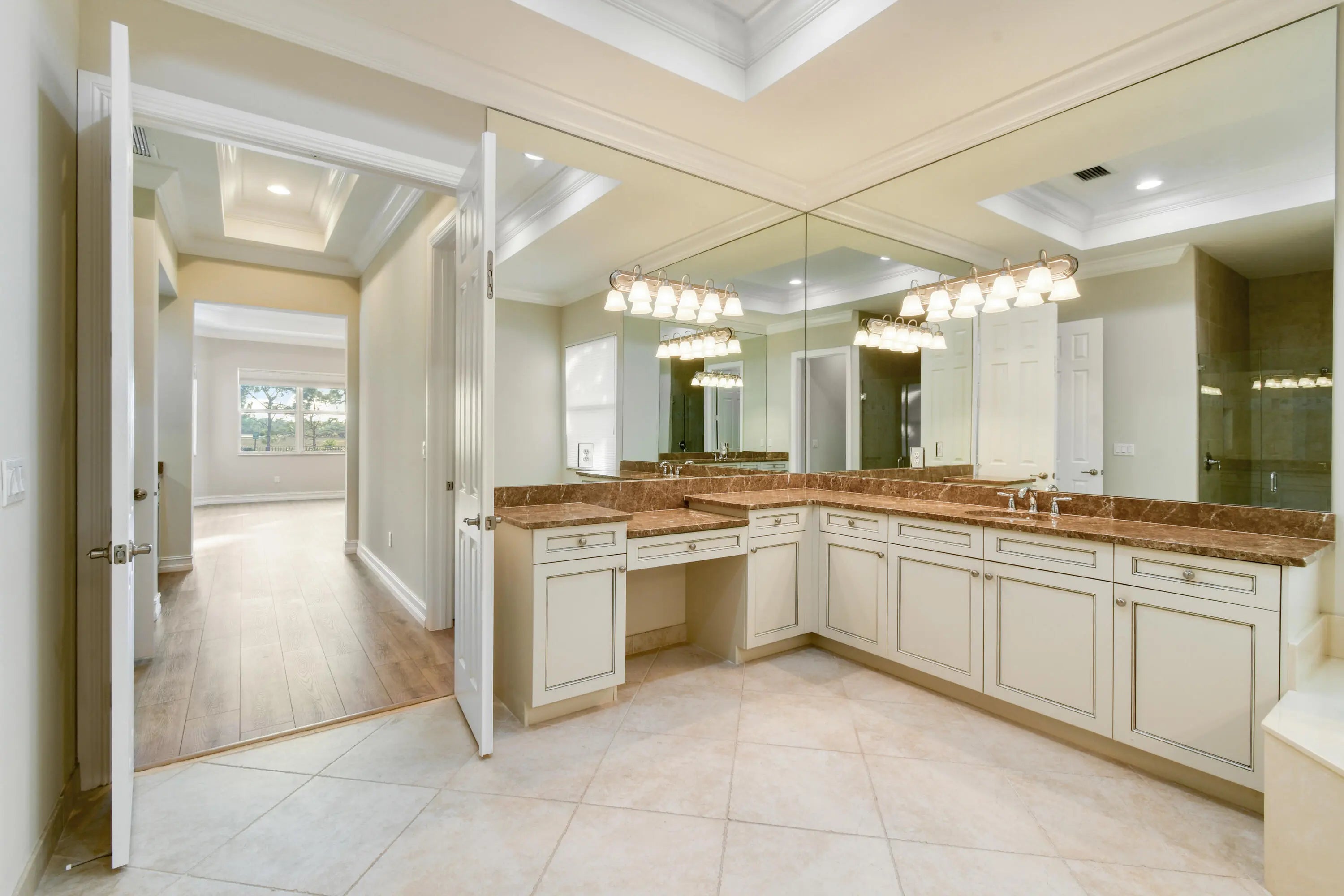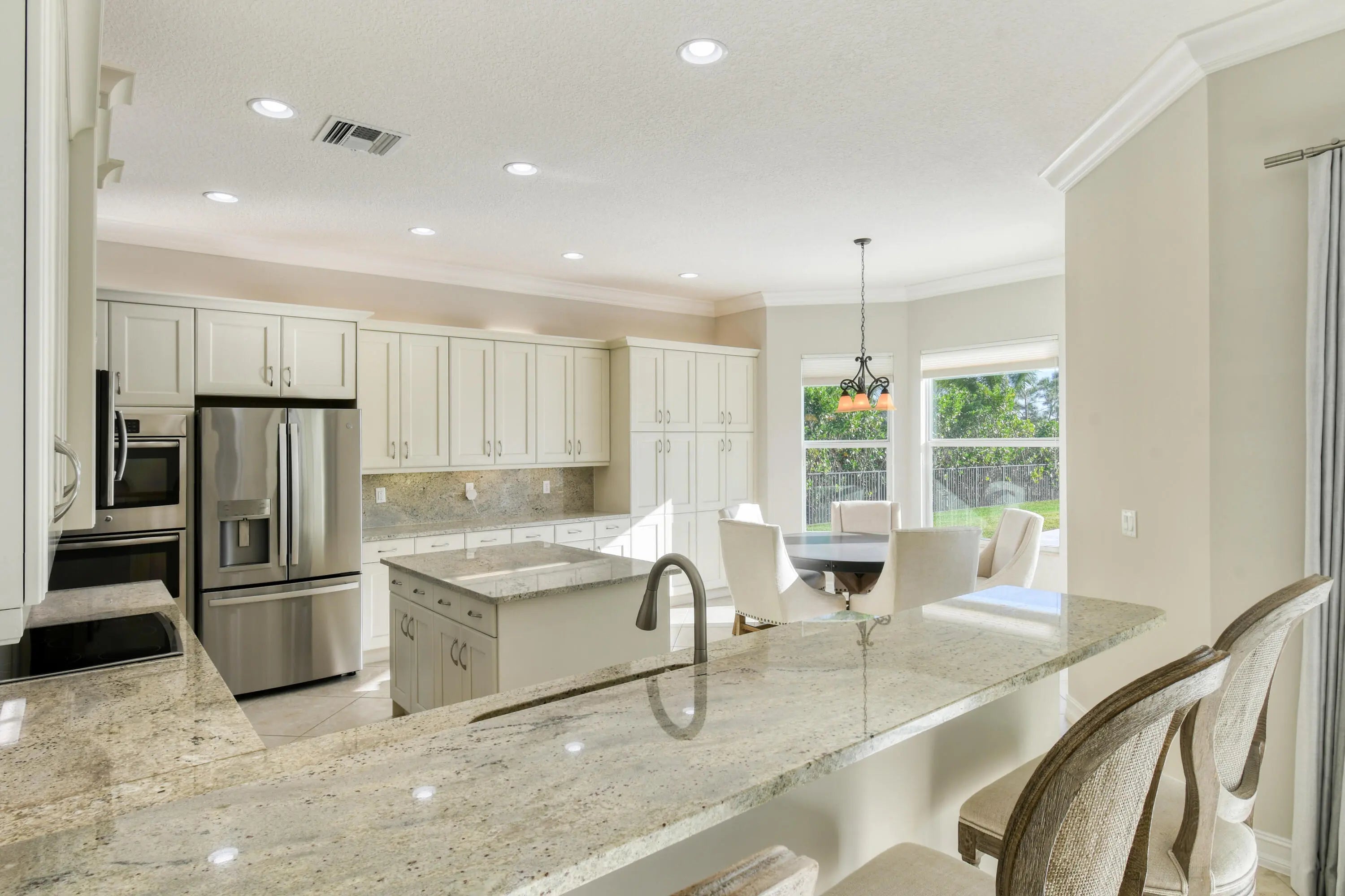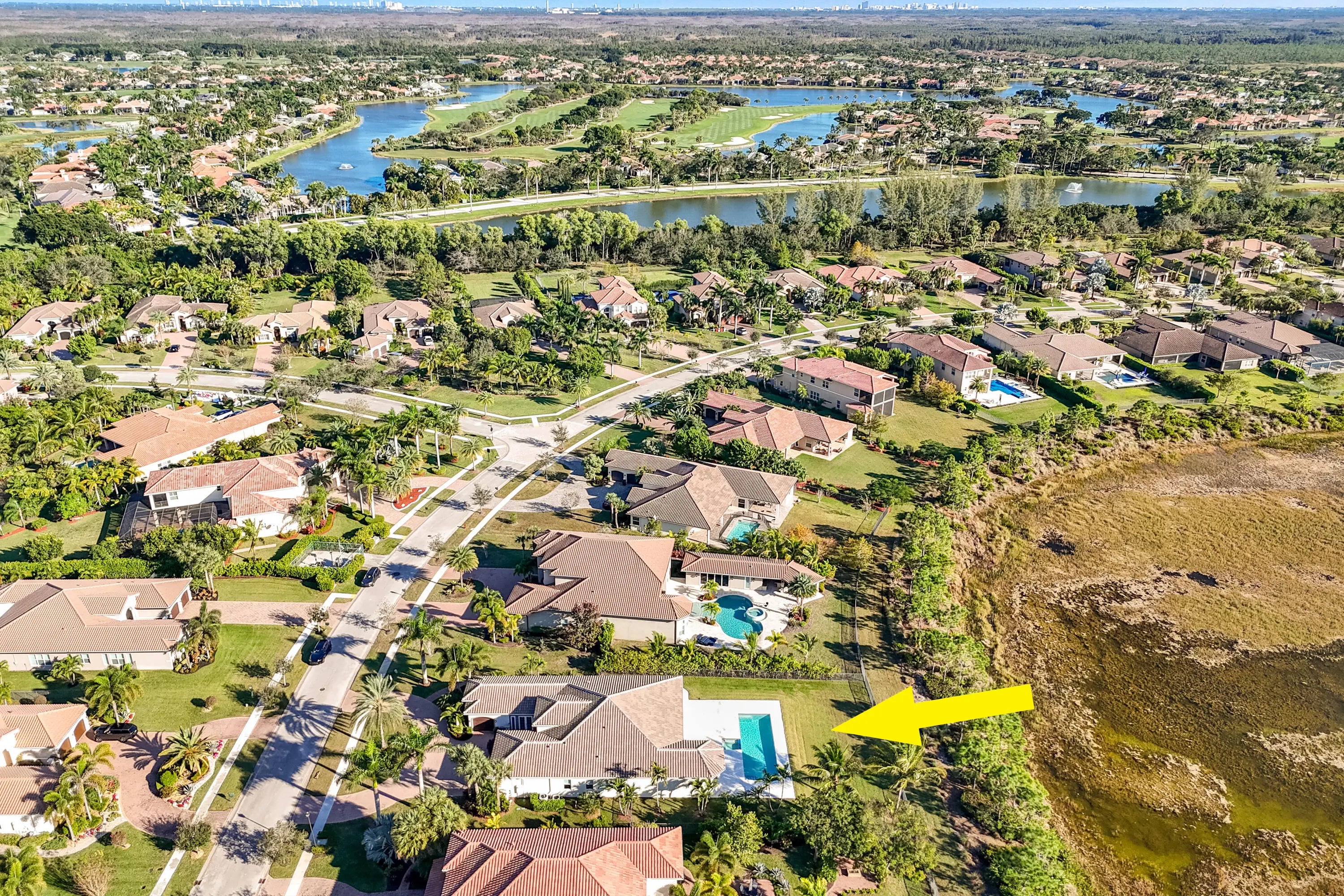 Welcome to your peaceful sanctuary, perfectly positioned to capture panoramic, serene preserve views.Situated on a ½-acre lot, this pristine Bay Hill Estates residence features an open floor plan with 3 bedrooms, each offering en-suite bathrooms and custom walk-in closets with built-in organizers. The spacious eat-in kitchen is appointed with granite countertops and stainless steel appliances, opening seamlessly to the main living areas. A formal dining room provides an elegant setting for gatherings, while the large bonus room—complete with a private entrance—offers versatility as a 4th bedroom, in-law suite, or multigenerational living space. Step outside to your custom oversized 40 ft pool and spa, only two years old, highlighted by Diana Royale marble decking and iAqualink automation for effortless control. Additional upgrades within the last five years include both A/C units, fresh interior and exterior paint, and a 3-car garage with newly installed epoxy flooring. Impact windows with luxurious Hunter Douglas top-down/bottom-up shades provide both safety and style. The home is also equipped with a monitored alarm system and security cameras, all accessible from your phone, iPad, or computer. Located in the luxury gated community of The Preserve at Bay Hill Estates, residents enjoy the option not the obligation to join the golf club. Homeowners may purchase an "Estates Only" membership at PGA National, offering access to the golf course and premier amenities while maintaining full flexibility. All measurements are approximate.