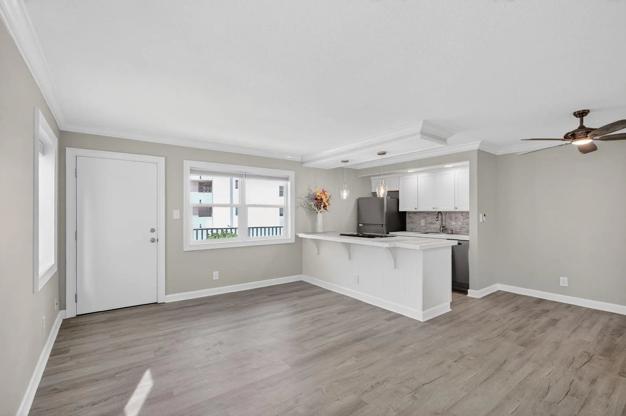 ✨ Singer Island - Renovated 1BR Oasis with Patio & Garden Views ✨ Recently renovated from top to bottom, this beautifully updated 1BR/1BA residence offers tranquil landscaped views from a spacious screened-in patio—perfect for morning coffee or relaxing evenings. The home features all-new impact windows and sliders, an open-concept kitchen with custom cabinetry and upgraded appliances, newer A/C and water heater, wide-plank flooring, and designer tilework throughout. The bathroom has been tastefully updated with Moen fixtures and modern lighting. Washer/dryer hookup in place for your convenience. Enjoy a heated community pool, 1 assigned parking space (#54), and ample guest parking. Ideally located—walk or bike to local restaurants, shops, and island activities. Only 15 minutes to the airport and, most importantly, miles of pristine sandy beach right at your doorstep. Move-in ready coastal living at its best!