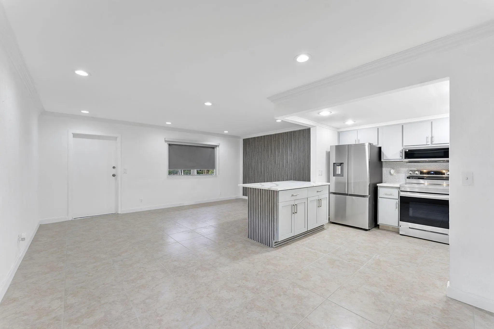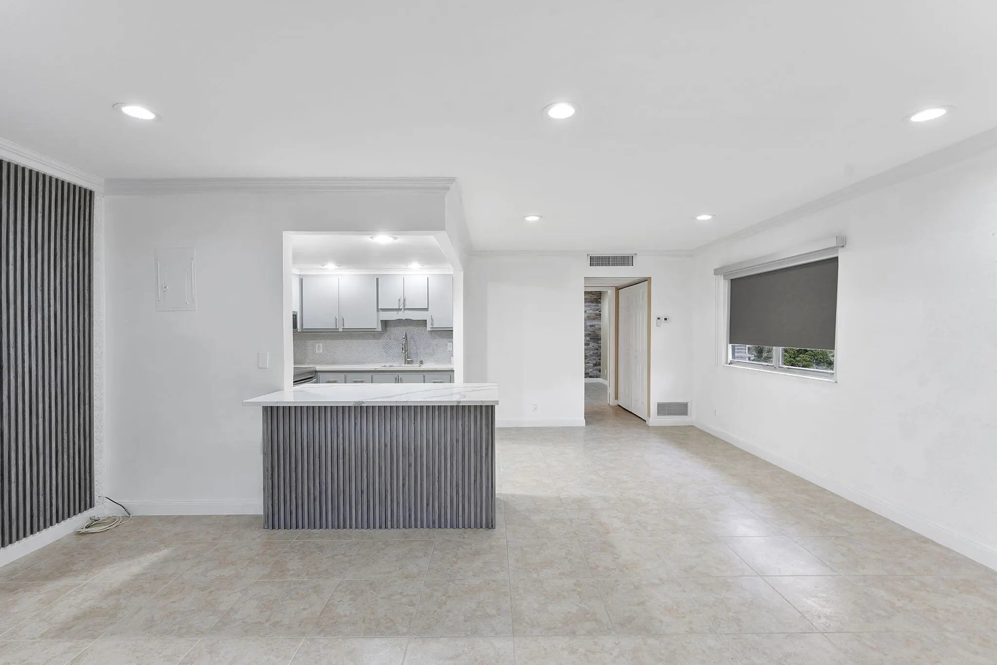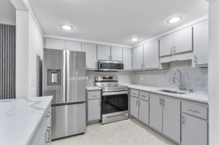 Experience stylish living in this beautifully renovated 1-bedroom, 1.5-bathroom condo situated in a building with a convenient elevator. The open-concept layout shines with sleek tile flooring and recessed lighting, leading to a contemporary kitchen equipped with quartz countertops, stainless steel appliances, and chic cabinetry. Relax in the spacious living area or step out to the private screened balcony, which connects directly to the primary suite featuring a modern en-suite bath. This turn-key home offers ultimate convenience with a guest half-bath, in-unit washer and dryer, custom closet organizers, and extra outdoor storage.