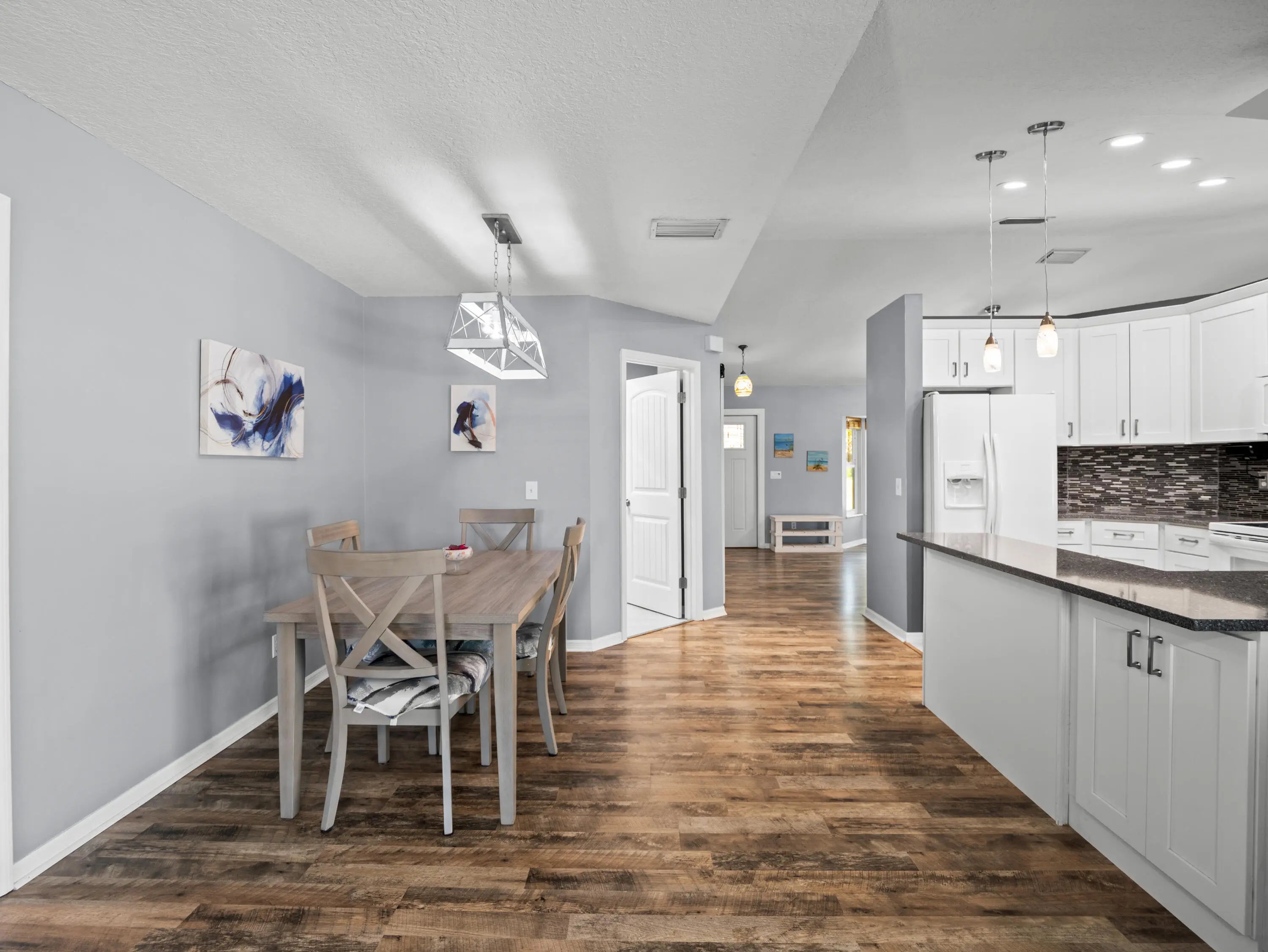Beautiful Pool Home w/ Key West Charm Feel, situated on a Large Fenced Corner Lot! High Value Items include a New Seamless Metal Roof & Hurricane Impact Windows for peace of mind! Enjoy an Open Backyard w/ Sparkling Pool, Patio, Covered Porch & Tropical Rock Landscaping. Ample parking for boats or RV w/ 2-car Garage & Side Driveway. Interior Features LVP Wood flooring, Vaulted ceilings, White kitchen w/ Granite bar, Split floor plan, w/ 2 Guest Bedrooms sharing an Updated Bath, & Spacious Primary Suite w/ Double Closets, Sinks, Tile Shower & Private outdoor access. No HOA and close to parks!