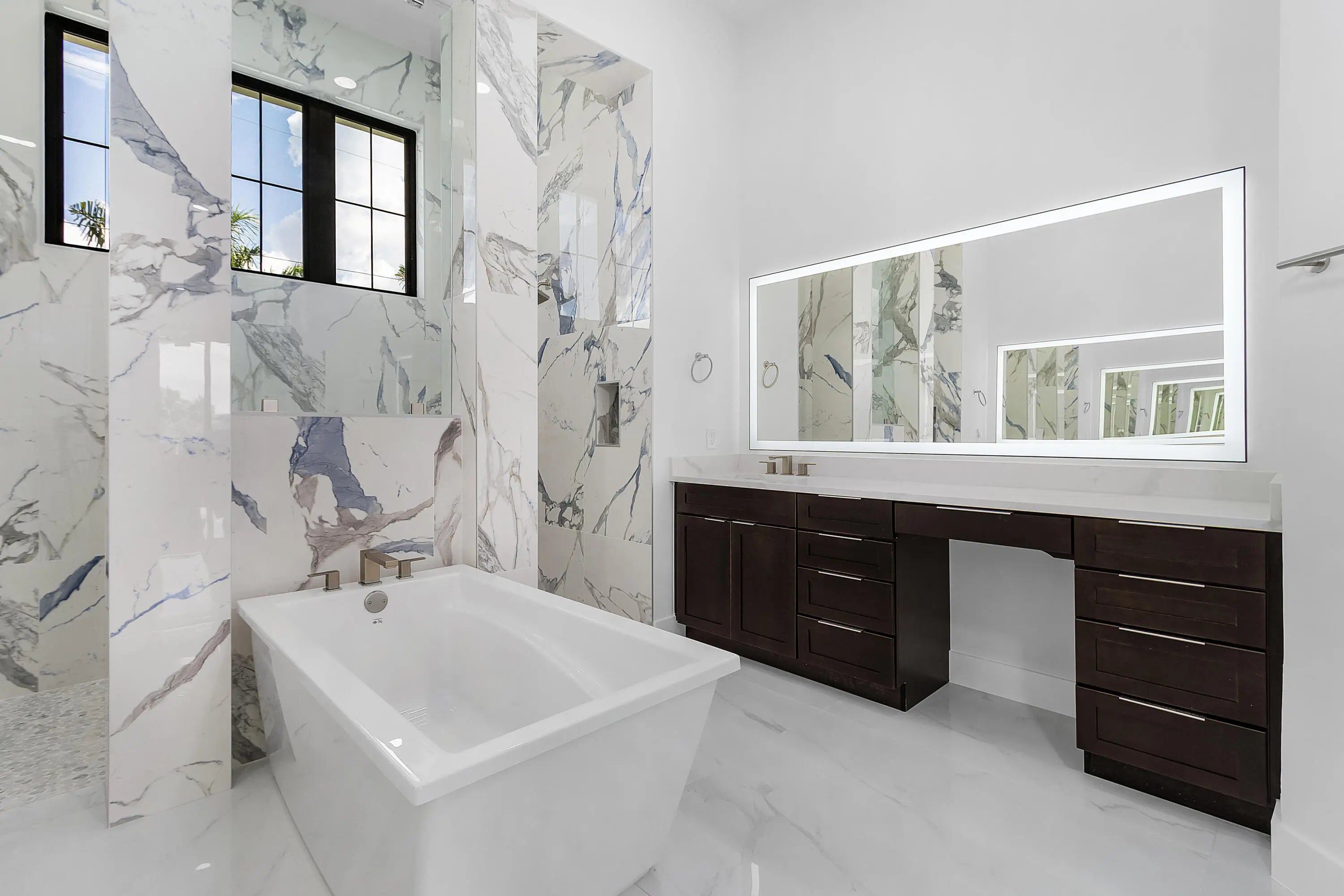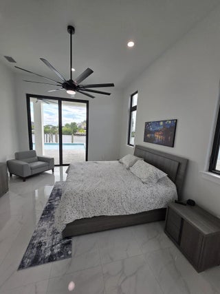 NEW CONSTRUCTION one-of-a-kind custom-designed home, not a builder's model. Featuring 3 bedrooms, 3 bathrooms, and a versatile den or office that can be used as a permitted fourth bedroom. The home overlooks a 260-foot-wide south-facing canal with no bridges to the Gulf. Dock with 2 slips. Inside, the home offers 2,653 sf of A/C space with a total of 4165sf under roof. 14ft. soaring ceilings and 10-foot impact sliders that lead to a nearly 800 square foot covered lanai. The outdoor space includes a summer kitchen, bar, and a large fully automated saltwater pool with custom spa and sun shelf, all controllable from your phone. The primary suite features a spa-inspired bath with dual vanities, seven-foot LED backlit mirrors, a soaking tub, and a double-entry his and her shower. Throughout