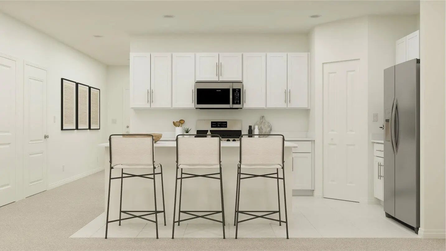This new two-level home boasts a modern and low-maintenance layout. A versatile flex space can be found off the foyer, leading to an open-concept floorplan perfect for entertaining and everyday multi-tasking. The owner's suite is tucked away into a private back corner. Upstairs, four bedrooms surround a spacious loft. Prices, dimensions and features may vary and are subject to change. Photos are for illustrative purposes only.
