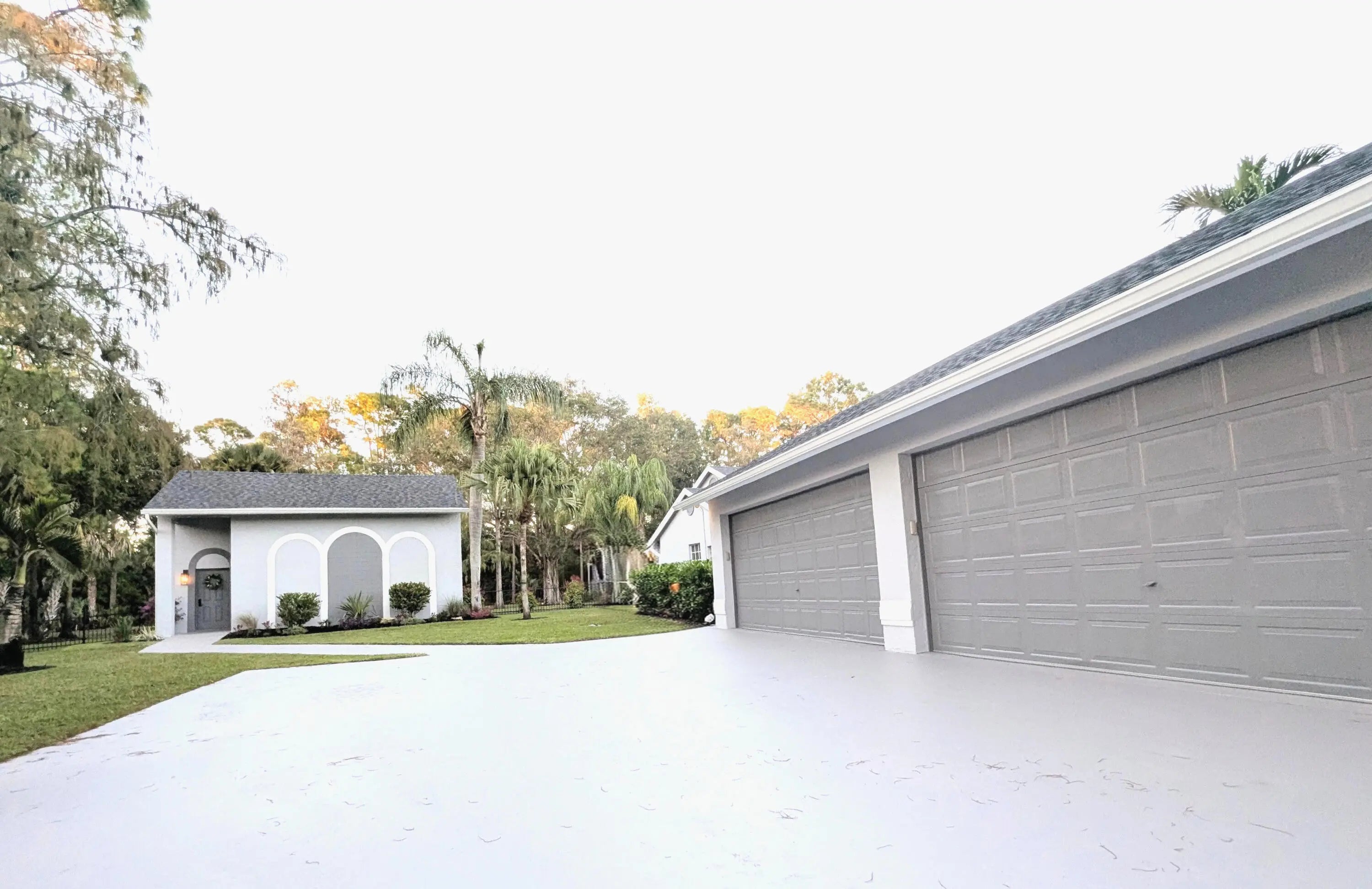 Enjoy privacy, peace and serenity in a park-like setting with this 3.33 acre Paddock Park gem which is one of the largest lots in this highly desirable community, with no HOA. The one story main house features 5 bedrooms and 3.5 baths along with an attached, oversized 4 car garage with AC, separate access and private parking from the main house, along with a detached 1/1 guest house. There is plenty of room to add a tennis, basketball or pickleball court to the backyard or a variety of other projects enabled by the sprawling lot. In terms of land and location, it does not get much better than this. A+ Wellington schools, 20 minutes to PBIA and access to everything Palm Beach has to offer. Your personal finishing touches will make this the compound you have dreamed about! The front porch stairs lead to a double-door entrance with interior stairs that flow into several open concept spaces. There is an oversized circular driveway that will accommodate many vehicles along with a separate (long and wide separate driveway) that accesses the garages for boat, trailer or toy storage. The large, screened rear porch runs the entire length of the open floor plan which overlooks the 2 acre fenced back yard, with mature trees and sliding glass doors opening to the patio. The home offers a split plan with large rooms and lots of open space.The master suite and new master bathroom are across the hall from the coziest bedroom, nursery or office with an ample closet and pocket door access to the half bathroom. The laundry room is a buffer in-between the two areas and has an exterior door and covered walkway to the garage, or if there is a guest that would rather not traverse the entry stairs, this is the ideal entry point as it is also parallel to the driveway. The other side of the house features two bedrooms connected by a jack and jill bathroom with a spa tub/shower combination and dual vanities.The final bedroom has its own private bathroom with a cabana door to the patio/pool and a walk-in shower. The main house has a new roof (2024), new screening (2024), painted inside and out (2025) all remodeled bathrooms, new tile throughout, baseboards, doors and hardware in the main house (2025). There is also a whole house Aquasoft R/O system with an 800 gallon water tank, 22W Generac propane generator that operates an efficient portion of the main house if there is electricity interruption. Two different kitchens were created for the space but ultimately, it could be a very large kitchen or a smaller, but functional kitchen. At the end, it was decided that the kitchen space would be left as a blank canvas for the new owner to do what was in their best interests and for their needs and taste. The 2+ acre backyard is fully fenced with a separate dog run, and separate access from the main house. The front of the property could easily be fenced/gated if you require more privacy. The front of the house does not face another home directly and the property is lushly landscaped with tall hedges or large palms for additional privacy on both sides. The 900 sq ft. guest house has been used as a rental during season, a home theater, as accommodations for live-in help, and as a guest space. The bedroom is on the second floor and the guest house is partially furnished. The patio and walkways in the backyard feature pavers with a walkway from the main house to the guest house which has a covered, open front porch and a pergola for shade on the back porch. The entire property is lushly landscaped with mature and exotic trees with a 16 zone rainbird sprinkler system.There is approx ½+ acre that is still uncleared land in the rear of the property that further insulates the property. The front of the property can be easily be fenced/gated if you require more privacy. The front of the house does not face another home directly and the property has tall hedges or large palms for additional privacy on both sides. The guest house has been used as a rental during season, a home theater, as accommodations for live-in help, and as a guest space. The bedroom is on the second floor and the guest house is furnished. The patio and walkways in the backyard feature pavers with a walkway from the main house to the guest house. There is approx ½+ acre that is still uncleared land in the rear of the property that further insulates the property. Ideal location, A rated schools with privacy and room to roam. All measurements are approximate; please perform your own due diligence. Seller is an owner/agent.