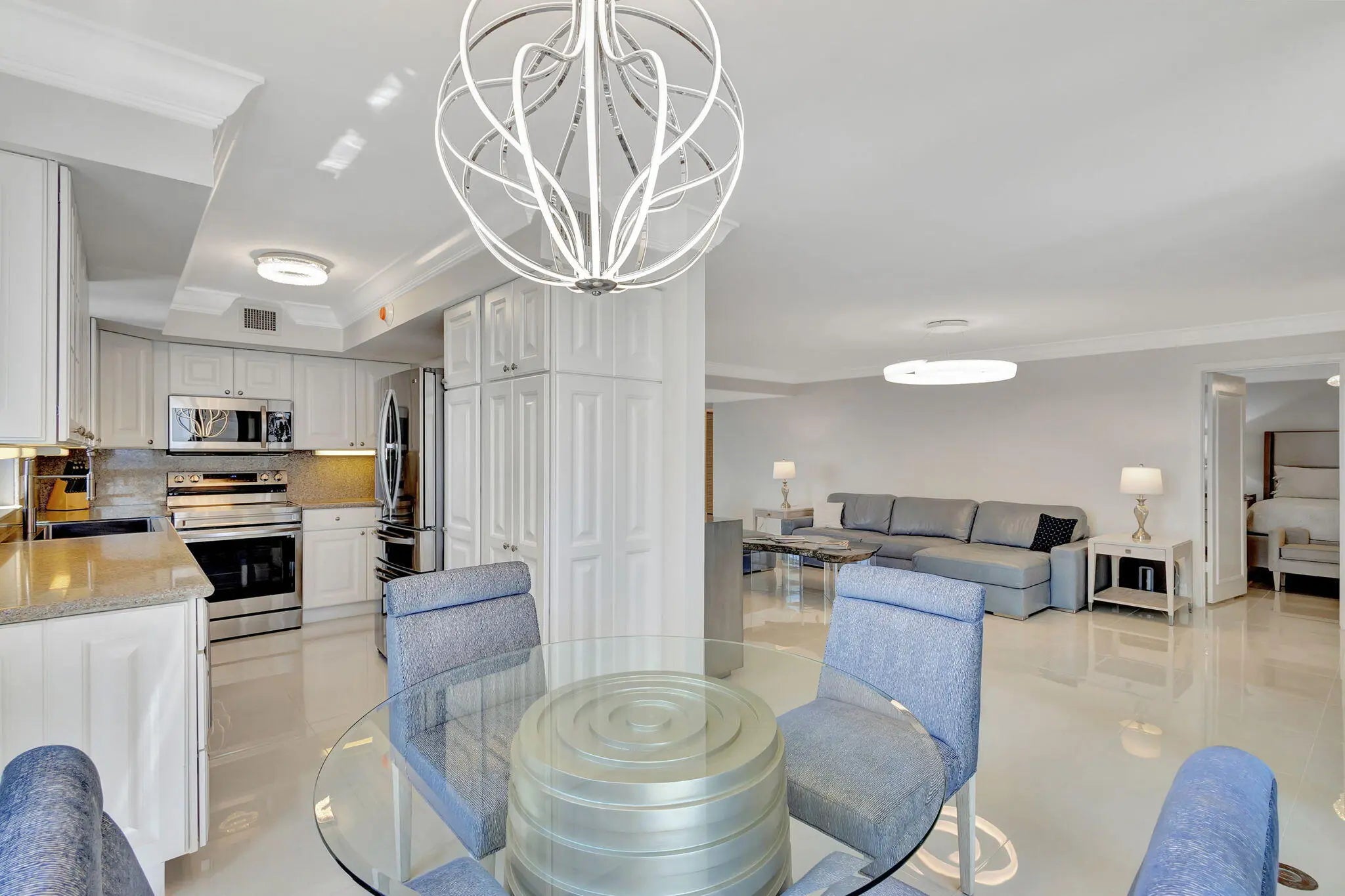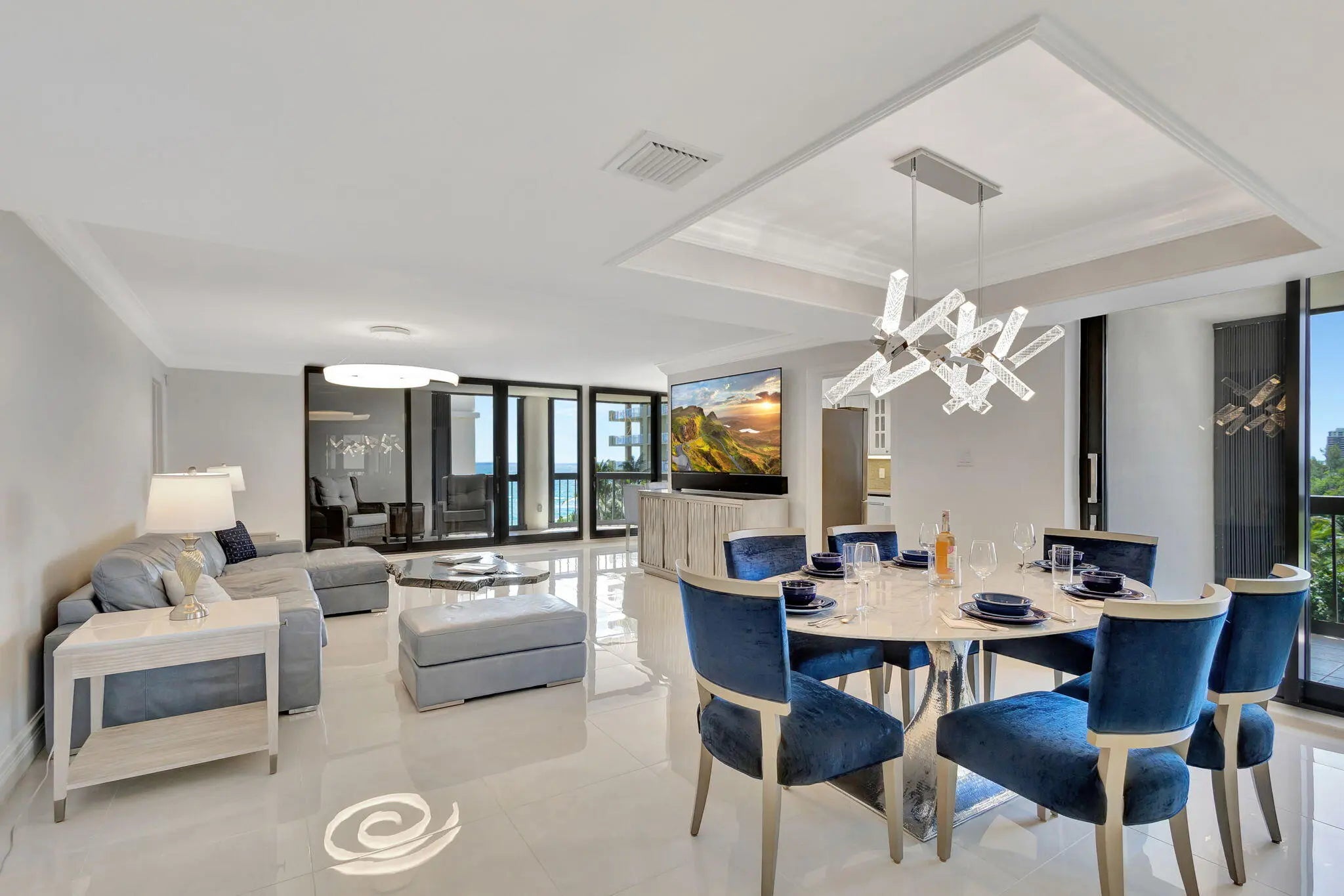 Experience elevated coastal living in this stunning 2-bedroom, 2-bath residence located in the highly desirable Eastpointe community on Singer Island. This completely remodeled coastal gem showcases sweeping Intracoastal Waterway views along with breathtaking ocean views, creating a serene backdrop from nearly every room. Completely remodeled with high-end designer finishes throughout, the residence features an open, light-filled layout that blends modern elegance with relaxed coastal style. The gourmet kitchen flows seamlessly into the living and dining areas, ideal for both everyday living and entertaining. Floor-to-ceiling impact glass enhances natural light while providing peace of mind and incredible views. Rare opportunity to reside in Singer Island! Both bedrooms are generously sized, including a tranquil primary suite with beautifully remodeled bathrooms and stunning water views. Thoughtful upgrades, refined materials, and impeccable attention to detail make this home truly turnkey. Eastpointe at Singer Island offers resort-style amenities including private beach access, tennis courts, fitness center, clubhouse, and 24-hour manned gate, all just minutes from world-class dining, shopping, golf, and Palm Beach International Airport. Singer Island offers a rare blend of luxury coastal living and natural beauty, perfectly positioned between the Atlantic Ocean and the Intracoastal Waterway. Known for its pristine, uncrowded beaches and breathtaking water views, the island provides an ideal setting for boating, fishing, and an active waterfront lifestyle with quick access to the Palm Beach Inlet. Home to upscale oceanfront and Intracoastal residences with resort-style amenities, Singer Island delivers privacy and tranquility while remaining just minutes from Palm Beach Gardens, Jupiter, Downtown West Palm Beach, world-class dining, shopping, golf, and Palm Beach International Airport. A truly exceptional destination for year-round or seasonal living.
