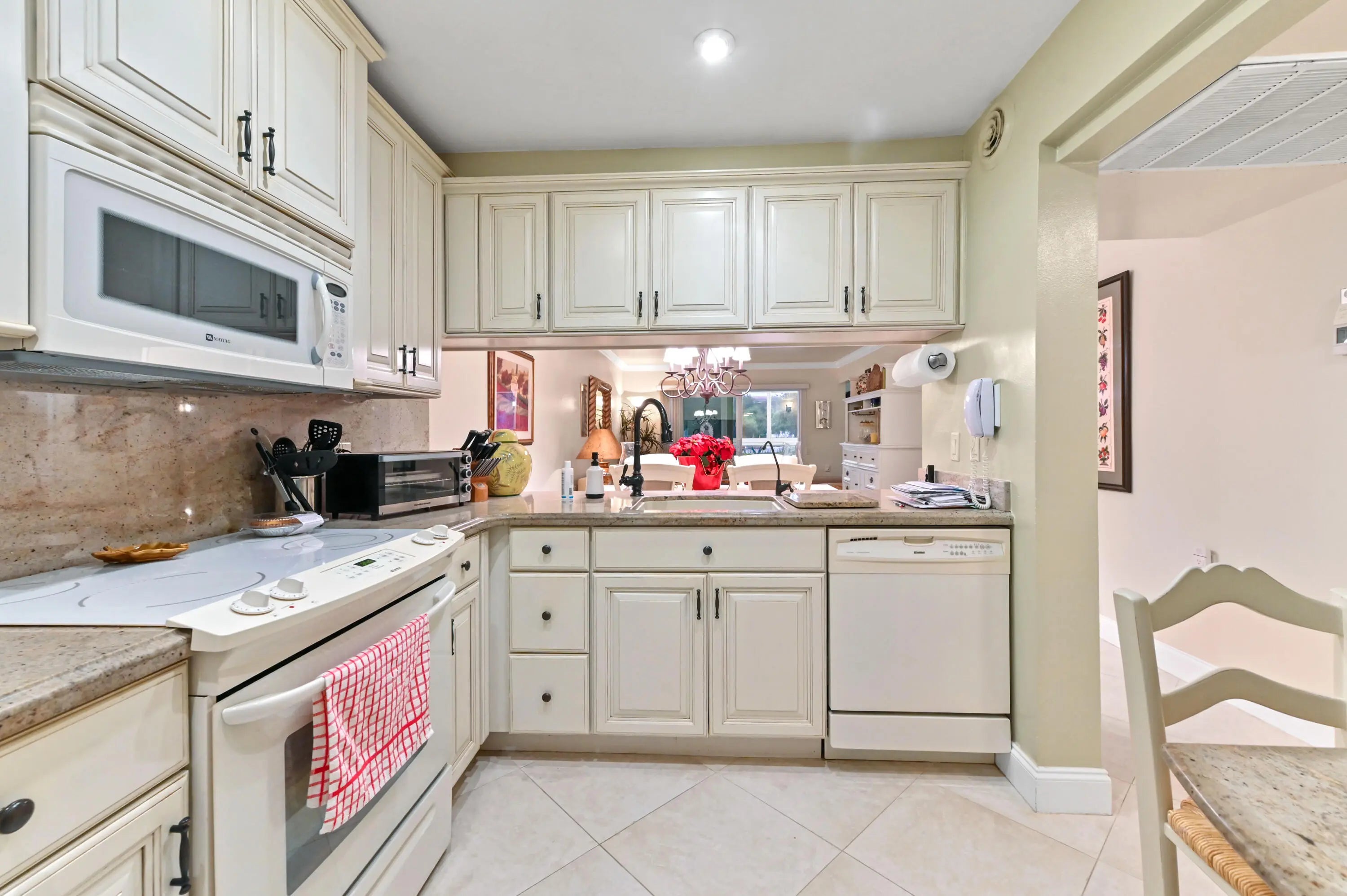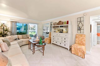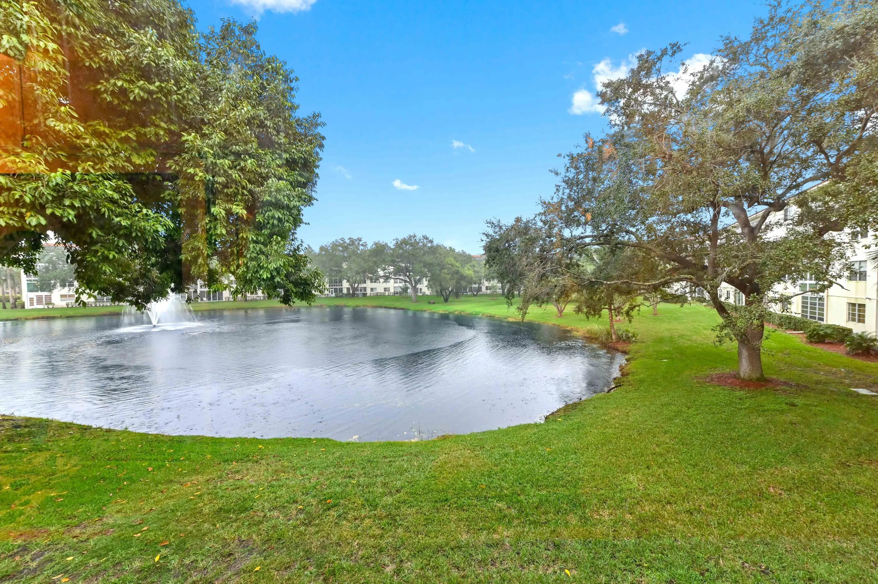 Experience spacious living in this beautiful 55+ condo, where a thoughtful layout offers far more than the standard condo experience. Beyond the welcoming foyer and pristine diagonal tile flooring, you'll discover a stunning kitchen featuring antique-white raised panel cabinetry, granite countertops, and a pass-through breakfast bar that connects effortlessly to the formal dining area. Unique to this unit is the abundance of living space; in addition to the expansive main living room with its elegant crown molding, there is a separate, cozy family room or den—perfect for a media center or home office—bathed in natural light from large windows. Retreat to the comfortable private quarters, including a serene primary suite that features ample closet space behind classic louvered doors and an ensuite bathroom. Step through the floor-to-ceiling sliding glass doors in the living room to your private screened balcony, where you can unwind while overlooking tranquil waterfront views and lush green grounds. Situated in a well-maintained building with easy access to parking and just moments from Coconut Creek's best shopping and dining, this move-in-ready home offers the perfect blend of luxury, comfort, and convenience.