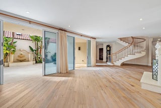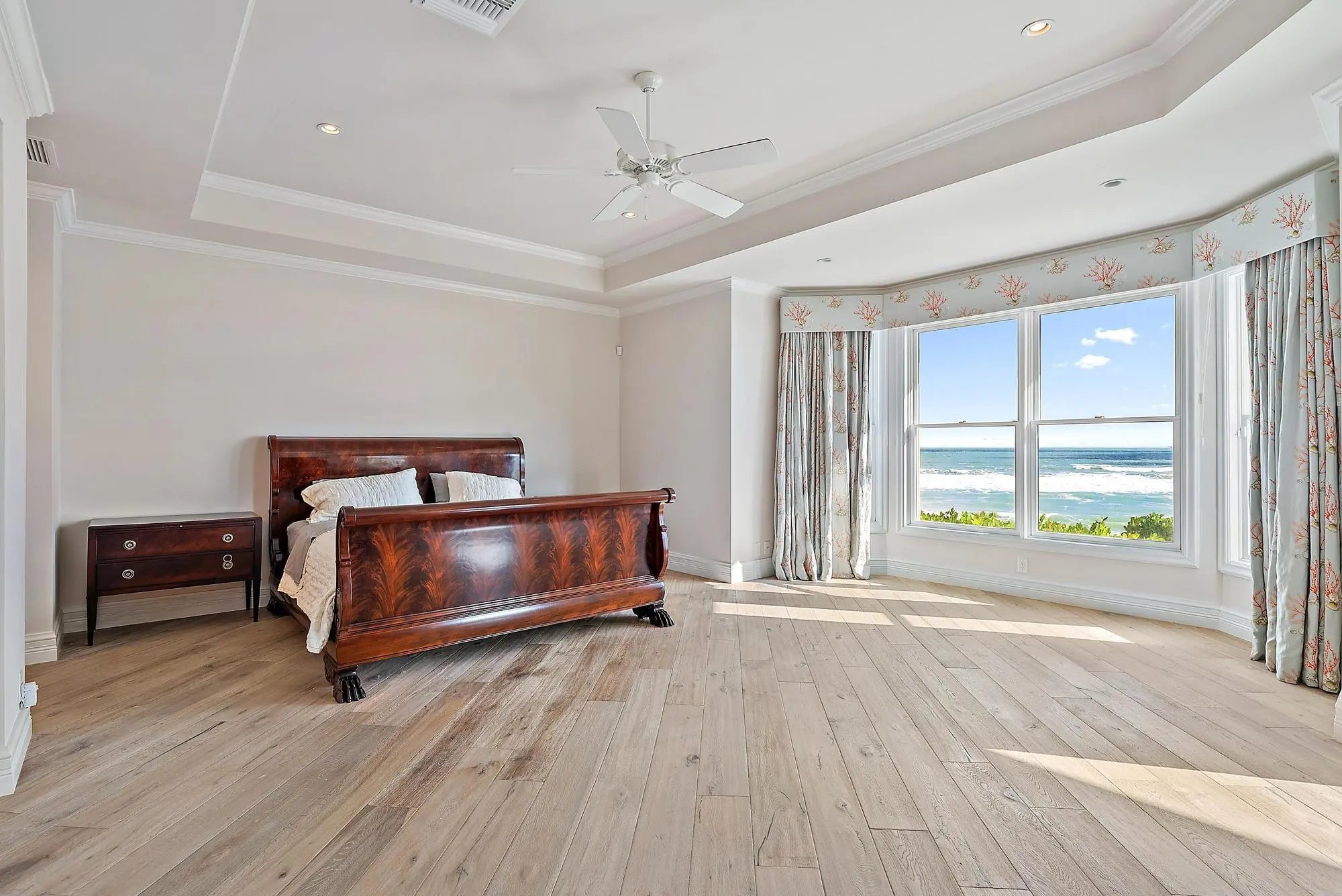 Paradise is found at Seven Hundred Ocean, an exclusive gated oceanfront community located along one of the most desirable luxury stretches of Ocean Drive in Juno Beach. Set on a rare 0.45-acre oceanfront lot, this two-story Mediterranean estate is directly on the sand, offering breathtaking sunrises, sweeping ocean views, and refreshing sea breezes. The residence offers approximately 6,152 sq. ft. under air with 7,945 sq. ft. total building area, featuring 5 bedrooms, an office/library, 6 full baths and 1 half bath, a butler's pantry, and a private elevator. Grand interiors include a formal living room with gas fireplace and a spacious family room overlooking the Atlantic Ocean, creating seamless indoor-outdoor living. The well-appointed kitchen is designed for both everyday living and entertaining, featuring natural stone countertops and backsplash, a Sub-Zero refrigerator, Miele dishwasher, Thermador gas range, Butler's Pantry, breakfast bar seating, and a breakfast area overlooking the Atlantic Ocean and pool deck. Ideal for entertaining, the property offers an array of indoor and outdoor living spaces, including a travertine courtyard with fountain, expansive travertine backyard deck, resort-style pool area, and a tiki hut with summer kitchen. A private gated beach entrance provides direct access to the shoreline, just steps from the home. The second level includes the ocean-view primary suite, three additional guest bedrooms, a laundry room, and a large storage or flexible-use room. Additional highlights include a two-car garage, a roof replaced in 2022 and freshly painted interior. Conveniently located near Pelican Lake, Jupiter Pier, Whole Foods, The Gardens Mall and major airports, this exceptional residence presents a rare opportunity to own a premier oceanfront home in one of Juno Beach's most desirable locations.