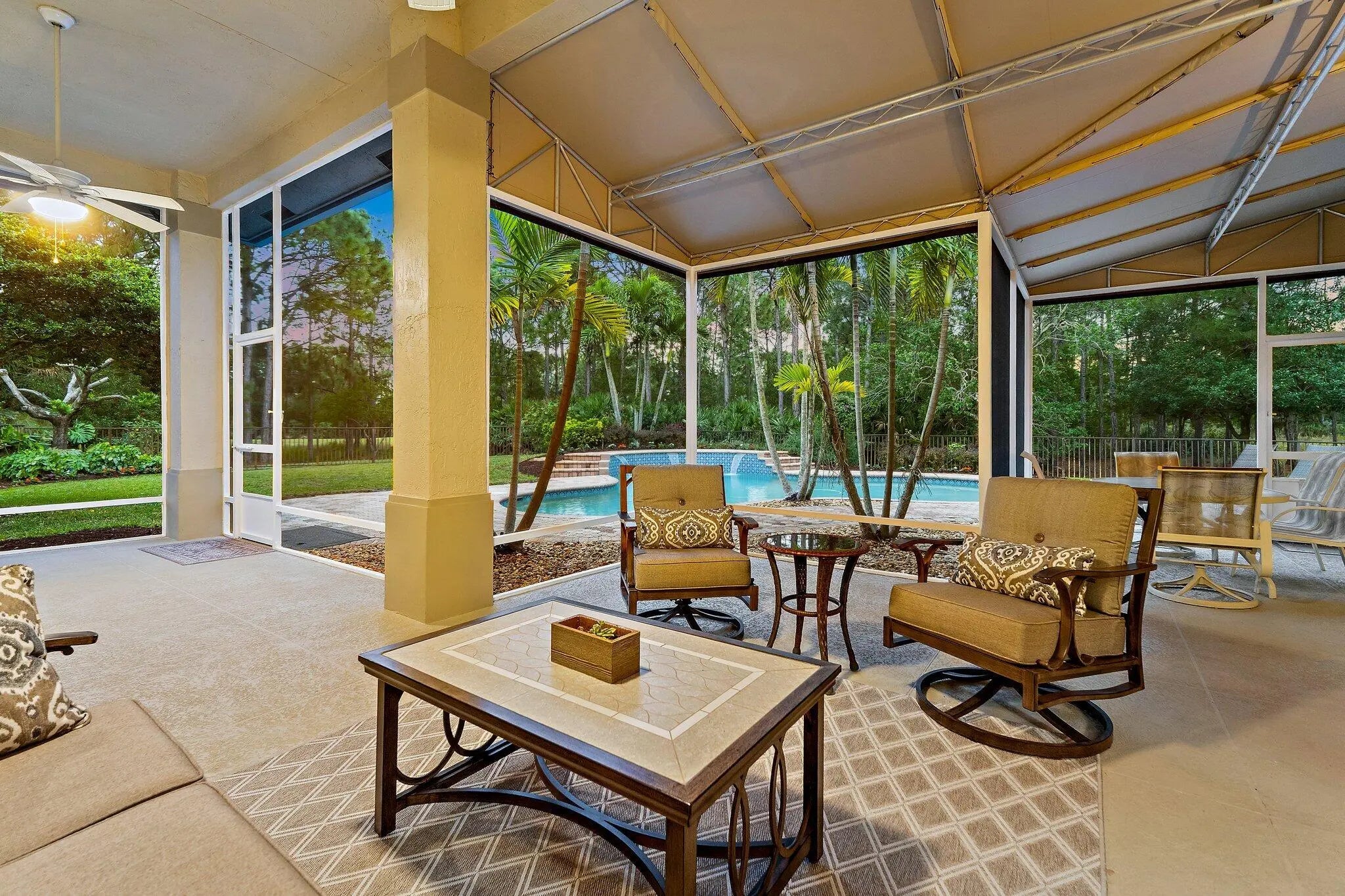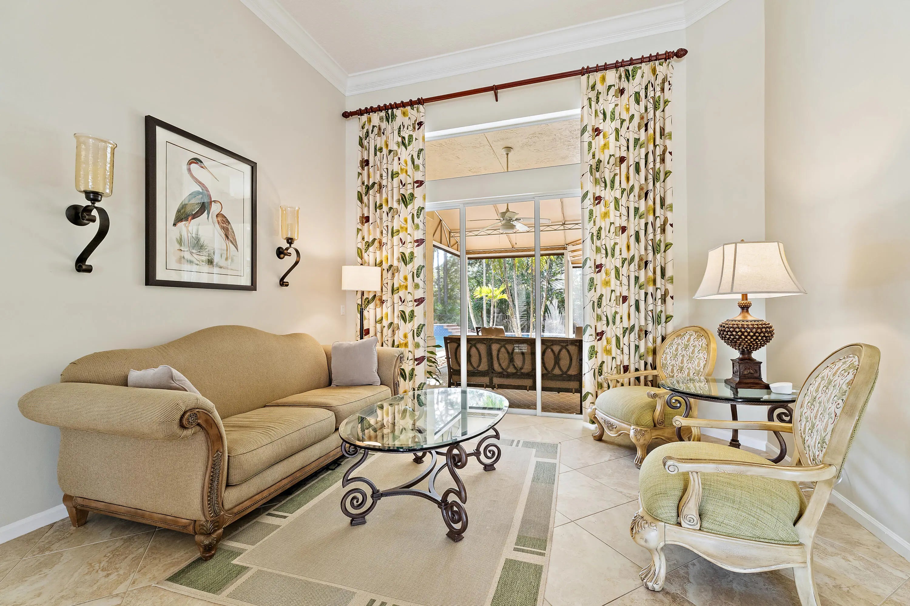 Prepare to be impressed! This spacious 5-bedroom, 3-bath, 3-car garage pool home is located on the largest lot in The Sanctuary at Hammock Creek, tucked away at the end of a cul-de-sac for a truly private setting. The homeowner, a professional landscape architect, thoughtfully designed the outdoor living space for enjoyment, featuring an oversized freeform heated pool surrounded by lush tropical landscaping with serene views of the preserve and golf course. The home seamlessly blends indoor and outdoor living with numerous custom features throughout. Pride of ownership is evident in the meticulous maintenance and thoughtful upgrades, including a new concrete tile roof and accordion shutters (2020), kitchen remodel (2024), and fresh interior paint (2025). New Impact Garage Doors (2026).