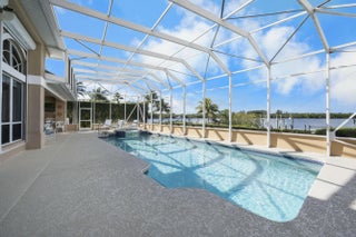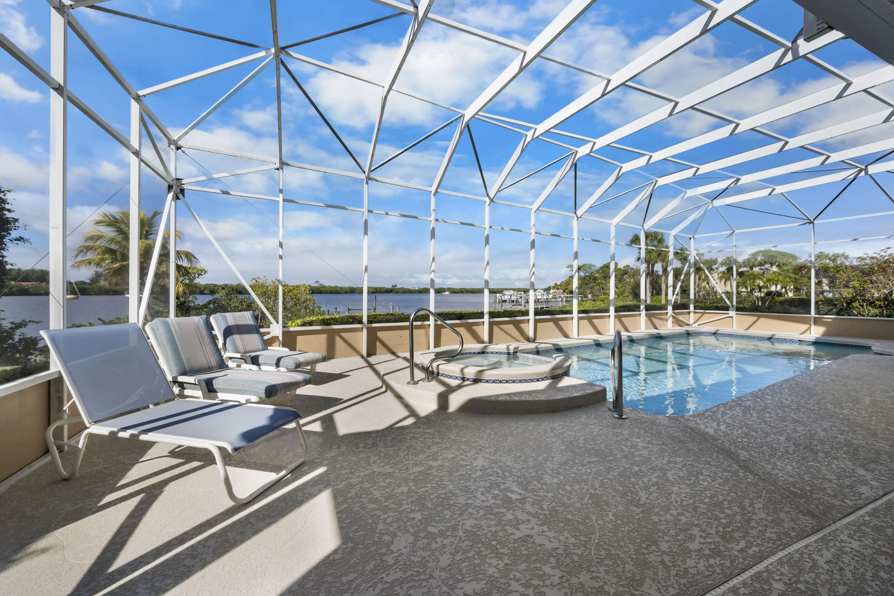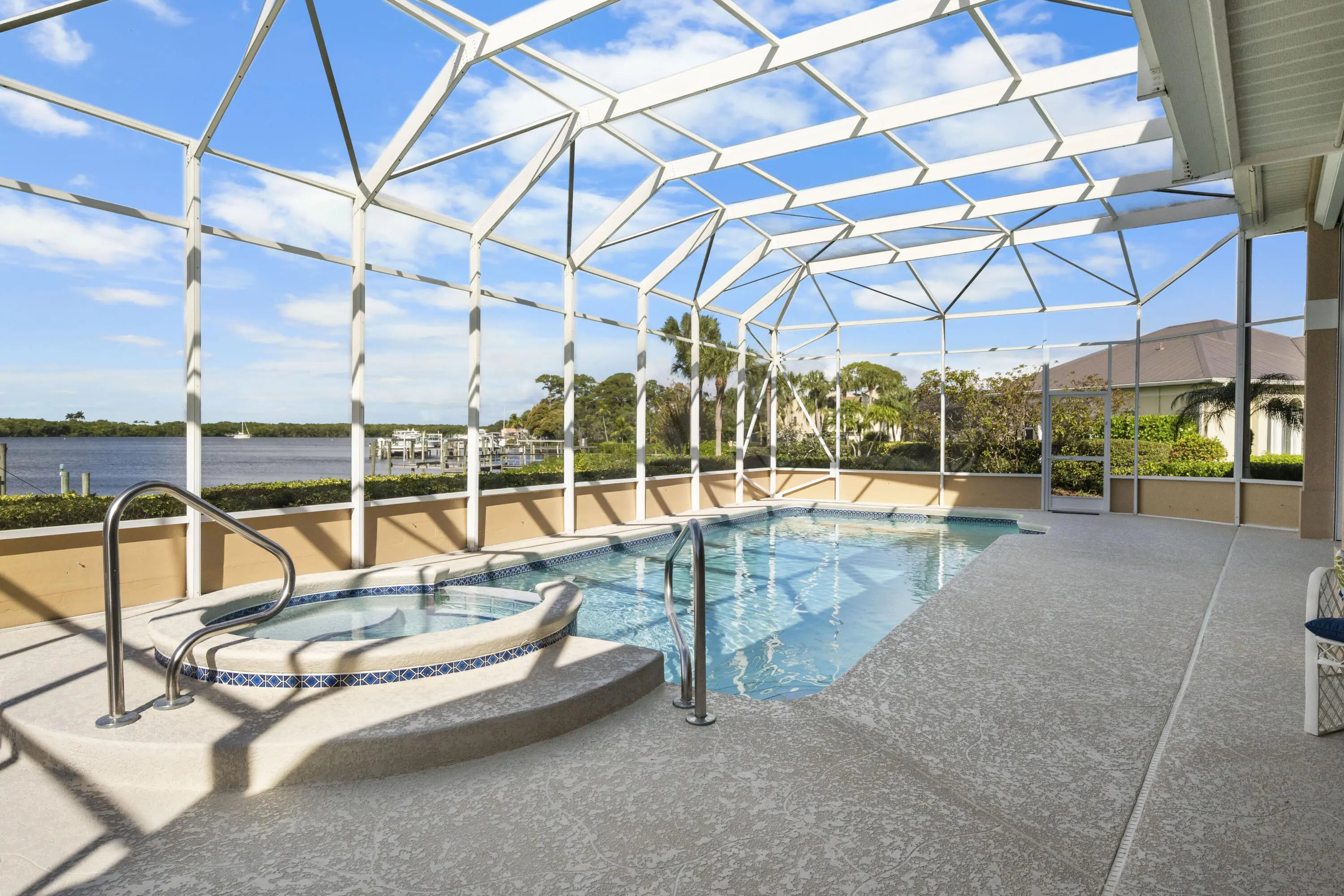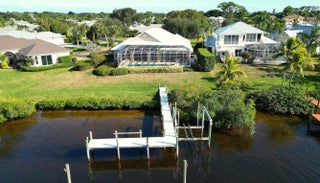 Experience premier waterfront living in Sandpiper Bay's exclusive River Vista community. This elegant 3-bed/3-bath home with BR #4/den offers 2,616 sq ft of refined space and sweeping water views from nearly every room. Enjoy your private dock with a 12k lb boat lift plus additional dockage for larger vessels. Located on Kitching Cove along the North Fork of the St. Lucie River, this property provides direct access to the Atlantic and Gulf with no fixed bridges. Relax by the pool and spa while watching Dolphins, Osprey, & Manatee in their nature habitat! Enjoy the majesty of breath-taking sunsets year-round. Low HOA dues and close to the newly redesigned Voco Sandpiper All-Inclusive Resort. All this and just minutes to downtown Stuart & Jensen Beach! Homes like this rarely become avail!
