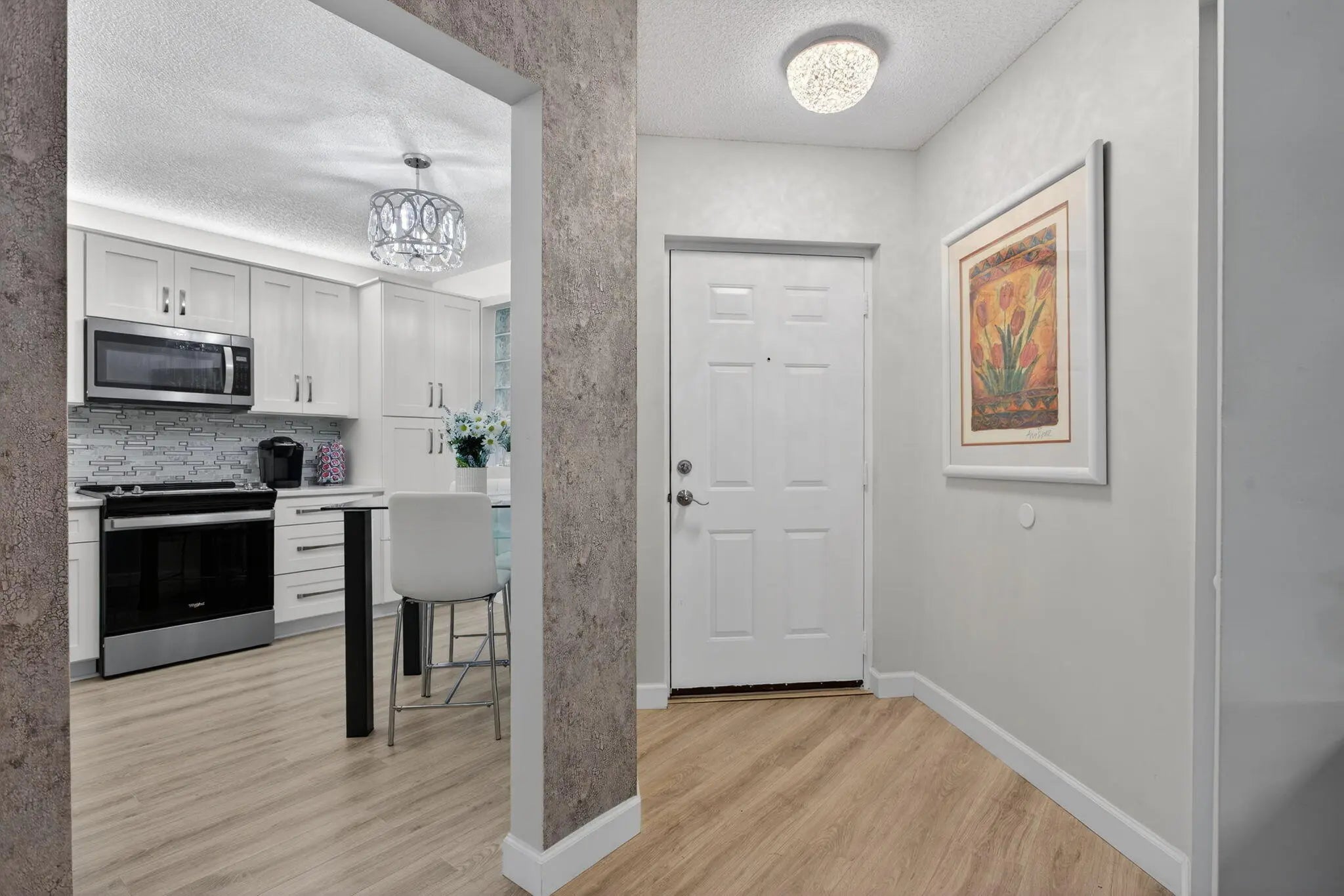 Magnificently renovated 3 bedroom, 2 full bath, 2nd floor condo in sought after Bay Port community. This Atrium home features light and bright open floor plan, Quartz eat in kitchen w/white shaker cabinets, crystal lighting for that added elegance. Appliances only 2 yrs. old. Lg. primary suite with custom wall to wall closet plus a walk in closet. French doors to den/office/bedroom. Full glass wall w/sliding doors out to Large screened in balcony to enjoy early morning coffee. Well maintained building with elevator. HOA includes all listed plus INTERNET. Clubhouse features pool, fitness, also access to Township which offers tennis, pickle ball, olympic size pool. Prime location near Promenade shops, restaurants and more. All ages welcomed. Come make this beautiful space your home!
