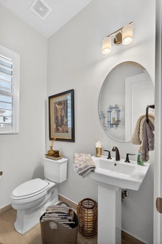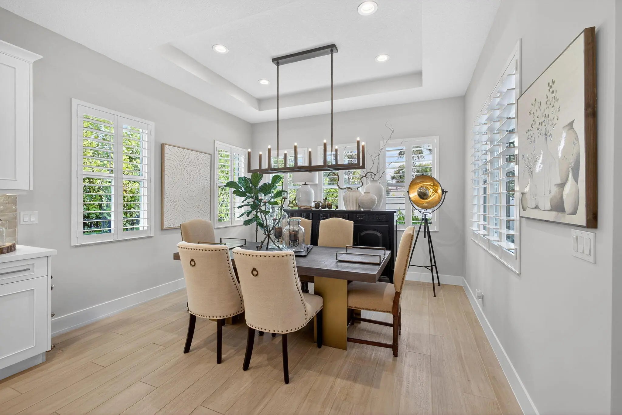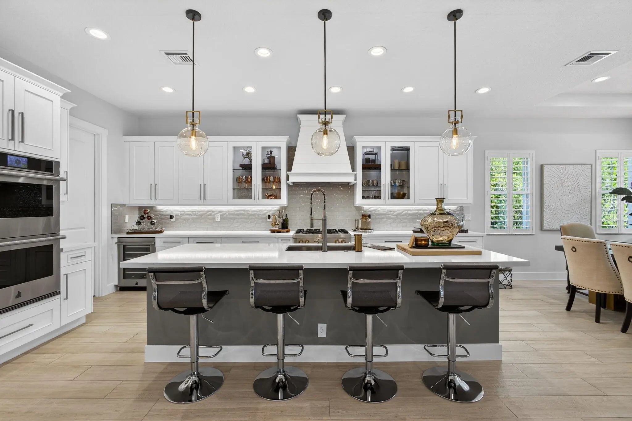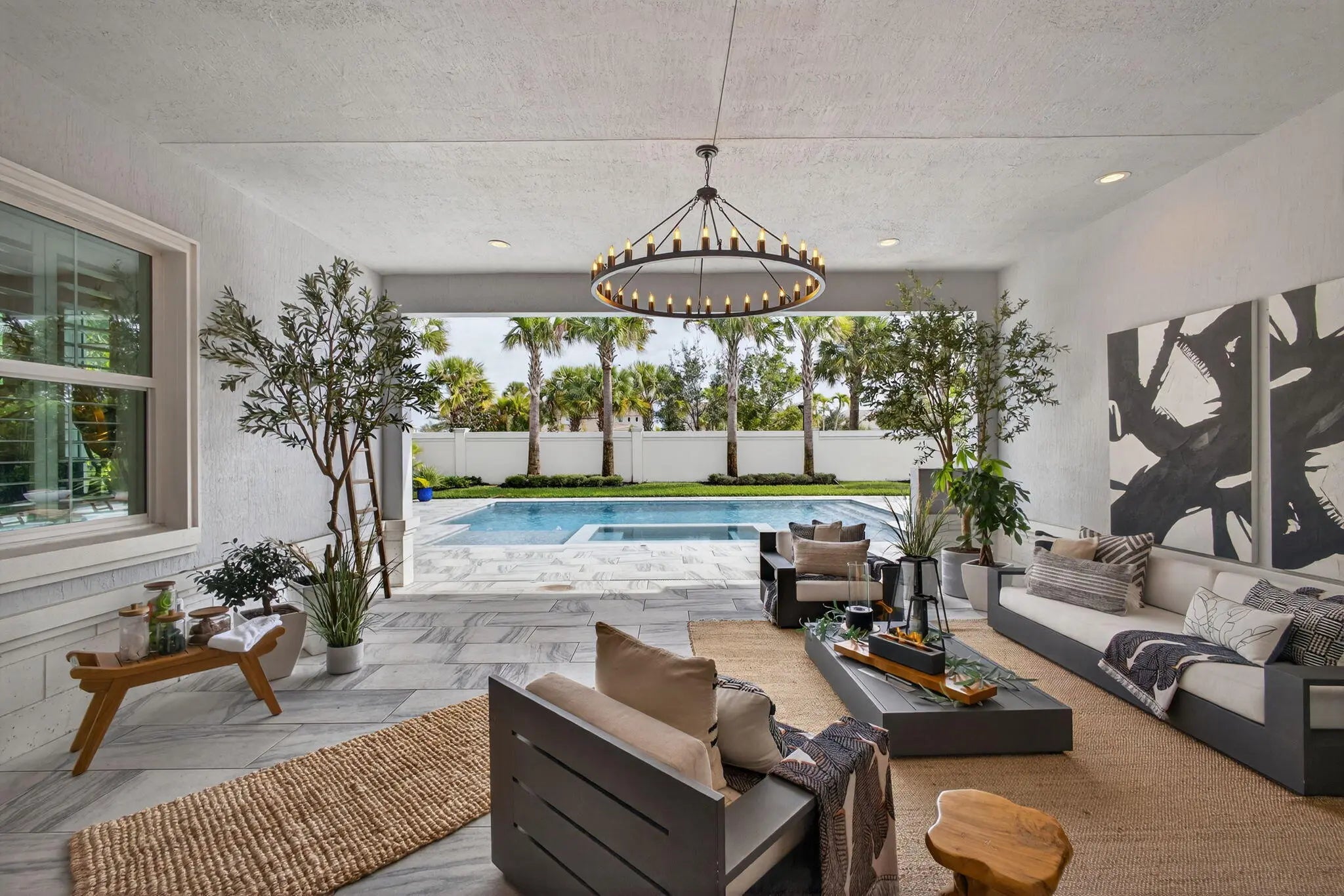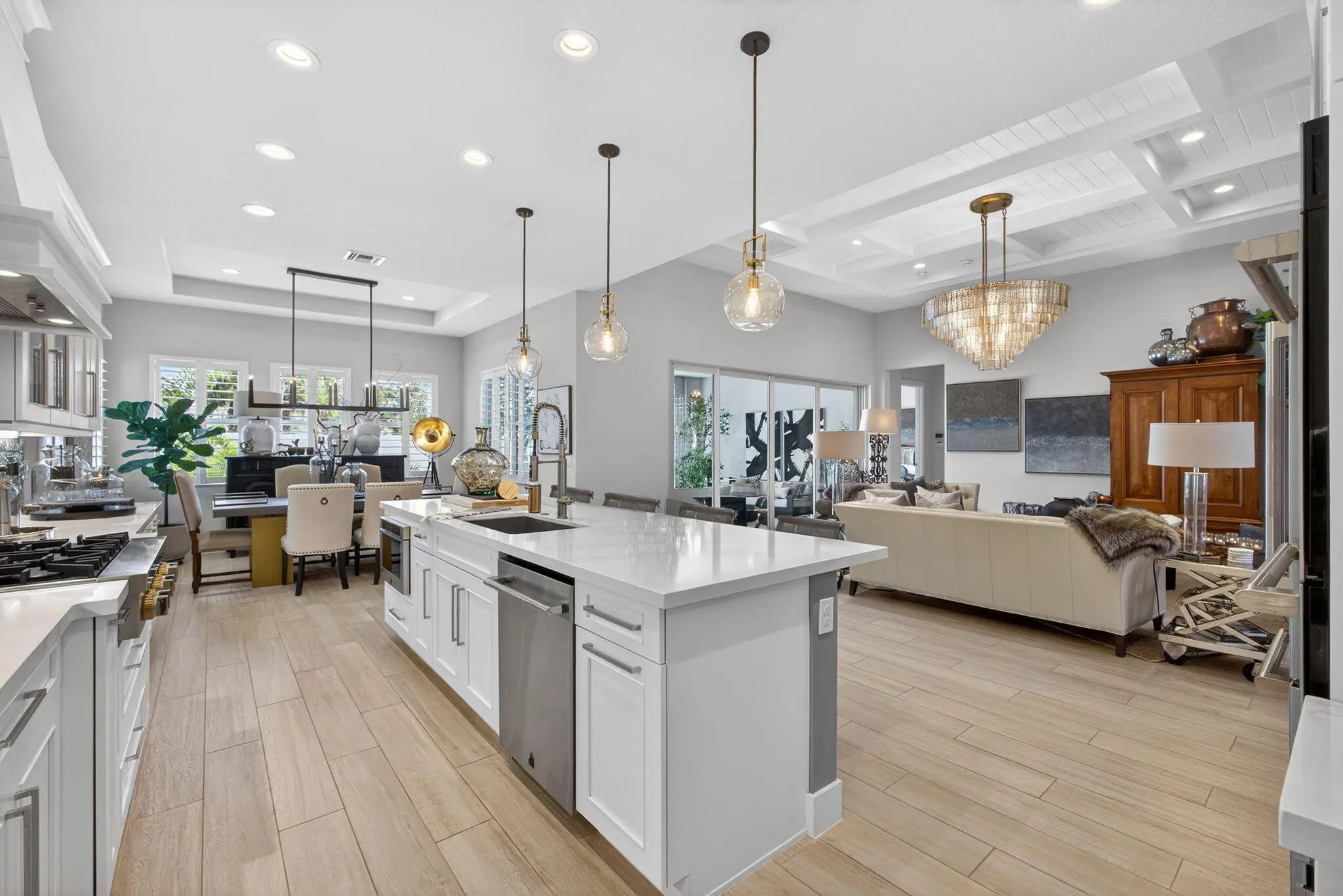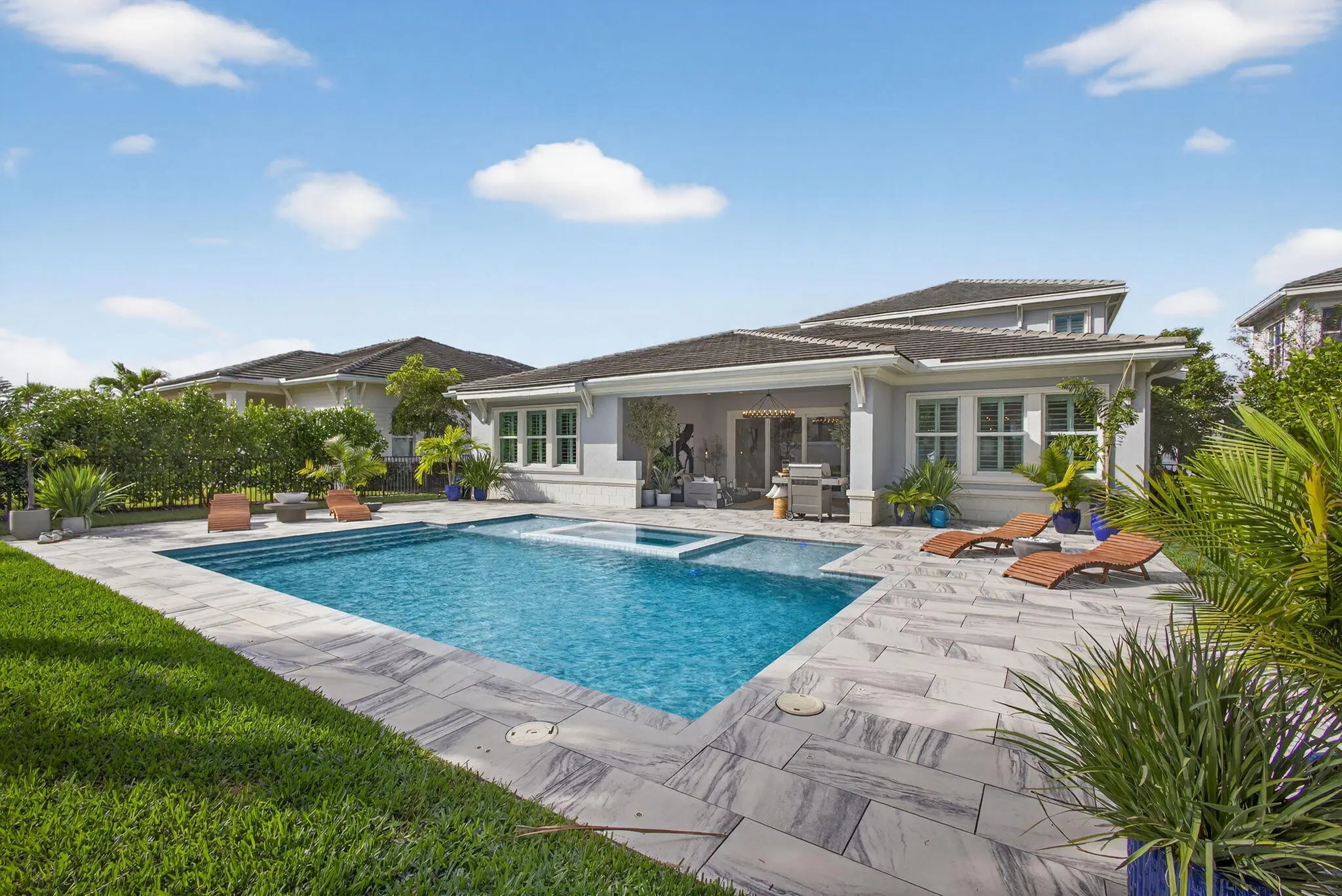 Sophistication and elegance are showcased throughout this stunning yet welcoming home, featuring designer lighting and fixtures, plantation shutters, a customized primary closet, upgraded shelving and shower door, and custom garage décor. These thoughtful post-closing enhancements add both luxury and functionality. The first floor offers a spacious primary and guest suites, powder room, dedicated office, and laundry room. The chef's kitchen is equipped with JennAir appliances, wood cabinetry, a walk-in pantry, wine cellar, and upgraded fixtures. The open concept living space seamlessly connects to the expansive veranda, ideal for gatherings & friends. Lush, upgraded landscaping adds privacy to the outdoor settings so you can enjoy your heated pool and spa year round. Residents of the Watermark subdivision within the AVENIR master-planned community enjoy resort-style amenities, including a fitness room, game room, ballroom, kids' playroom, heated resort and lap pools, spa, cabanas, tennis and pickleball courts, playground, and a kids' water park. Surrounded by green spaces and miles of walking and biking trails, the community is conveniently located near shopping, schools, golf courses, dining, entertainment, cultural events, and world-class beaches. This is a rare opportunity to embrace a lifestyle of luxury, comfort, convenience, and exceptional community living. Visit and experience it for yourself.