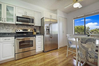 Top-Floor Gem with Water Views in a Vibrant 55+ Community! Welcome home to this spacious 2-bedroom, 2-bath condo with a versatile den — perfect for a home office, reading nook, or extra guest space! Located on the top floor (yes, the 4th!) of a highly desirable 55+ community, this unit offers stunning water views and the peaceful lifestyle you've been dreaming of. The updated kitchen features sleek granite countertops and crisp white cabinetry — ideal for cooking up your favorite dishes in style. You'll love the in-unit washer and dryer, plus extra storage just steps away for all your beach chairs and golf clubs! Enjoy wood laminate flooring in the main living areas and cozy carpet in the primary bedroom for that extra touch of comfort. The enclosed balcony with sliding glass doors gives you flexible living space open it up to feel the breeze or keep it closed for year-round enjoyment. The master bath has had a recent shower pan upgrade, and the entire unit is clean, inviting, and ready for immediate move-in. Start living your best Florida lifestyle sunny days, friendly neighbors, and the perfect place to call home!