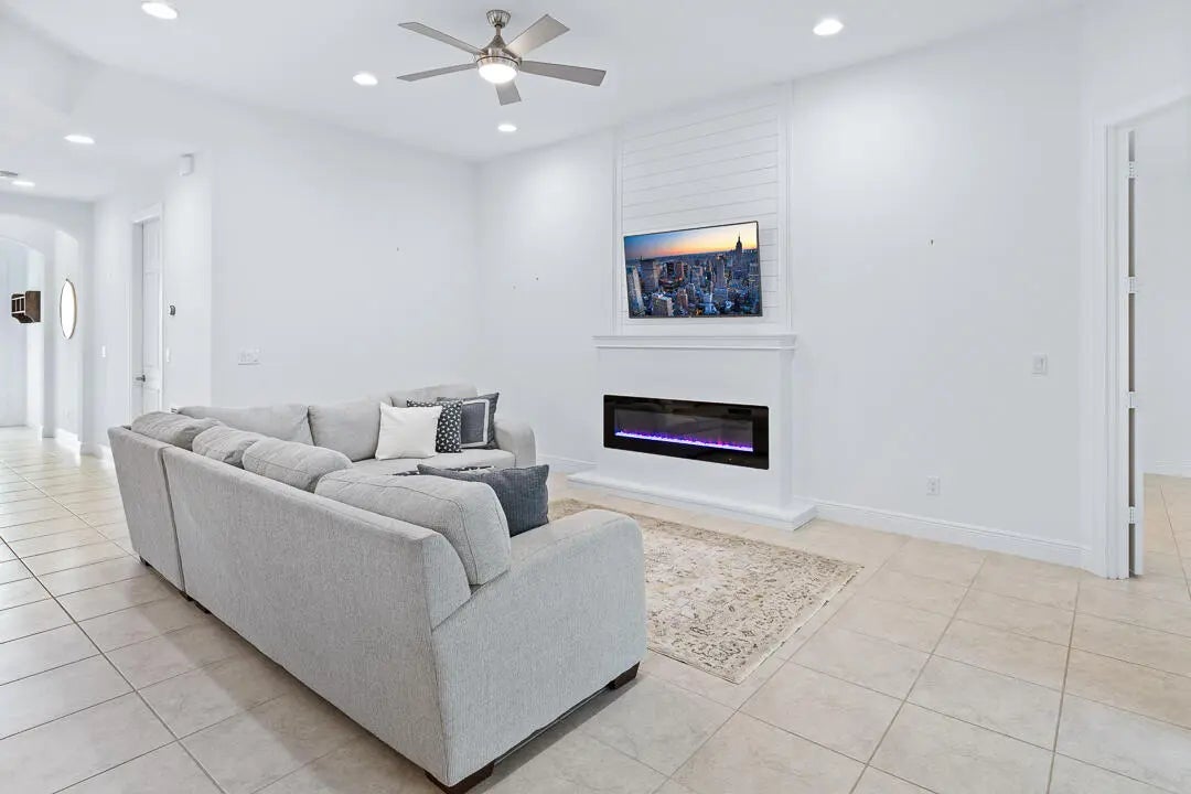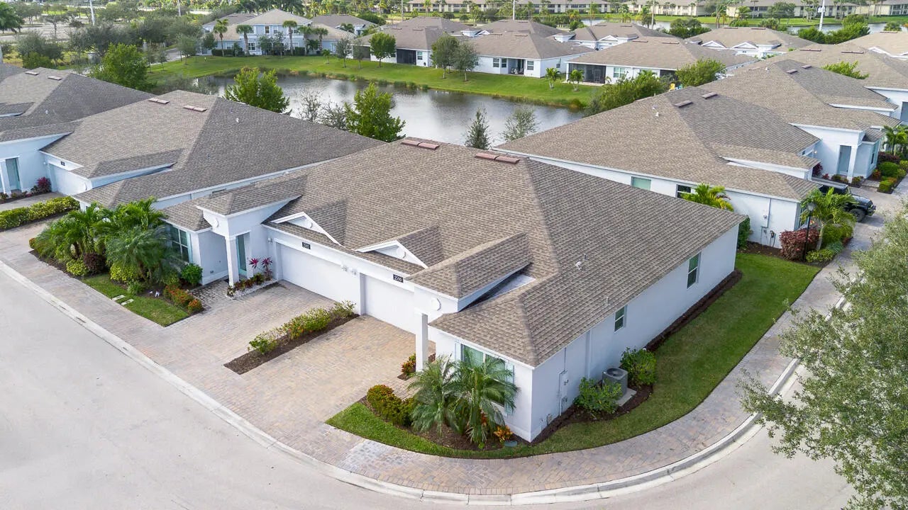 Light-filled and nearly new, this beautifully upgraded villa delivers modern comfort with a polished, designer feel. Sleek tile flooring flows throughout, complemented by custom touches, hurricane-impact windows, and an attached two-car garage. Enjoy access to a sparkling community pool that completes the lifestyle package. The spacious primary suite features dual vanities, a private water closet, and generous storage. The kitchen looks straight out of a design magazine, highlighted by an electric fireplace that adds warmth and style. Clean lines, open spaces, and thoughtful upgrades make this home ideal for easy, low-maintenance living. Enjoy!