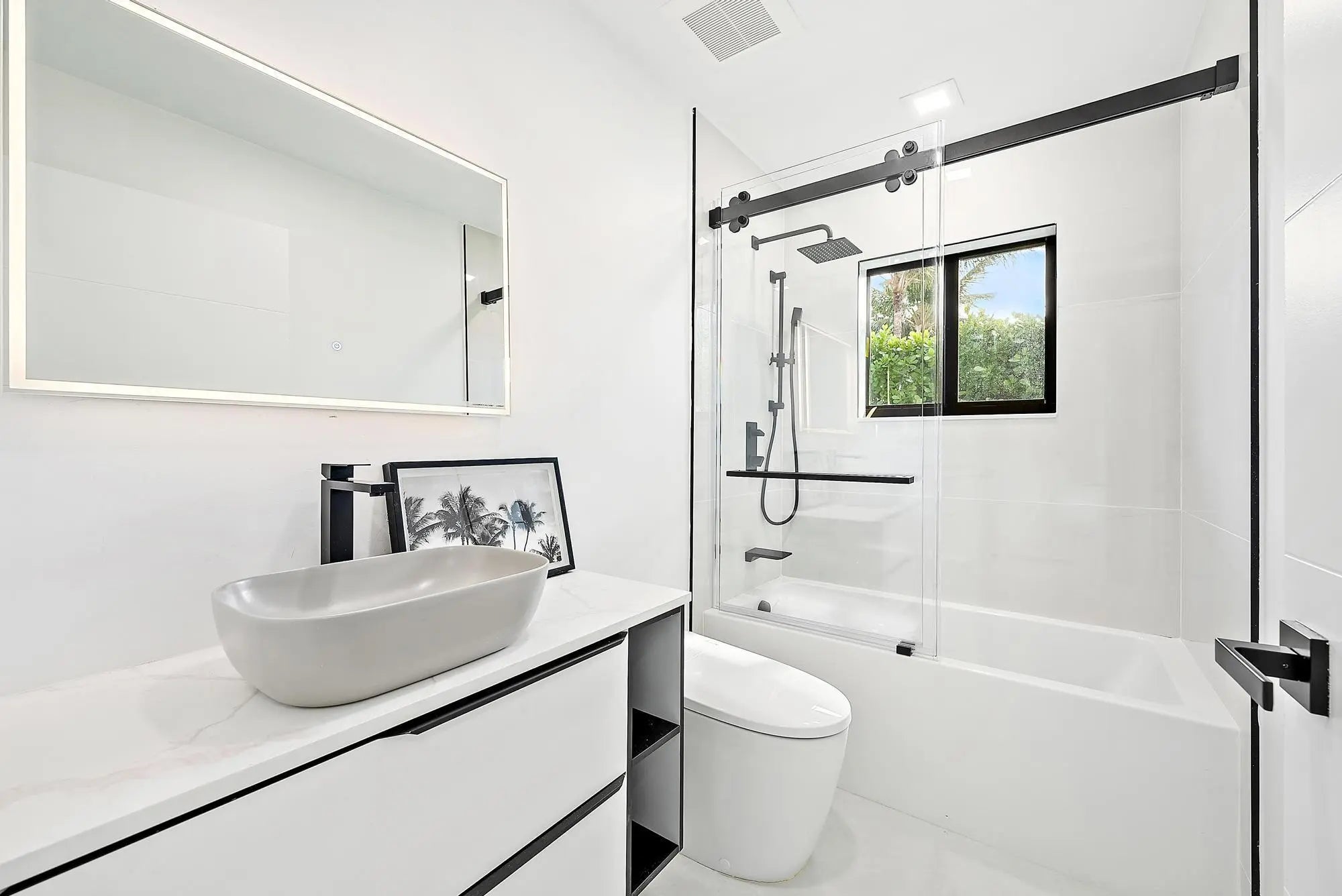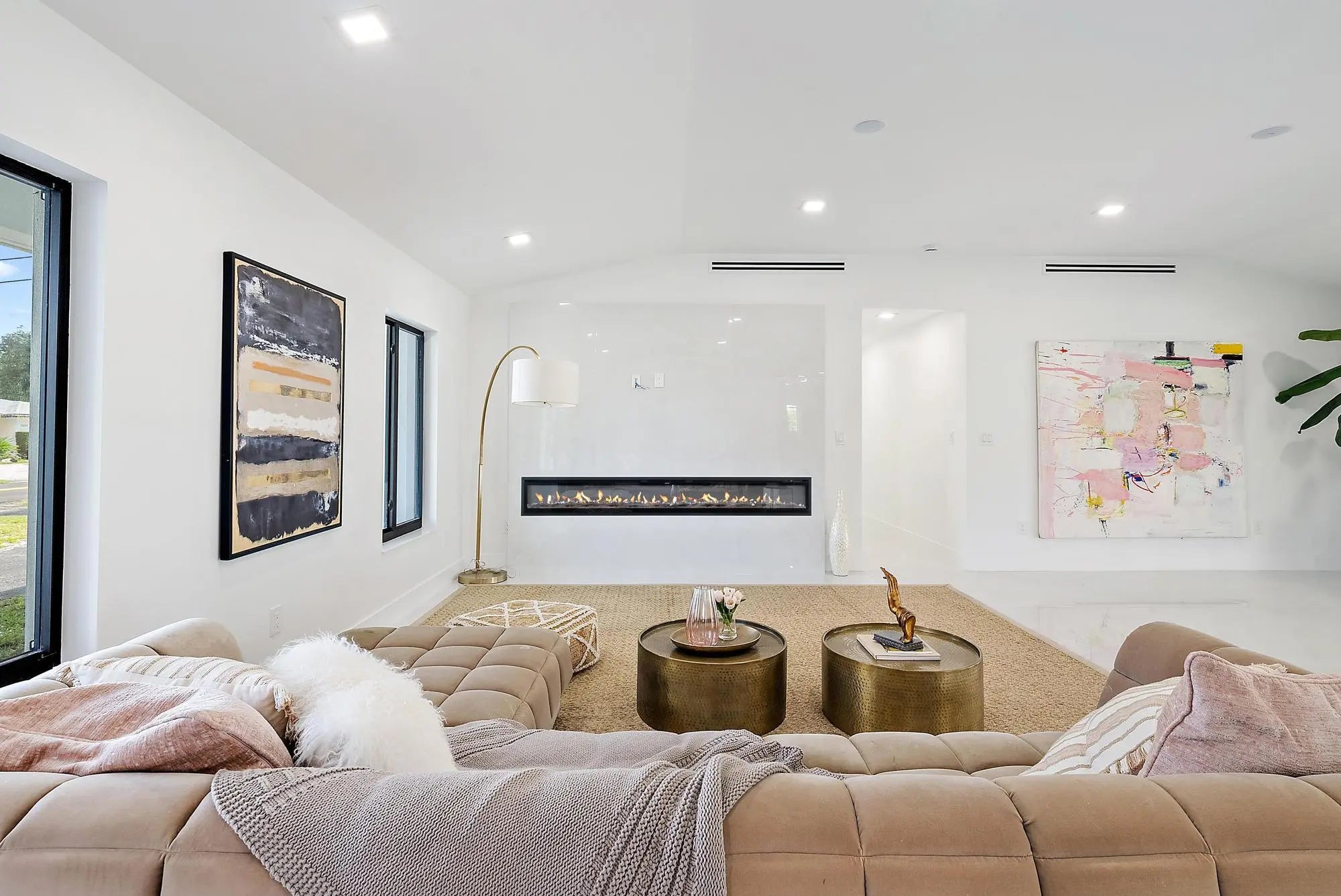 Completely New Home on the Water! Beautifully finished home has undergone a thorough gut-job resulting in over 3600 sf of waterfront enjoyment with peaceful views featuring 3 bedrooms & 3 bathrooms, high ceilings, huge covered loggia, brand new swimming pool & spa (currently under construction), laundry room, kitchen & appliances, all new walls, insulation, ac, roof, plumbing, natural gas and so much more. Located in WPB in the desirable & friendly Lake Clarke Shores neighborhood with convenient location and amenities (eg private police, parks, tennis, pickleball) and no HOA. Front driveway, side gates and landscaping to be completed after swimming pool. Completion estimated 2/28/26.