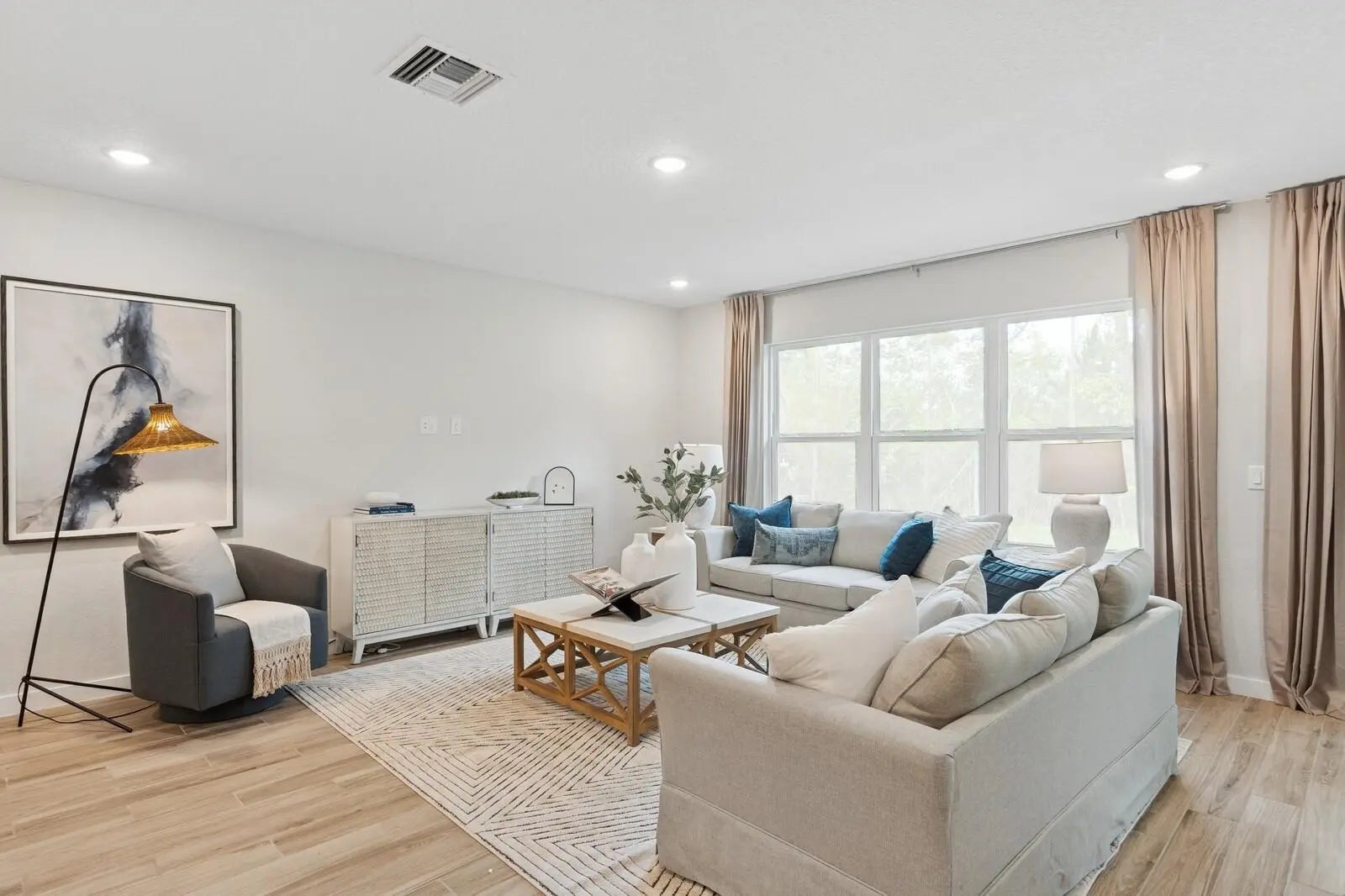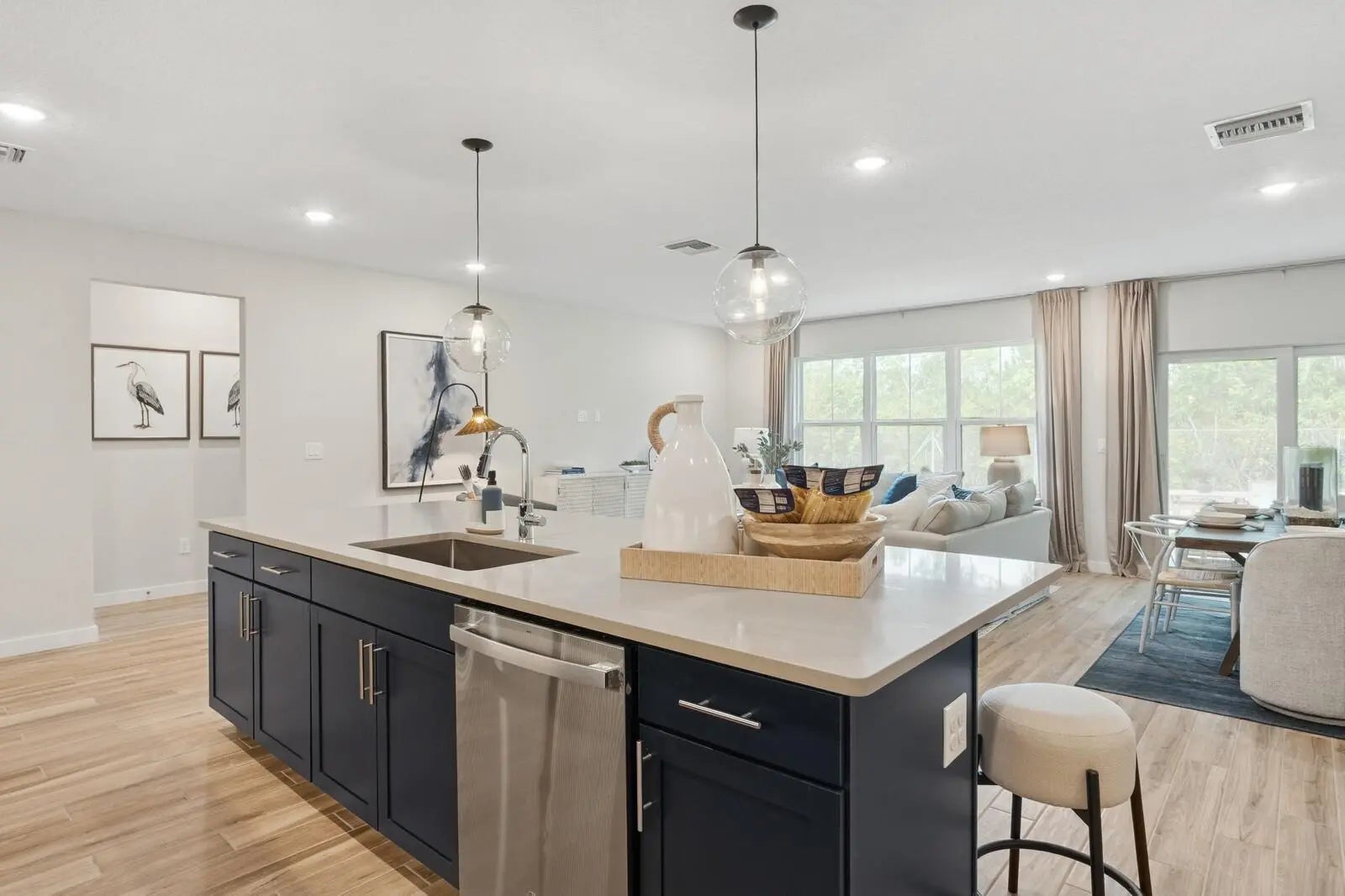 This stunning New 3 car garage home with ''Loft'' decor sits on a spacious 1/4 acre+ Corner lot, No HOA! The gourmet-style kitchen features a large polished quartz island, 42'' white cabinets, meridian gray quartz counter tops and plank tile throughout that adds a sleek, modern touch. Enjoy outdoor living with a covered lanai. All appliances, impact windows and gutters are included. The ''Extra Suite Plus'' offers a private bedroom, bathroom, and living area with its own separate entrance! Don't miss out!