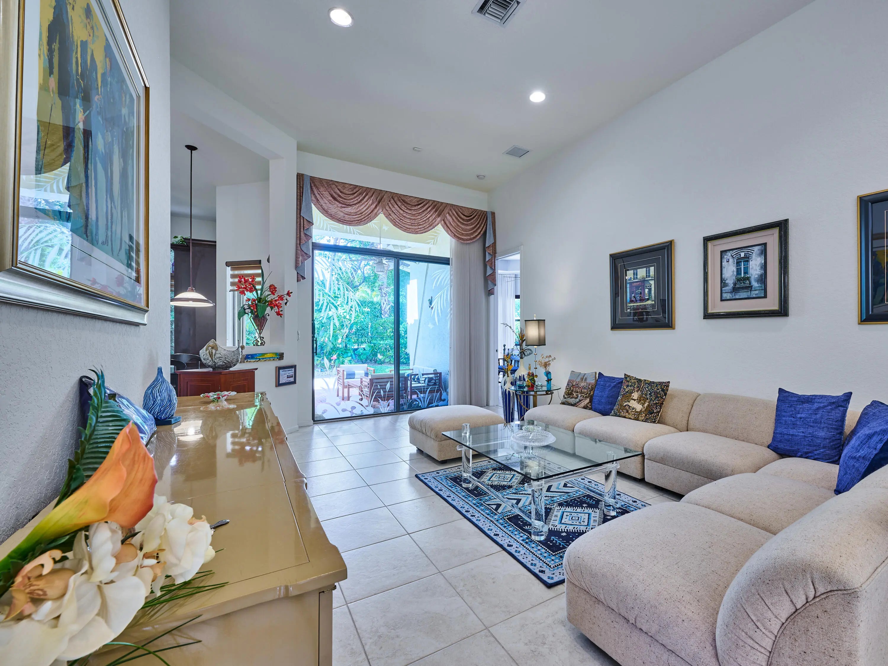Welcome to this beautifully maintained 3-BR, 2-BA, 2-CG home located in the highly sought-after Tivoli Lakes, a premier 55+ active adult community. Ideal for downsizing, seasonal living, or a full-time Florida lifestyle, this home offers a comfortable, low-maintenance layout w/ generous living space & a private outdoor setting. From the moment you arrive, you'll appreciate the inviting curb appeal, paver driveway, & lush tropical landscaping. Inside, the home features a bright, open floor plan w/ vaulted ceilings, tile flooring in the main living areas, & abundant natural light throughout. The thoughtfully designed split-bedroom layout provides privacy for guests while keeping everyday living easy & functional. The spacious living & dining areas flow seamlessly, creating an ideal setting for both relaxing & entertaining. Large windows & sliding glass doors lead to a private patio surrounded by tropical landscaping, perfect for morning coffee, quiet evenings, or effortless indoor-outdoor living. The kitchen offers ample cabinetry, generous counter space, & an open design well-suited for casual meals or hosting guests. The master BR is a peaceful retreat featuring a tray ceiling, garden views, & an en-suite bathroom with a dual-sink vanity, soaking tub, separate shower, & walk-in closet. Two additional bedrooms offer flexibility for visiting, a home office, or hobbies. Tivoli Lakes is a guard gated, resort-style community known for its clubhouse, fitness center, swimming pool, tennis, pickleball, & an active social calendar. Centrally located near shopping, dining, medical facilities, major highways, & just a short drive to beaches, downtown Delray Beach, & Palm Beach International Airport. Homes in Tivoli Lakes are in high demand, schedule your private showing today & experience the best of South Florida's active adult lifestyle.