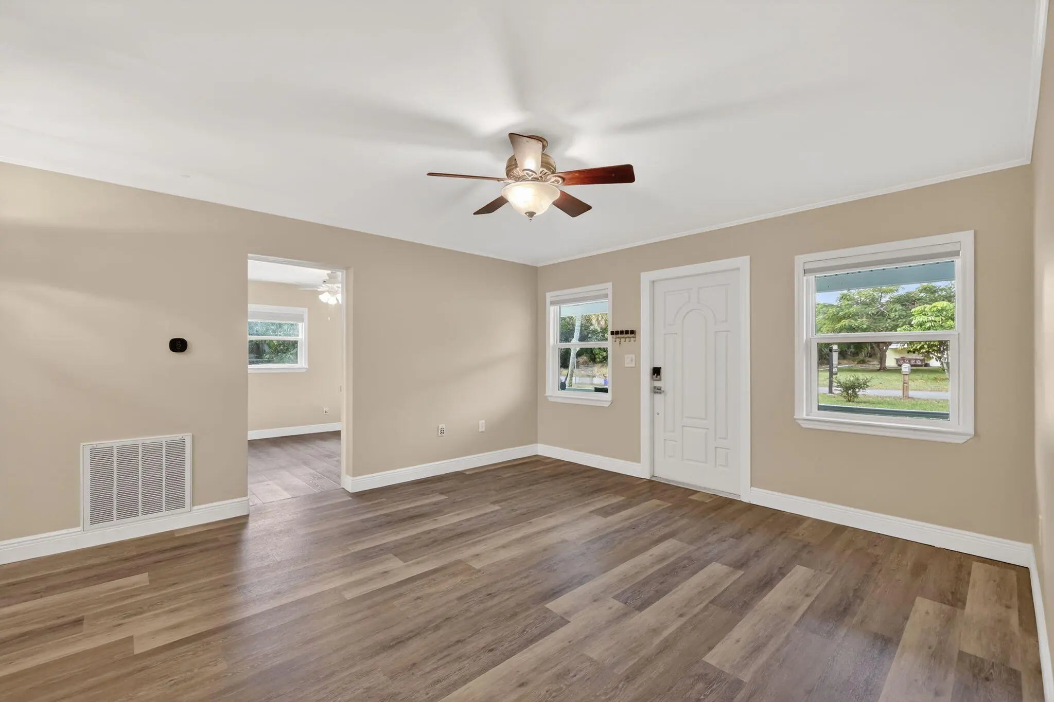 This home delivers efficiency, longevity, and peace of mind with: impact windows and doors (2021), standing seam metal roof (2022), newer HVAC (2022), and a fully paid solar array installed in 2023- average bill is $45/mo. The fresh interior/exterior paint (2025), waterproof, wood-look plank flooring (2025), stainless steel appliances, smart home features controlling both the AC and irrigation along with 8 cameras will enhance your everyday living. Outdoor highlights include a fully screened patio, PVC privacy fence (2021), irrigation well, and two sheds—one insulated with A/C and electric. This home is a rare find for buyers who value efficiency, durability, and true move-in readiness.