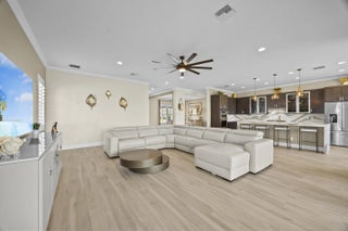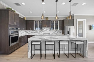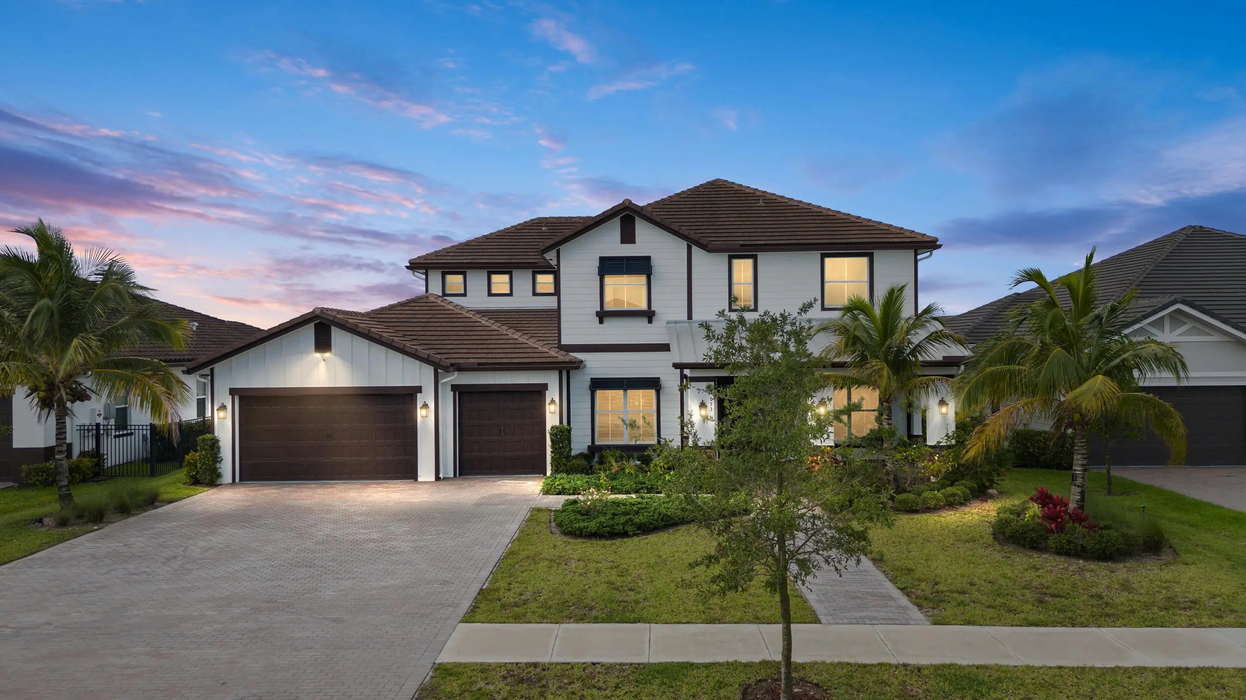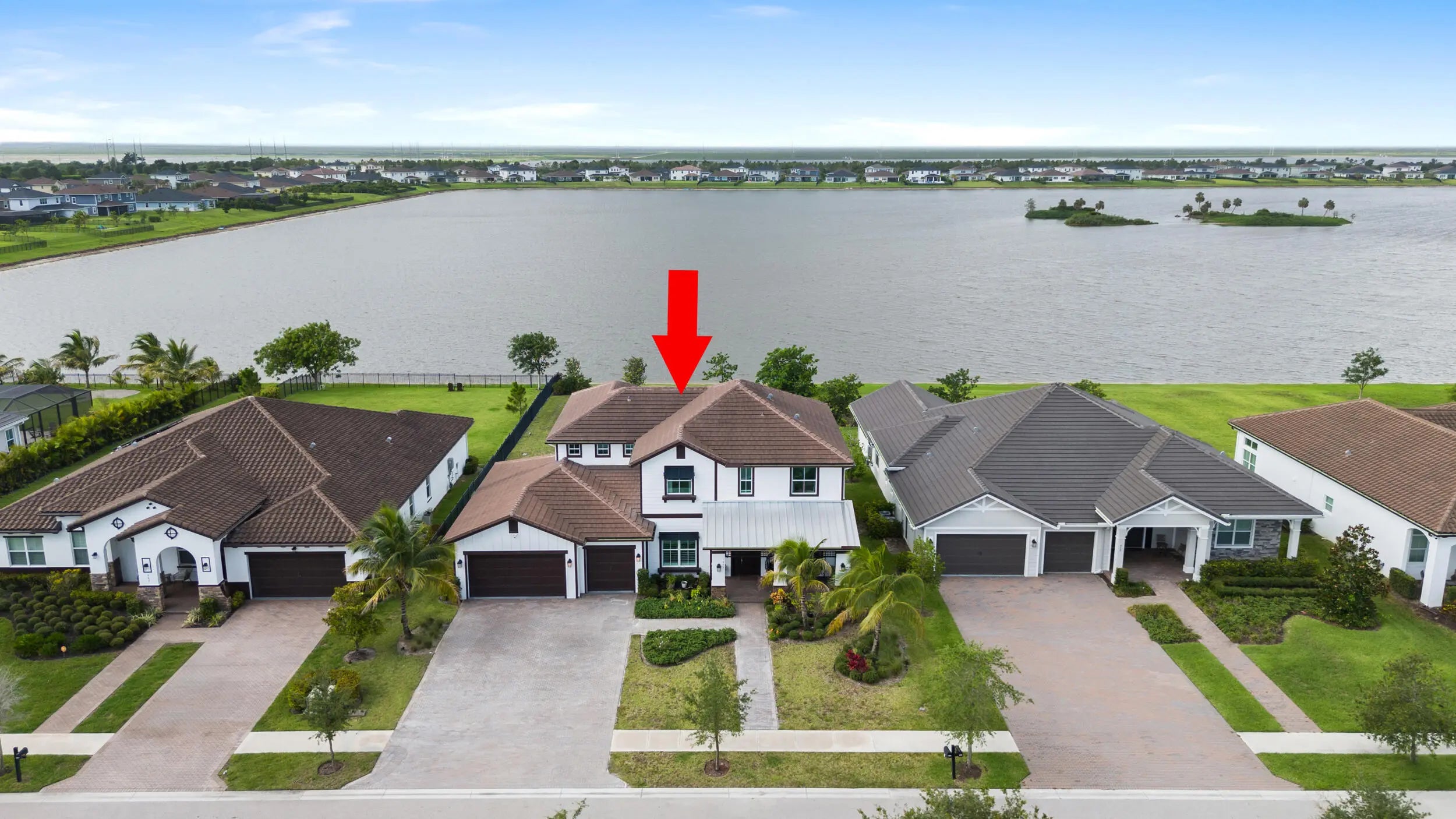 Like New! Skip the wait for new construction and move right into this 2021 Kenco built lakefront home offering nearly 4,000 square feet of thoughtfully designed living space. Soaring ceilings and an open, light filled layout set the tone, paired with designer upgrades that elevate every room beyond standard builder finishes. The kitchen anchors the home with thick waterfall quartz countertops, a gas range, and generous space for gathering and entertaining. The main level features a private bonus room with a full ensuite, ideal as a second primary suite, guest retreat, or home office. Upstairs, a spacious loft overlooks the living area, while the lake view owner's suite offers a spa style bath and dual walk in closets. Three additional bedrooms and two full baths complete the upper le Outdoor living shines with a large covered lanai, outdoor kitchen, and an oversized lakefront lot that creates the perfect backdrop for entertaining or relaxing. A four car garage provides ample room for vehicles, storage, and recreational gear. Located in Arden, South Florida's sought after agrihood, residents enjoy a working farm, resort style pools, fitness center, clubhouse, miles of trails, and a true sense of community. This home delivers space, upgrades, and lifestyle without compromise.
