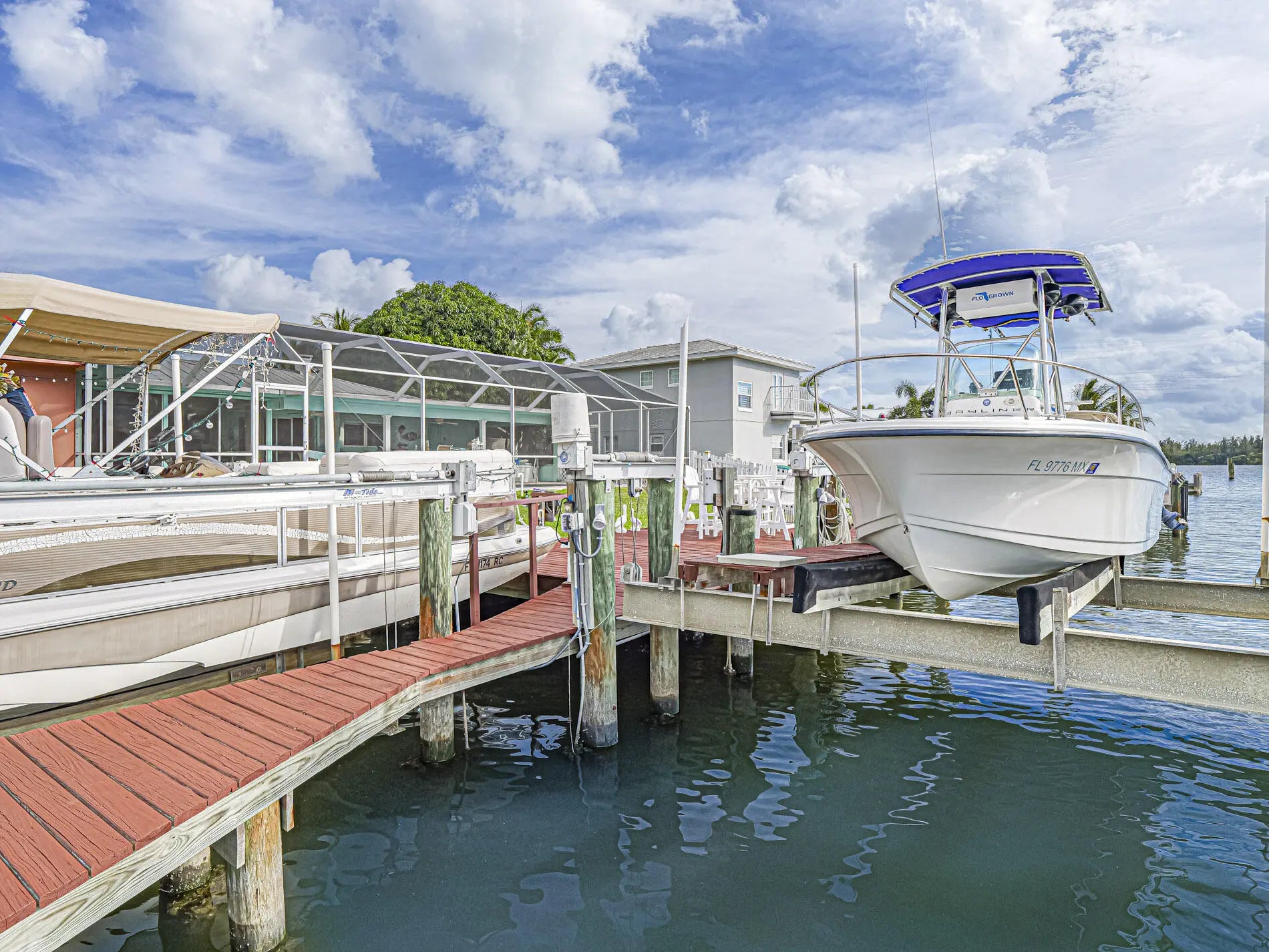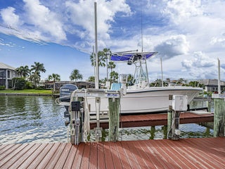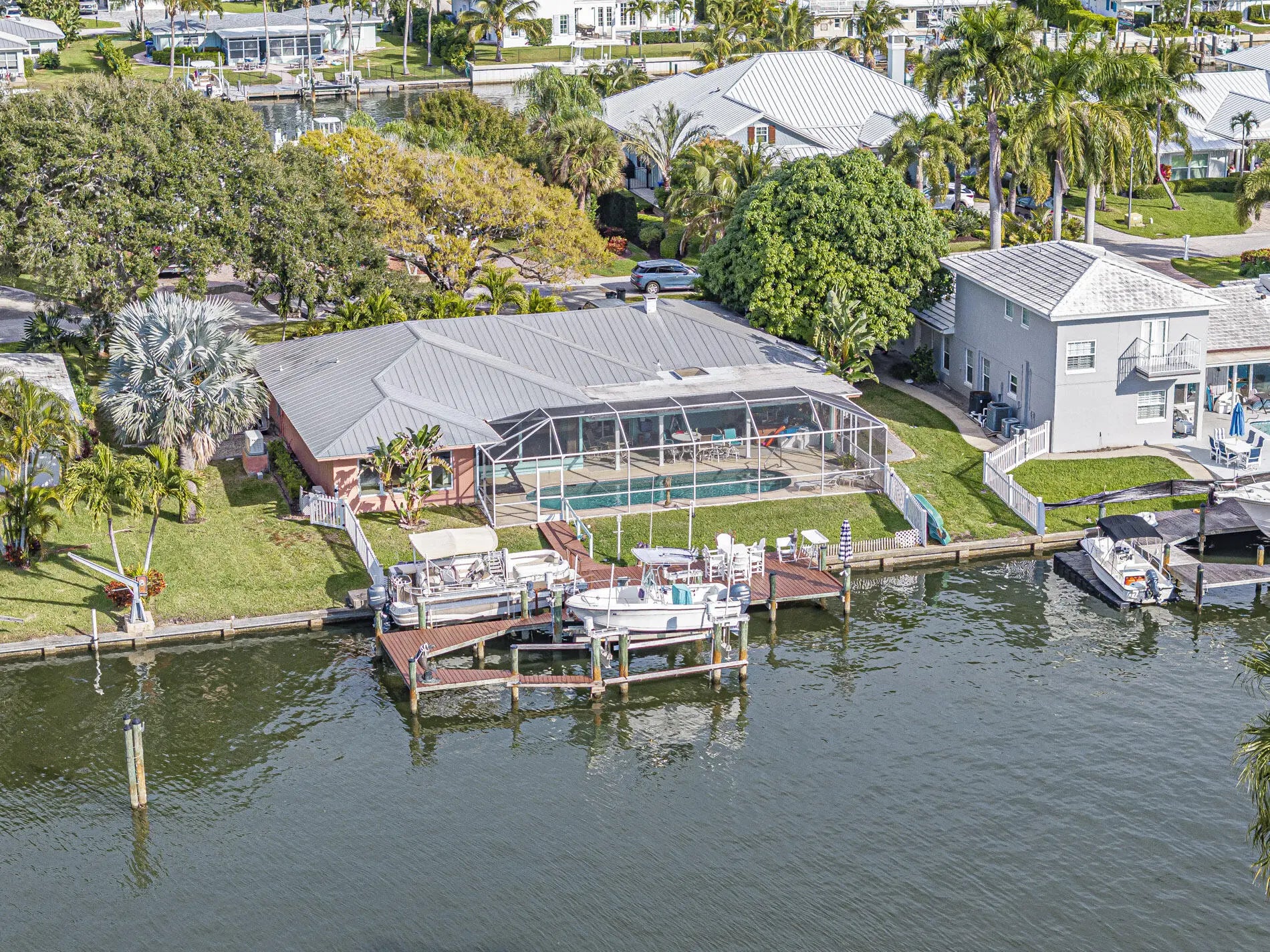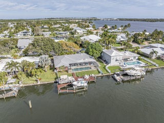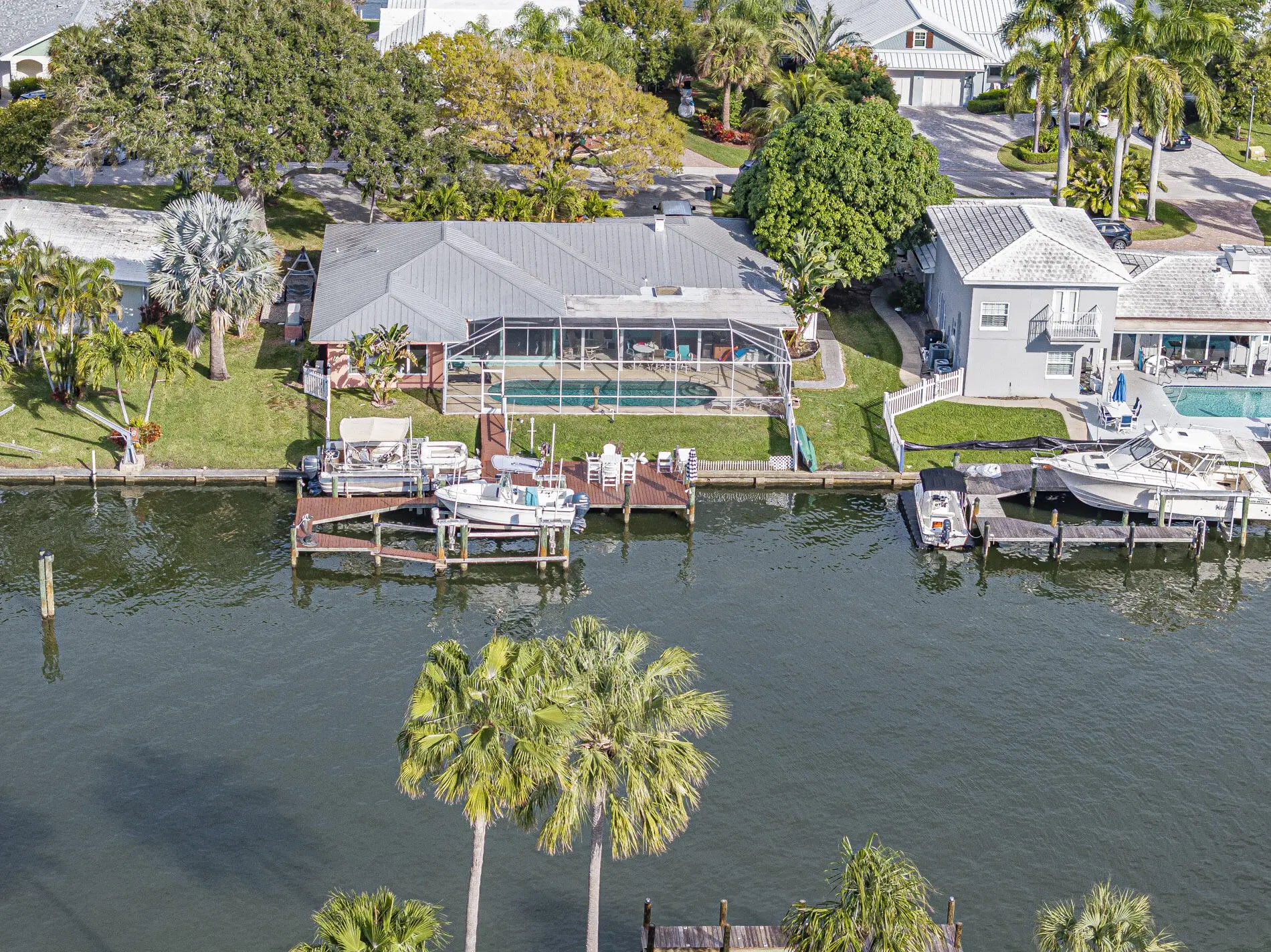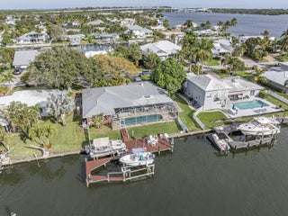 99 ft of waterfront in this serene residence nestled in sought after Vero Isles on quiet cul de sac Views of open water Backyard boasts a 50 ft newer dock with 2 boat lifts 30,000 lbs & 10,000 lbs. on deep water wide canall. Amazing Saltwater, heated resort style pool &expansive lanai, spectacular views of the Indian River Lagoon. Resort feeling. Impact windows, 1 yr old central air, whole home generator, metal roof & nearly new docks. 2300 sq ft of classic CBS construction. Split BR plan for guest comfort. Whole home irrigation system upgraded with automated remote. Kitchen remodeled in 2021. No HOA. Minutes to beaches and shops and will be within walking distance of the ''3 Corners'' project to include waterfront dining and shops. Centrally located