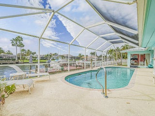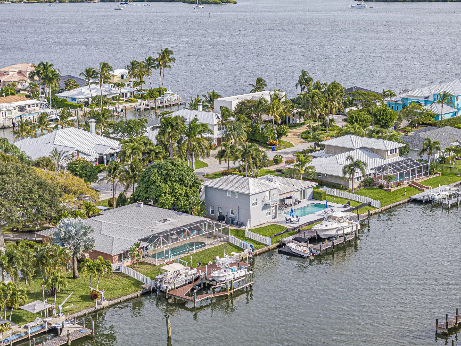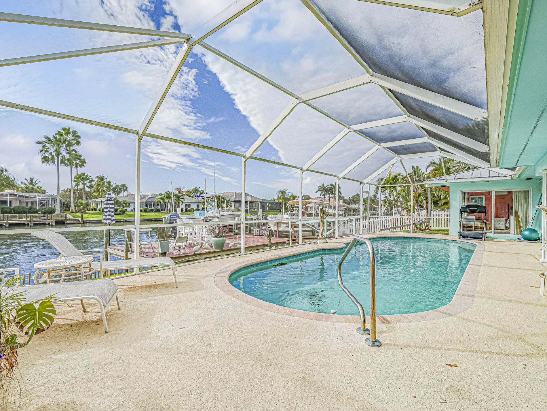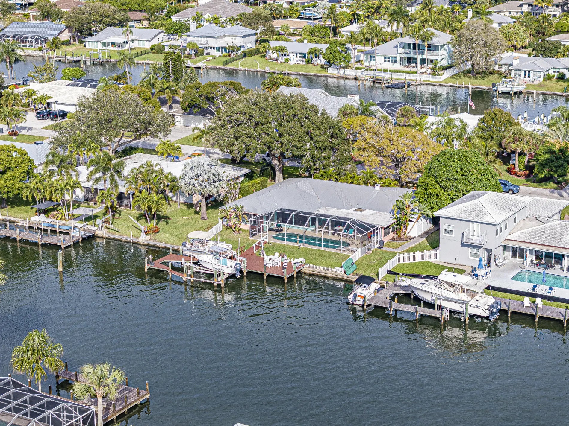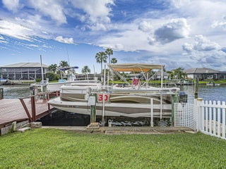 99 ft of waterfront in this serene residence nestled in sought after Vero Isles on quiet cul de sac Views of open water Backyard boasts a 50 ft newer dock with 2 boat lifts 30,000 lbs & 10,000 lbs. on deep water wide canall. Amazing Saltwater, heated resort style pool &expansive lanai, spectacular views of the Indian River Lagoon. Resort feeling. Impact windows, 1 yr old central air, whole home generator, metal roof & nearly new docks. 2300 sq ft of classic CBS construction. Split BR plan for guest comfort. Whole home irrigation system upgraded with automated remote. Kitchen remodeled in 2021. No HOA. Minutes to beaches and shops and will be within walking distance of the ''3 Corners'' project to include waterfront dining and shops. Centrally located