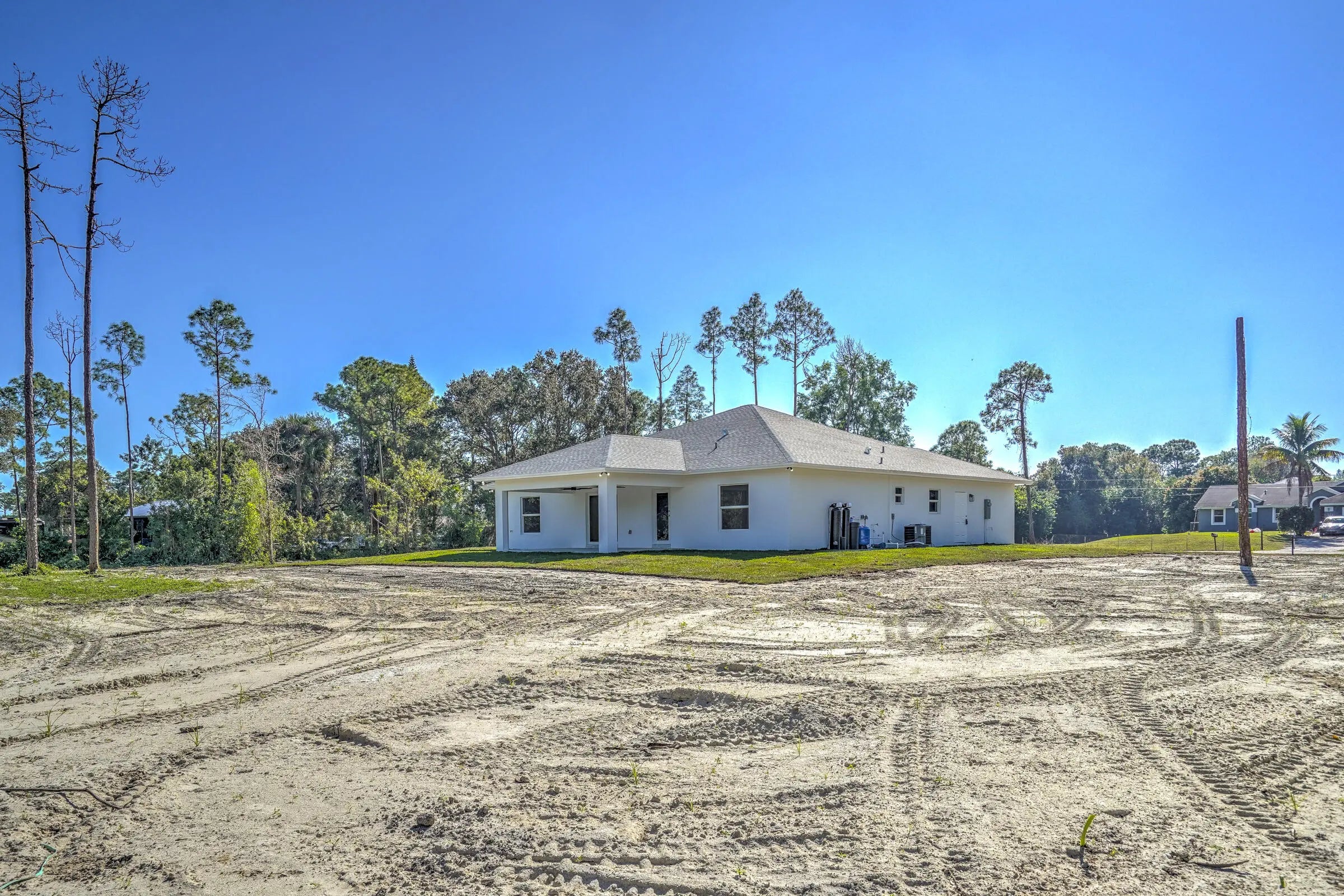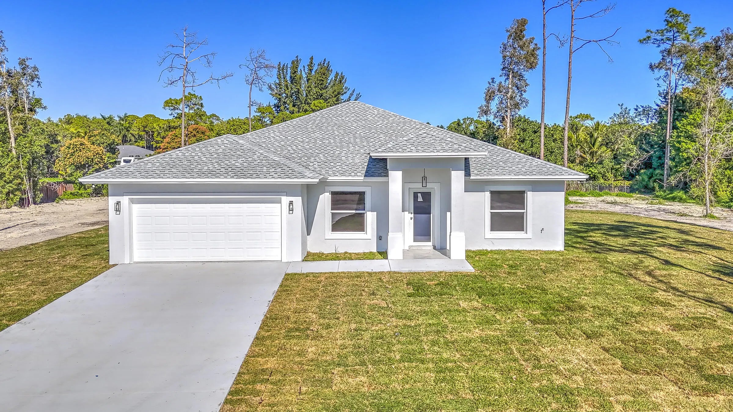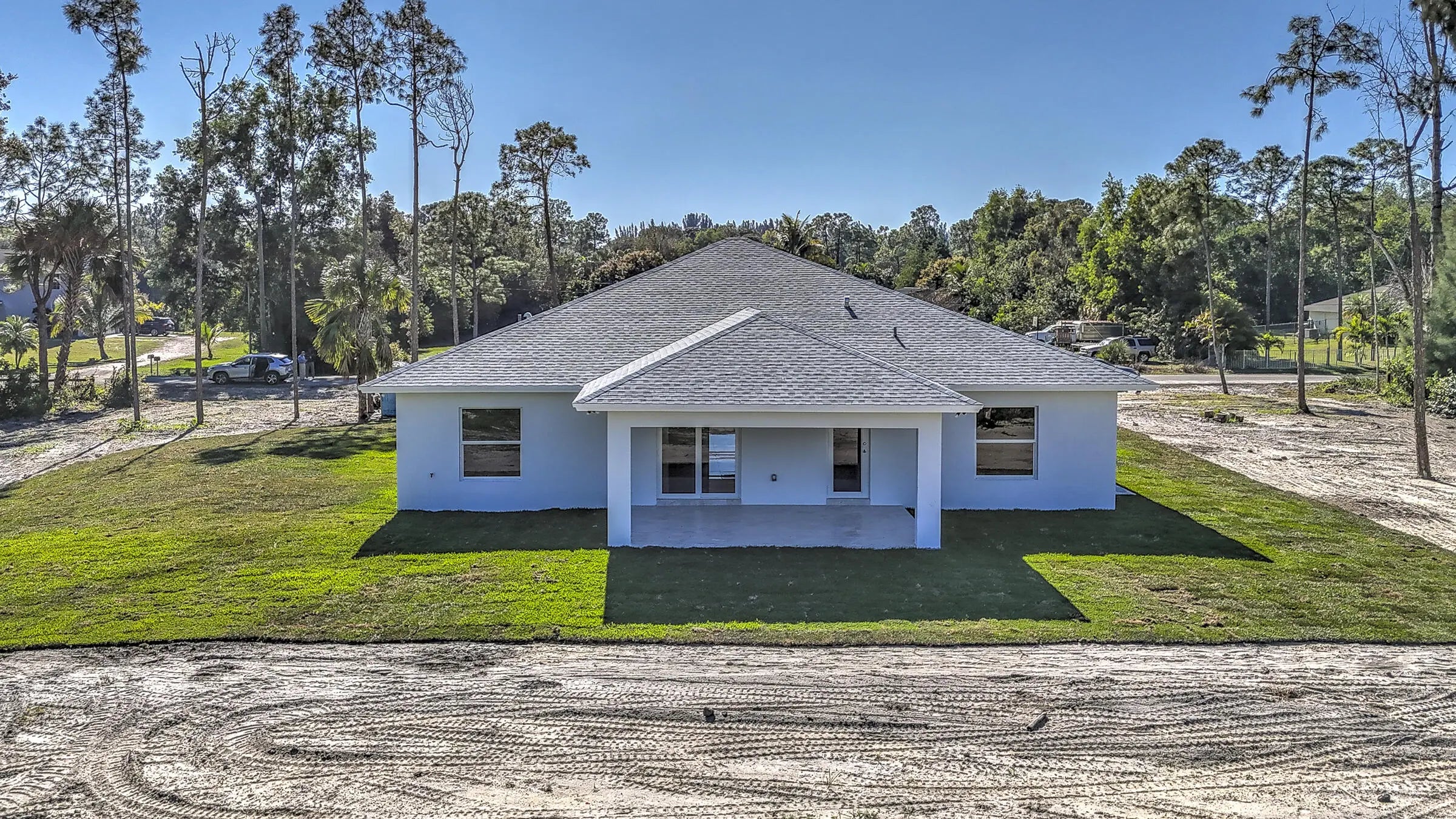 Stunning new construction in Loxahatchee offering 3,136 total square feet with 4 spacious bedrooms, 3 full bathrooms, and a two-car garage. Built with durable CBS concrete block construction, this modern home provides peace of mind with impact windows and doors throughout. A complete water filtration system is already installed for added convenience. Situated on a paved road, the property also features a paved driveway and a covered patio, perfect for outdoor relaxation and entertaining. Enjoy ample green space while being surrounded by the natural beauty and charm of Loxahatchee.