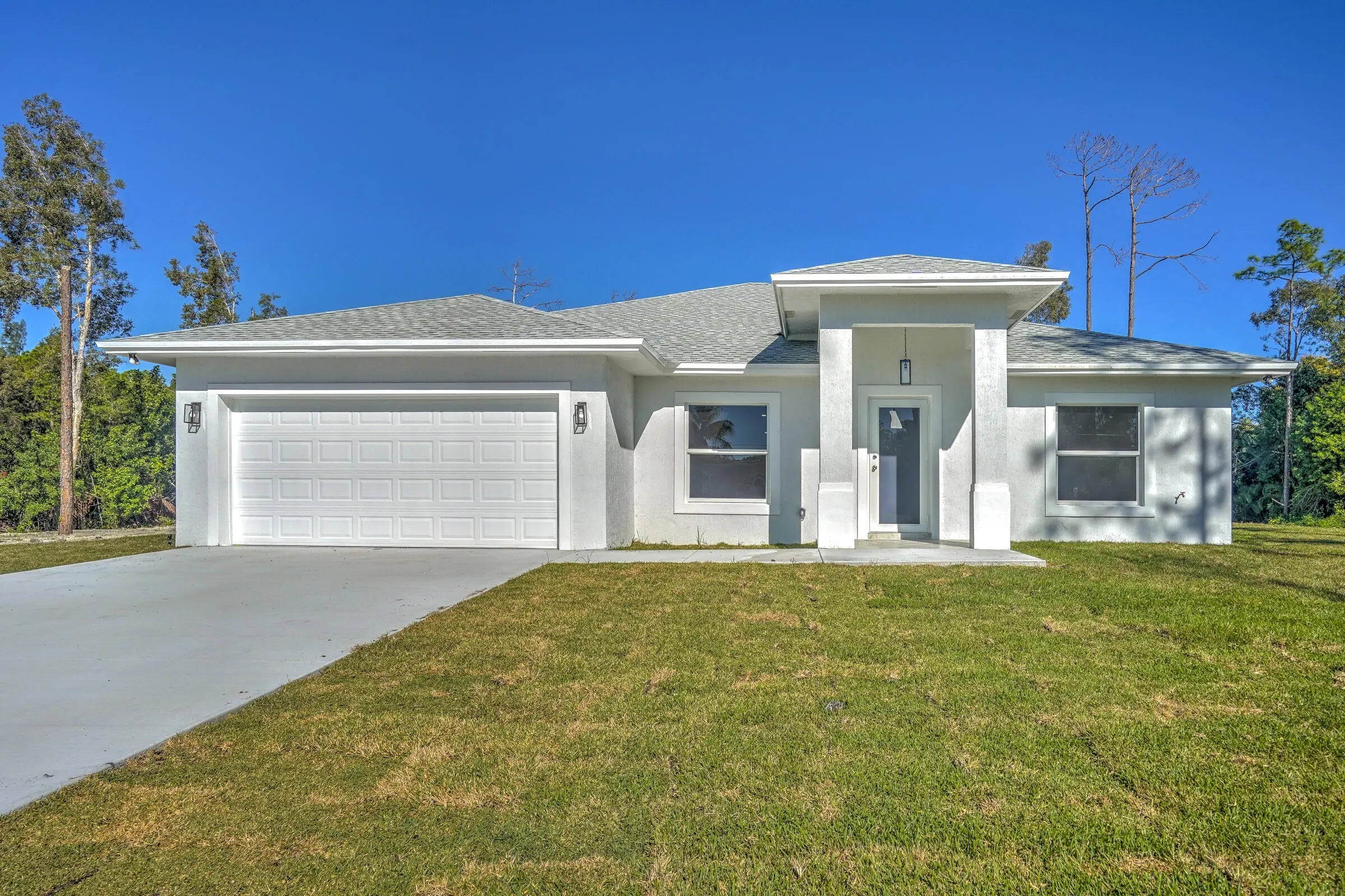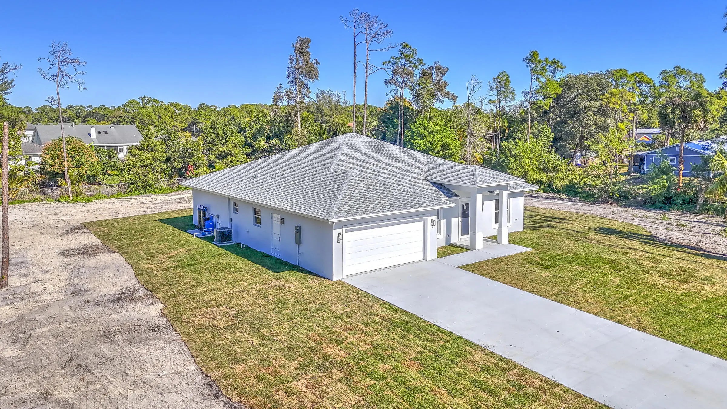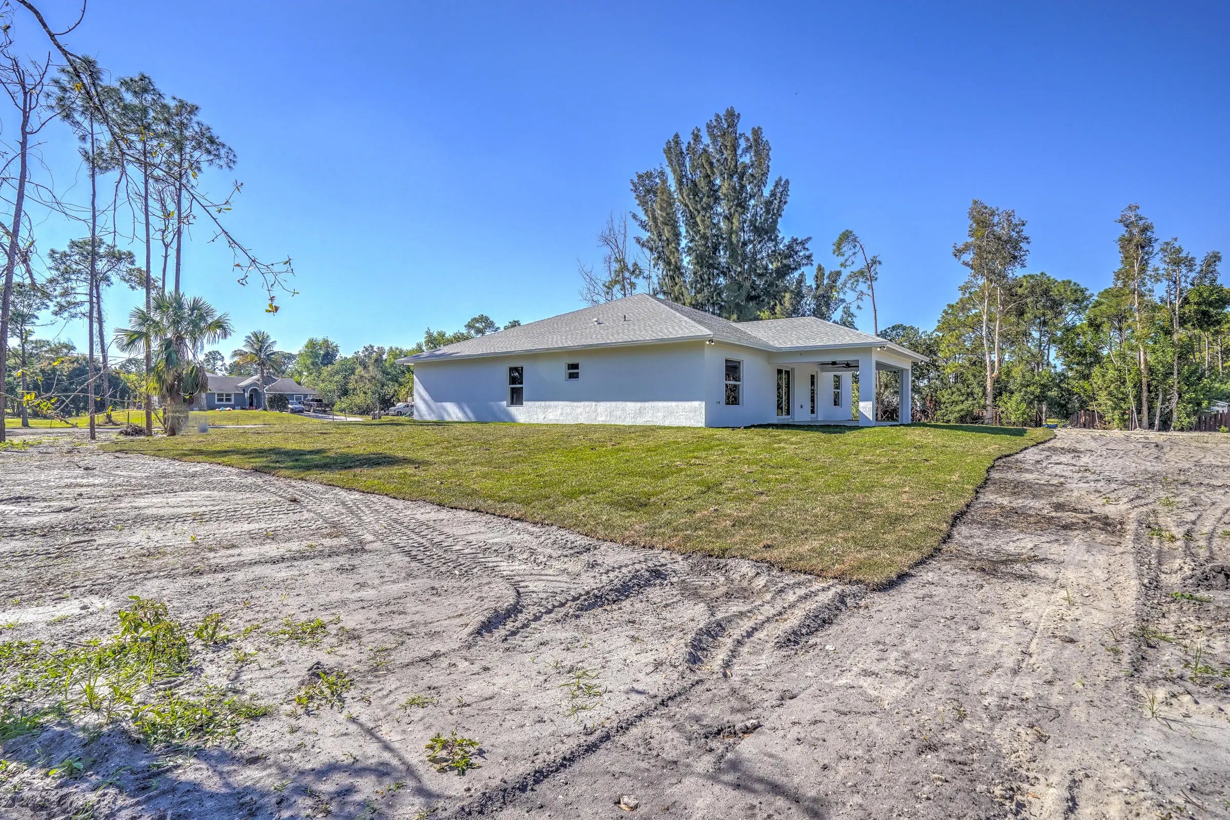 Stunning new construction in Loxahatchee offering 3,136 total square feet with 4 spacious bedrooms, 3 full bathrooms, and a two-car garage. Built with durable CBS concrete block construction, this modern home provides peace of mind with impact windows and doors throughout. A complete water filtration system is already installed for added convenience. Situated on a paved road, the property also features a paved driveway and a covered patio, perfect for outdoor relaxation and entertaining. Enjoy ample green space while being surrounded by the natural beauty and charm of Loxahatchee.