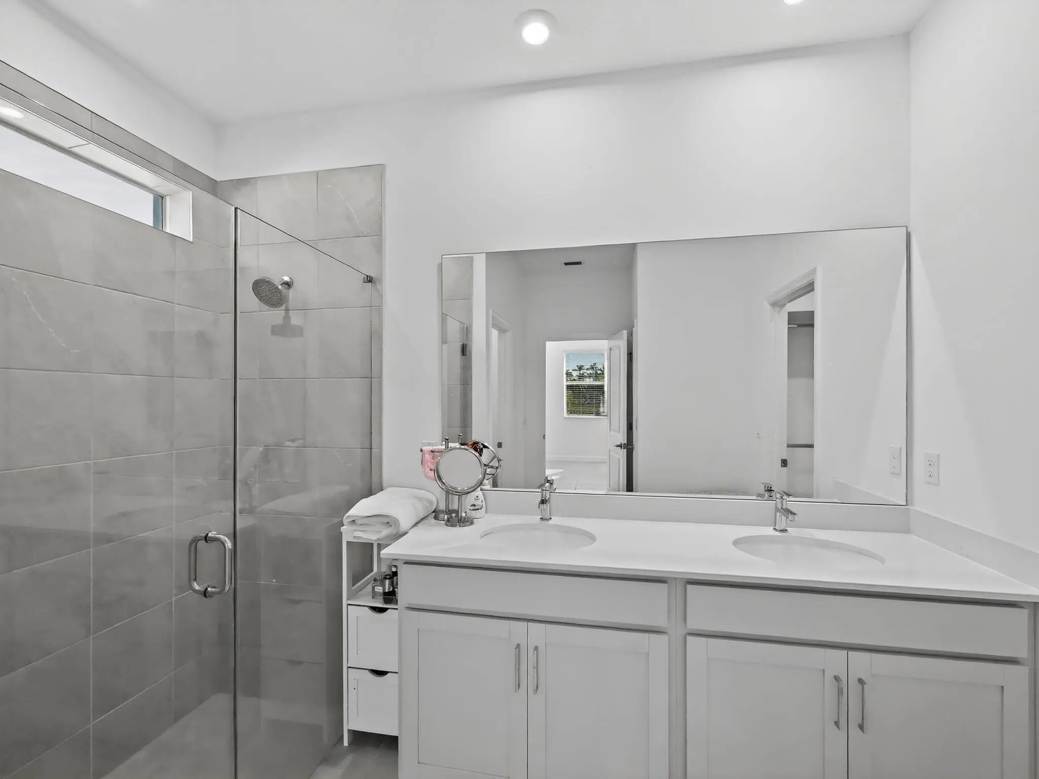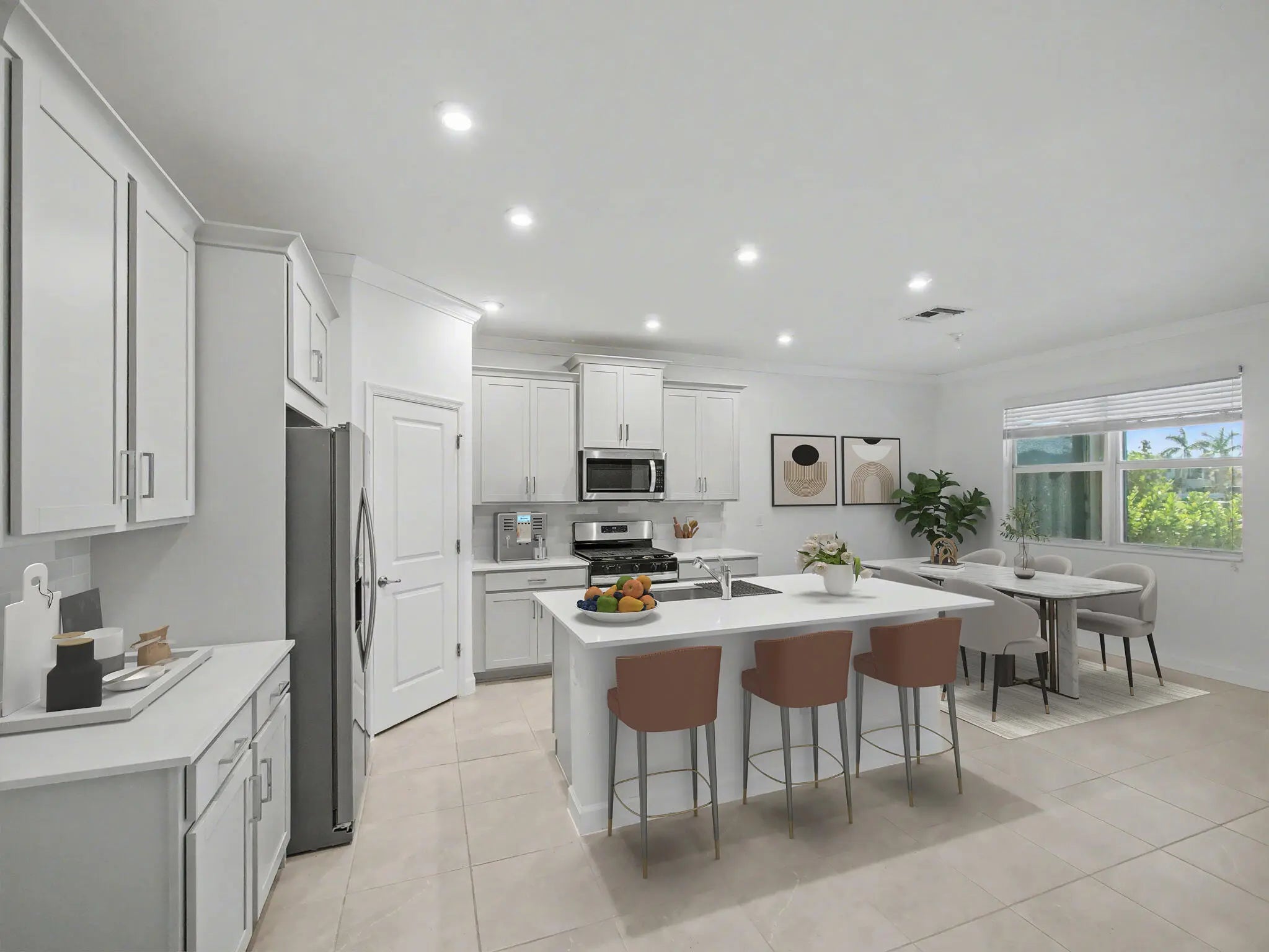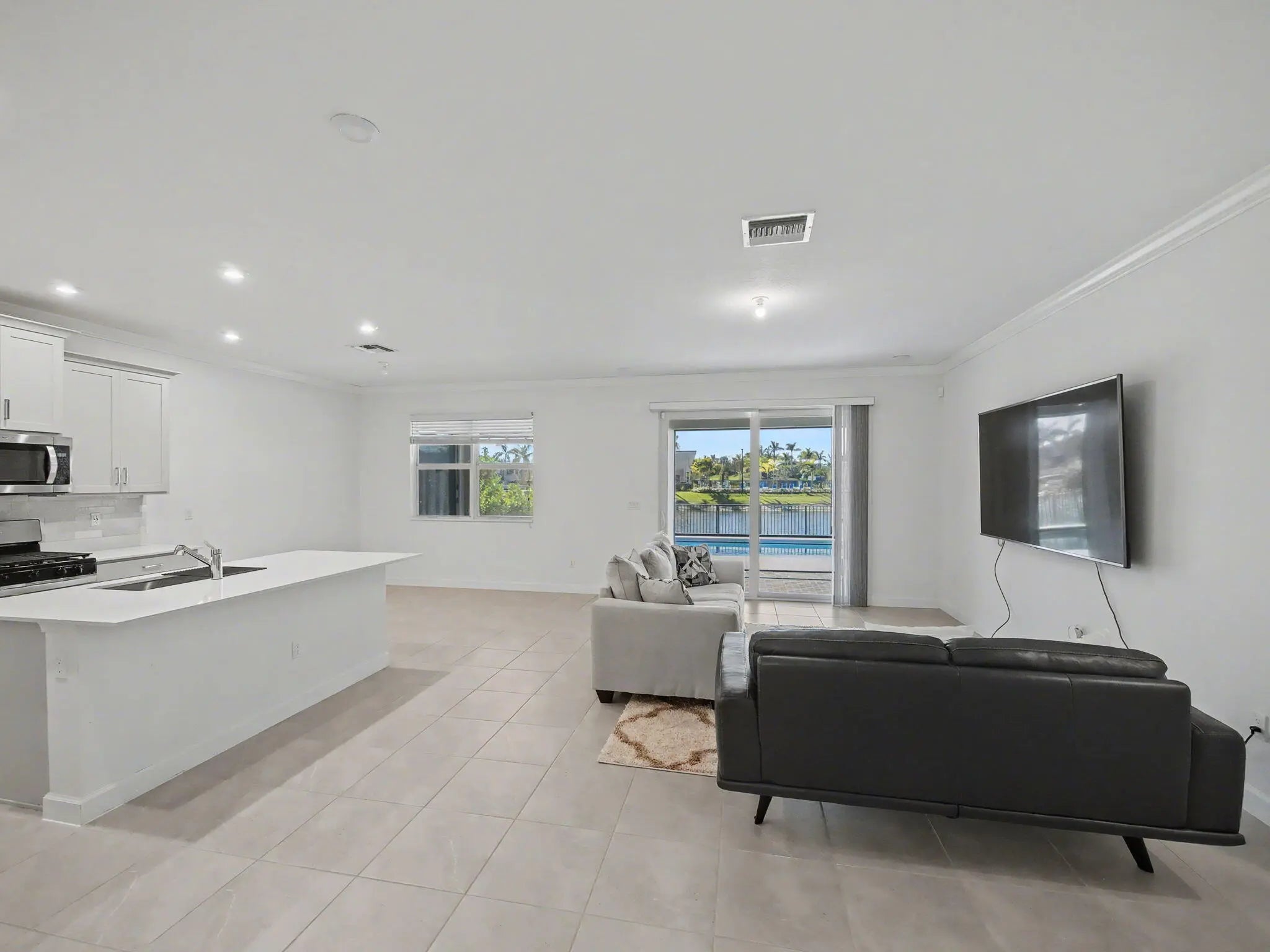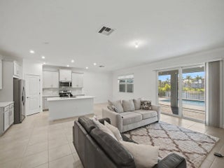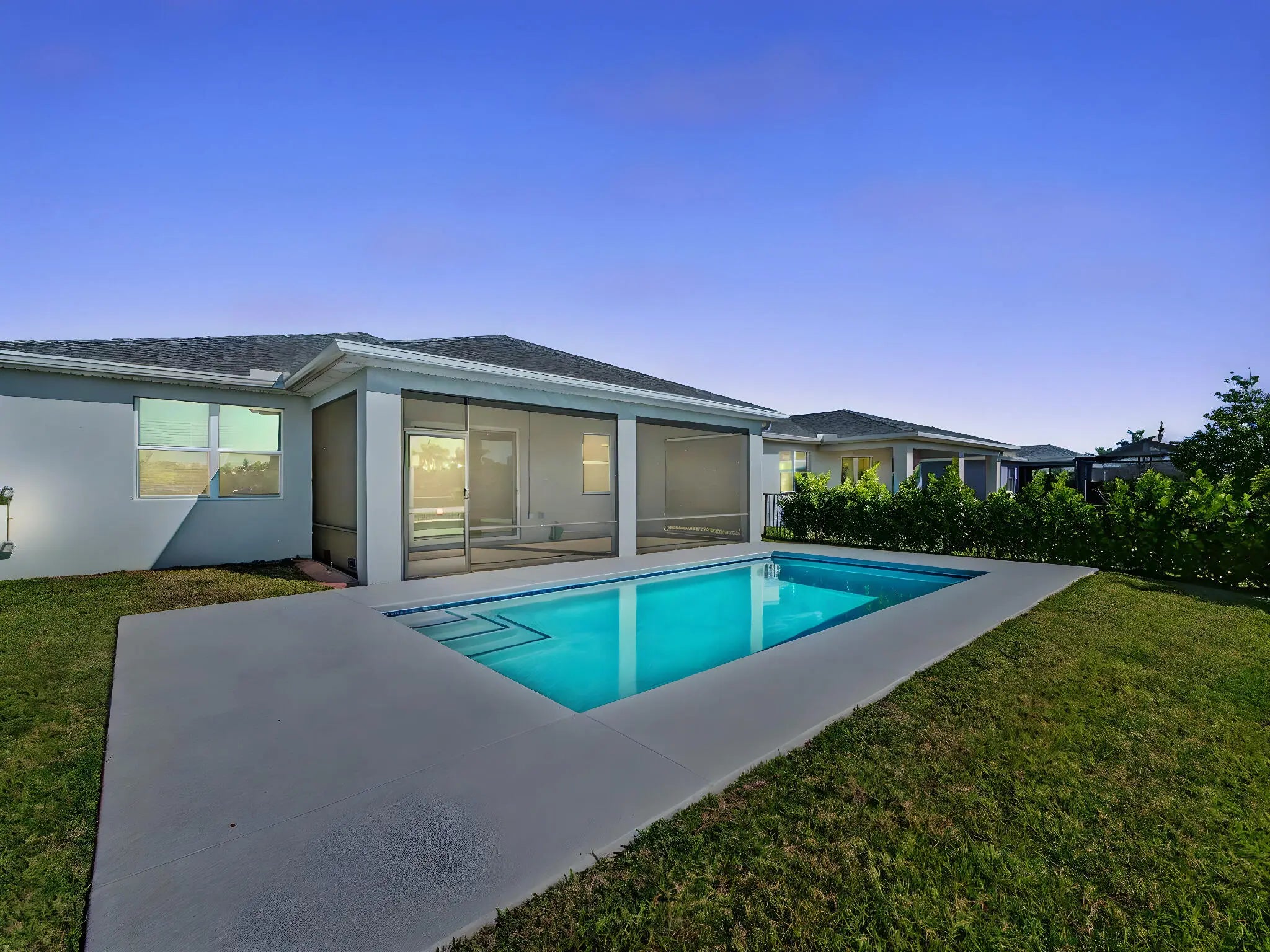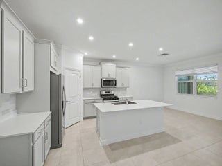 Welcome to this beautifully upgraded 4-bedroom, 2-bath, 2-car garage home with a private pool, located in the highly sought-after Cadence at Tradition. This move-in-ready residence features impact glass throughout, tinted windows and doors, LED lighting, crown molding in living areas, and tile flooring throughout the entire home for a clean, modern feel. The gourmet kitchen is a standout with quartz countertops, a farmhouse sink, gas stove, soft-close drawers and cabinets, pull-out garbage, a walk-in pantry, and a new garbage disposal--perfect for both everyday living and entertaining. The home also includes gas dryer and water heater for added efficiency. Retreat outdoors to your oversized screened patio complete with a privacy sun shade, outdoor kitchen, and a 12x24 chlorine pool. The fenced yard is enhanced with privacy clusias, gutters all around, and added peace of mind with security cameras in the front and back. Inside, enjoy spa-like bathrooms with frameless glass showers, and a thoughtfully designed primary suite featuring custom closet organizers with soft-close drawers. Additional upgrades include an Ecobee smart thermostat, epoxy-finished garage floor, garage storage cabinets, and TV included.