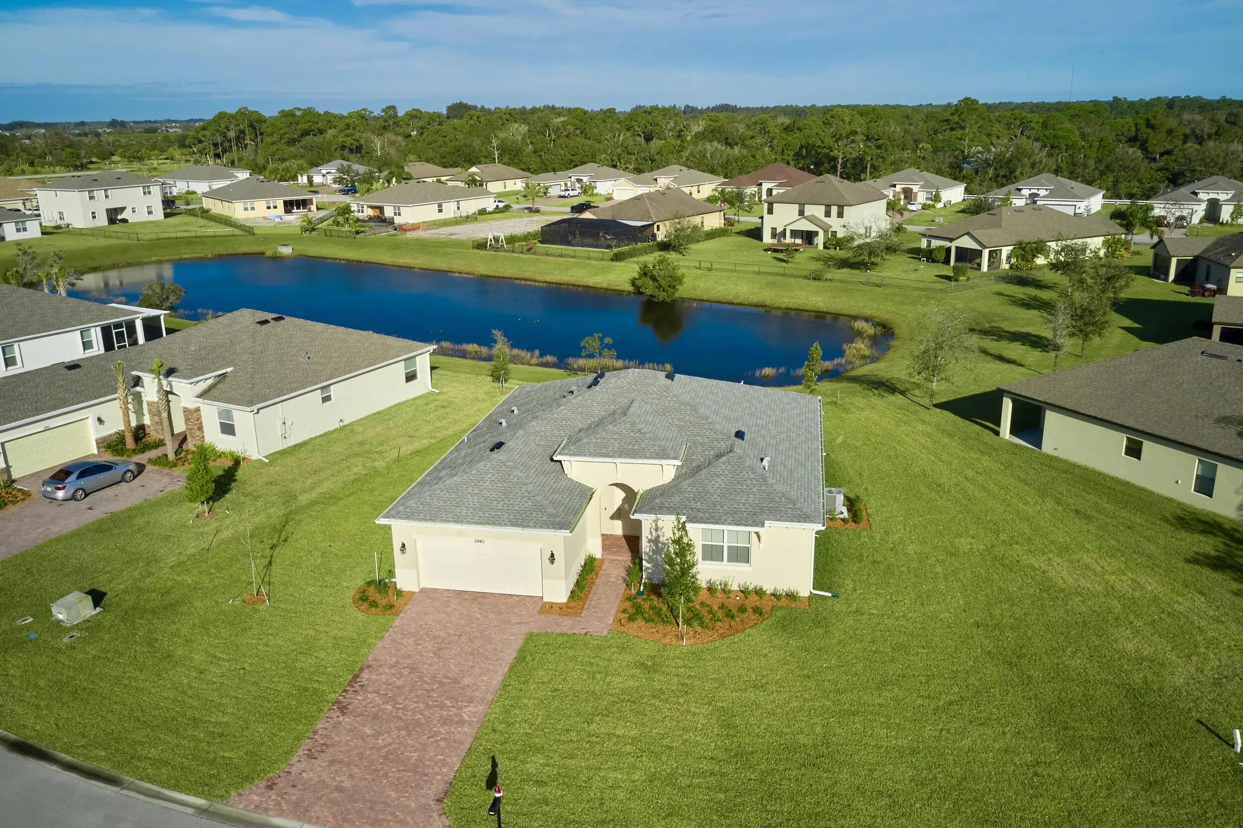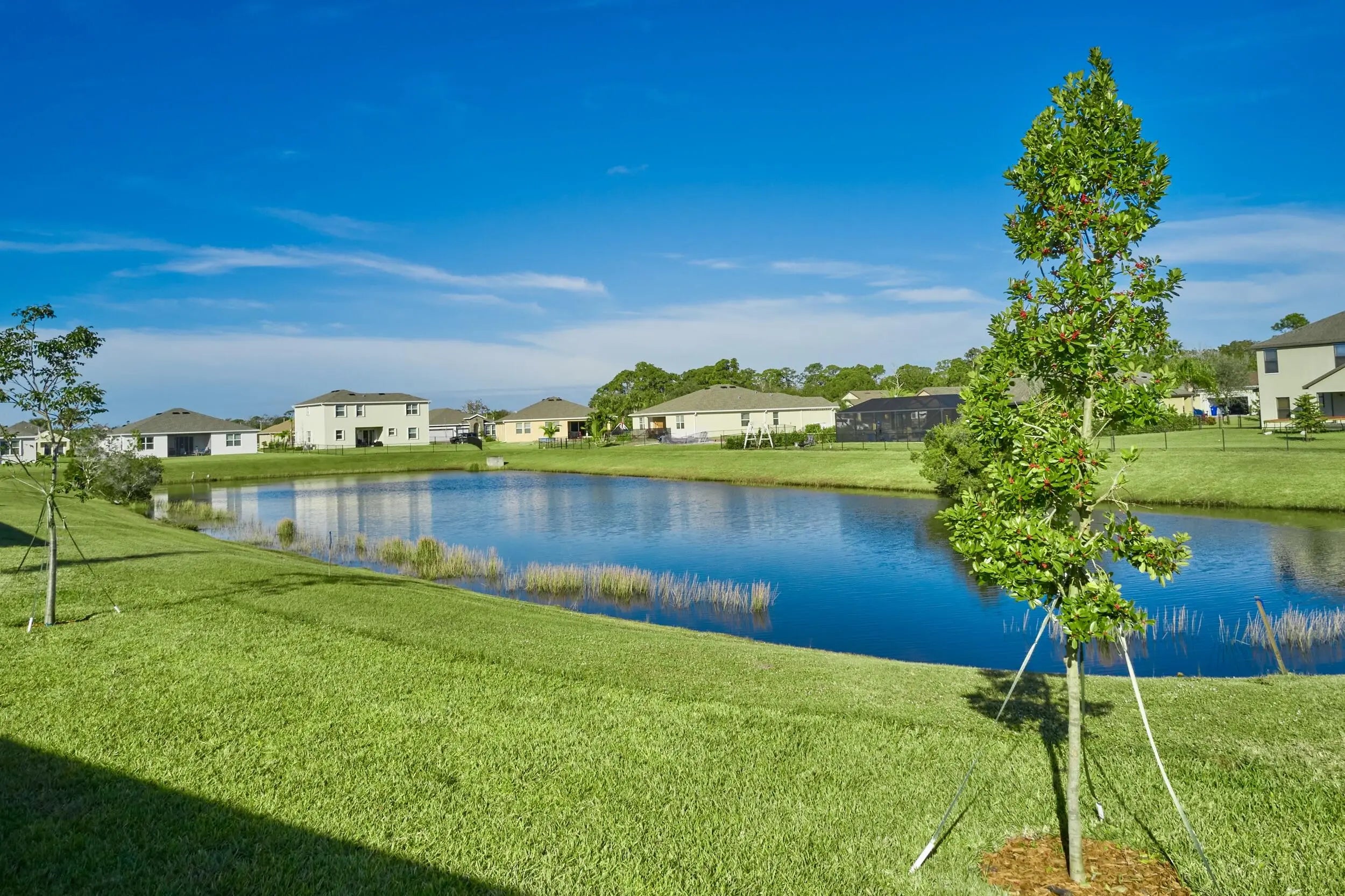 APPLICATION IN PROCESS. BEAUTIFUL UNFURN'D ANNUAL WATERFRONT HOME RENTAL located in HUNTINGTON PLACE, a lovely Vero Beach gated community of newer CBS residences. 2020 3BR/2BA/2CG HOME on spacious pie-shaped lot. OPEN CONCEPT living & Split floorplan! KITCHEN: Espresso cabs, granite CTs, island seats 4, SS appliances, pantry. Dining area framed by large windows overlooking tranquil WATER VIEWS. Sliders open to covered pavered lanai & spacious backyard. BEDROOM-SUITE with/Large ensuite bathroom & 2 walk-in closets. Split: Two guest bedrooms and second bathroom on other side of house. AMENITIES: Pool, FitnessRm & Cabana Bathrooms. RENT INCLUDES: Lawn & Landscaping. Mins to shops, dining, golf, medical, island & BEACHES! EAT, PLAY, LIVE VERO BEACH! This residence is CALLING YOU HOM