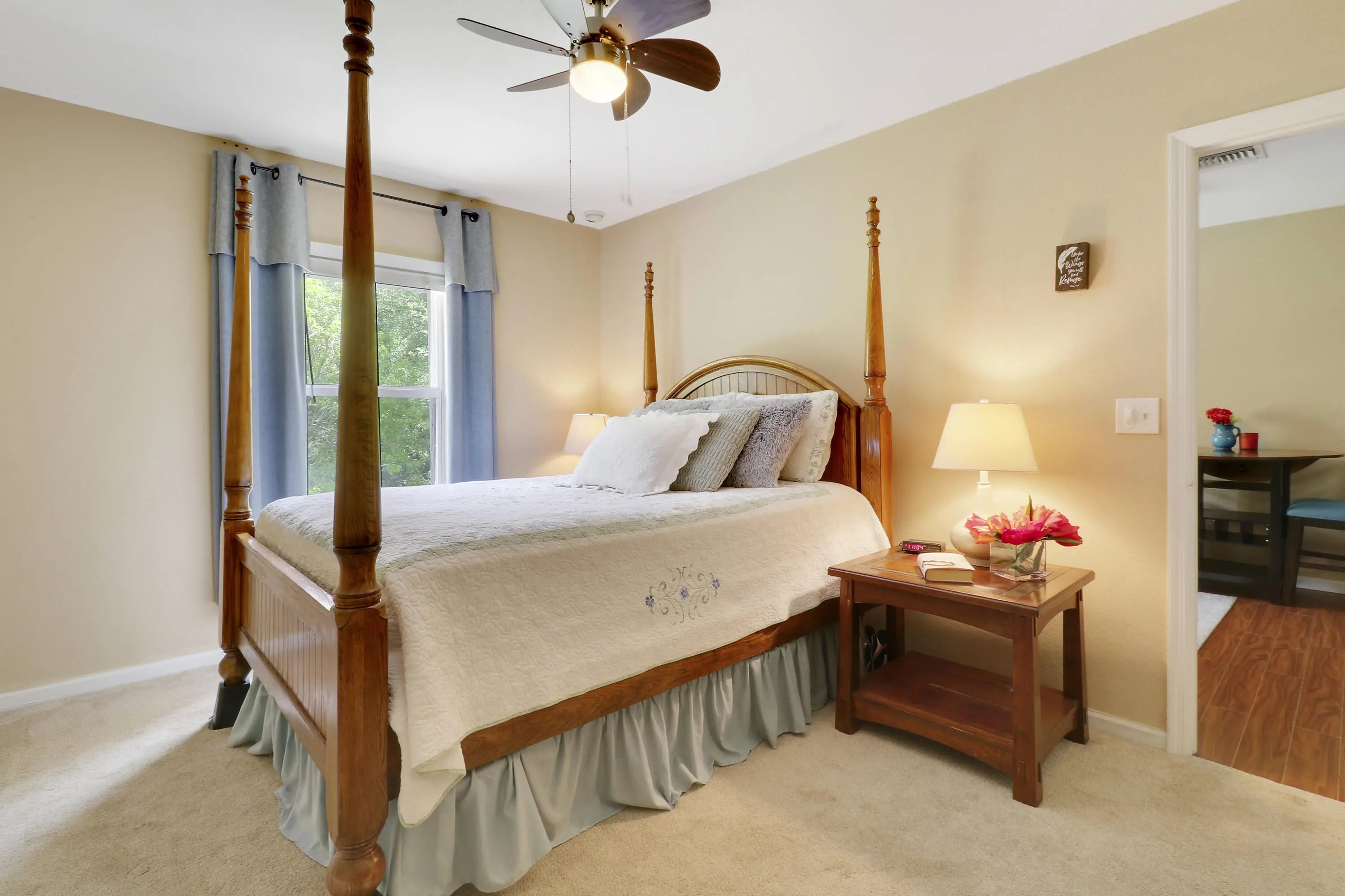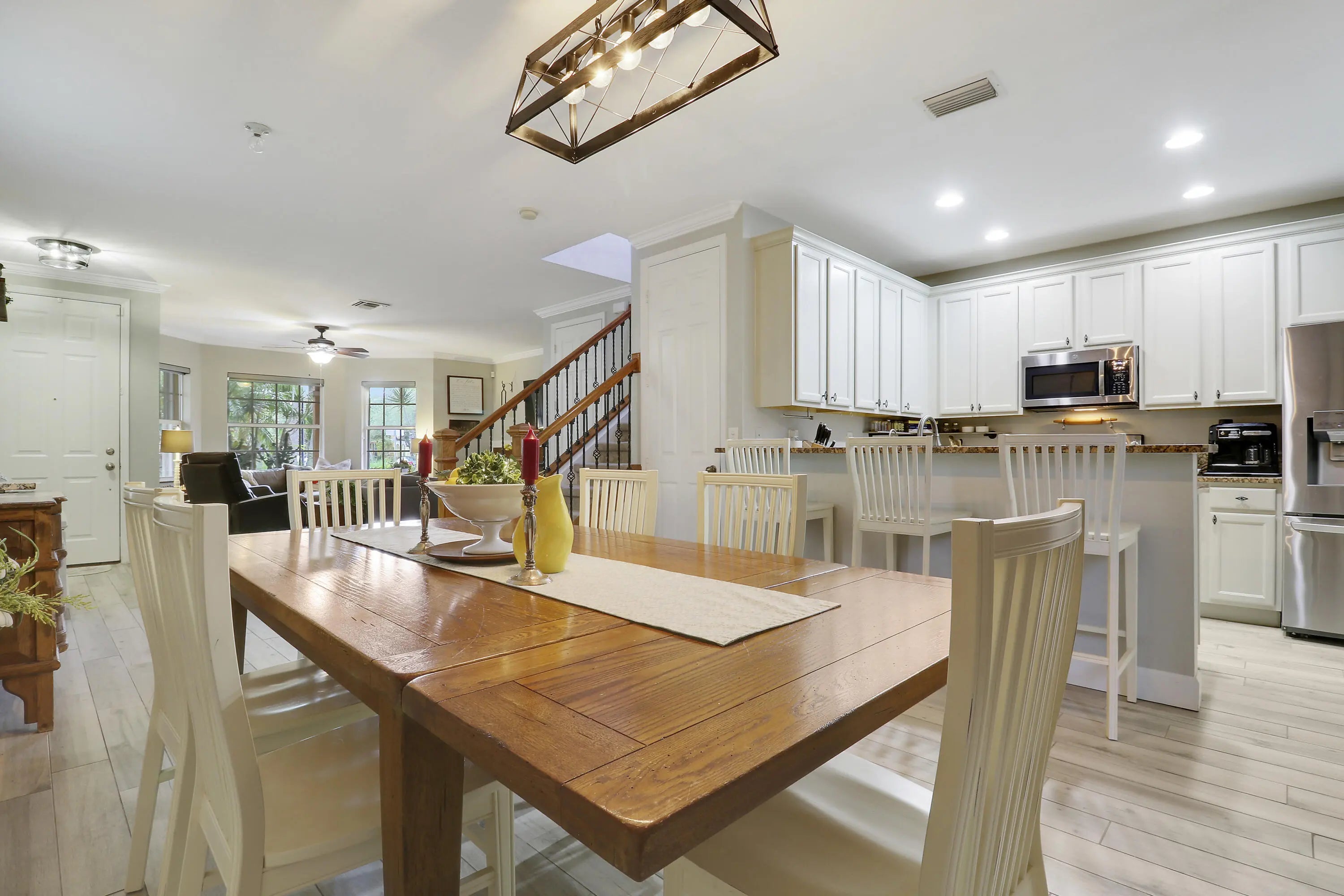 Move in ready home featuring a 2024 metal roof, updated flooring, fixtures, and bathrooms, private in-law suite with separate entrance, and accordion shutters for peace of mind. This property is thoughtfully designed for comfort and functionality. The in-law suite features a private entrance, living room, separate bedroom with full bath and a kitchenette. Steps outside of your front door you'll find a 1.7-mile nature trail and a tranquil lake view immediately in front. The private green space behind the home provides a serene setting. A truly special opportunity for those seeking space, privacy, and convenience in one of the area's most scenic settings.
