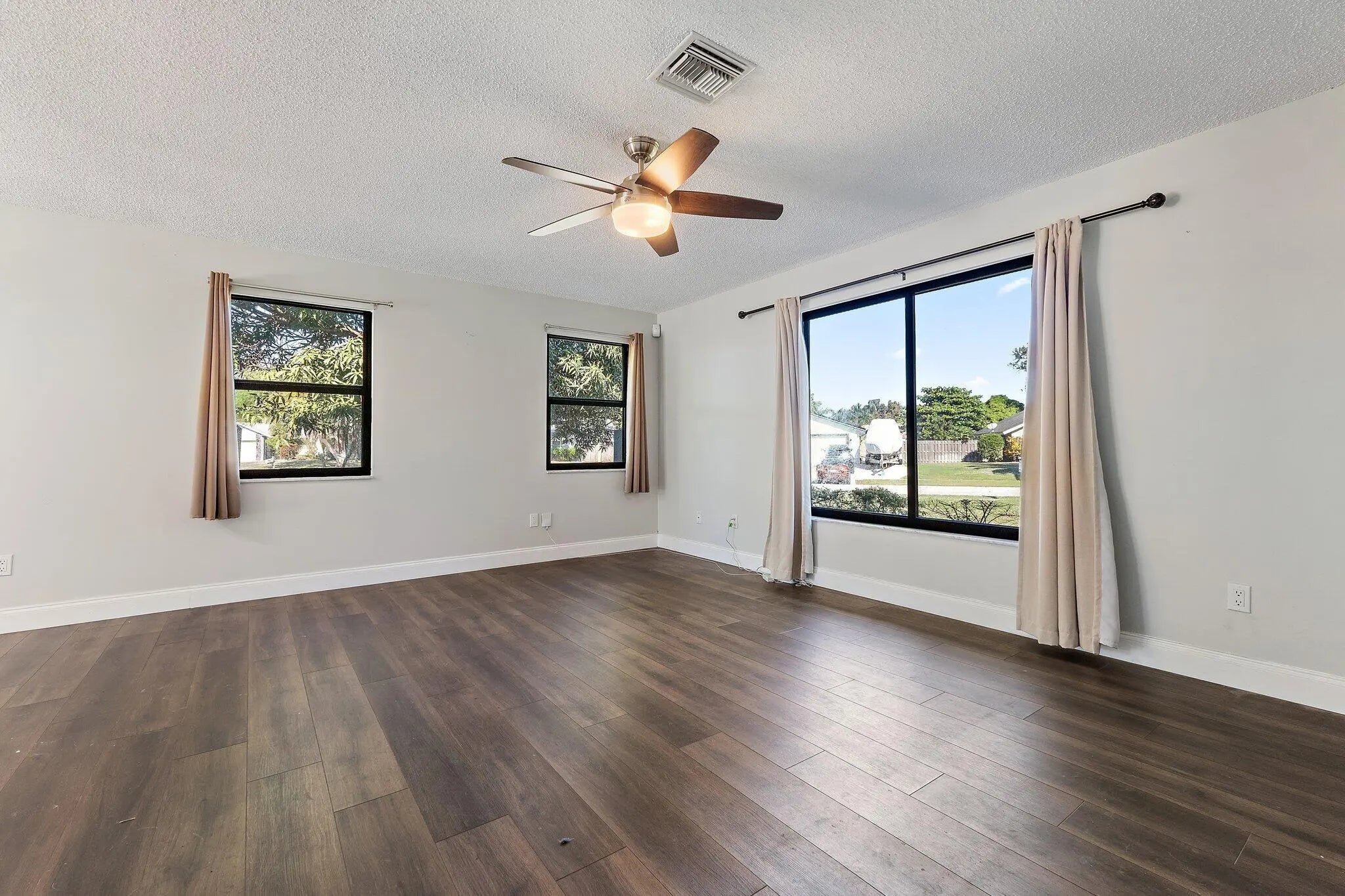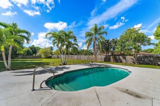 RARE OPPORTUNITY! This stunning 4-bedroom, 2.5-bathroom pool home in La Mancha sits on an oversized, fully fenced corner lot of over half an acre with panoramic views. This property offers ultimate peace of mind with brand-new, premium impact-rated windows and doors throughout. Step inside to discover a bright, open floor plan with French doors, high volume ceilings, and extensive upgrades to the kitchen, bathrooms, and flooring. The massive outdoor oasis is perfect for entertaining, featuring an inground pool and spa, a large deck, and a covered patio overlooking navigable canal waters. With no HOA, a huge driveway, and mature fruit trees, there is plenty of room for all your toys.